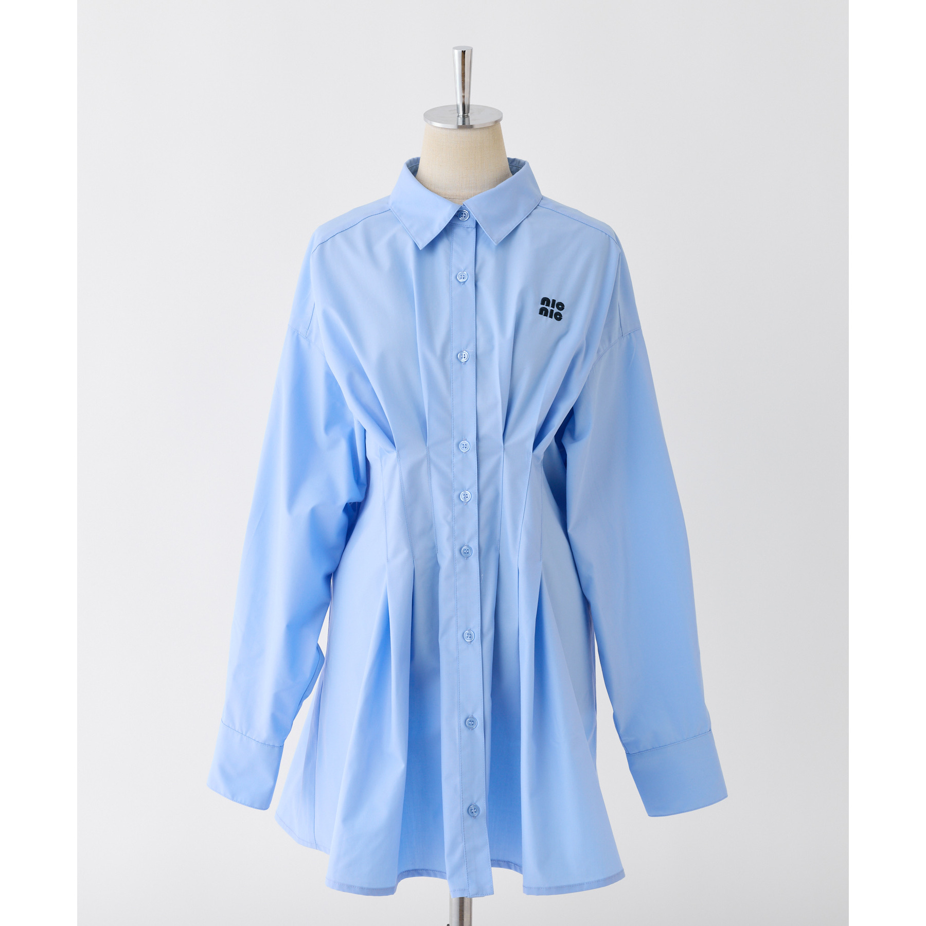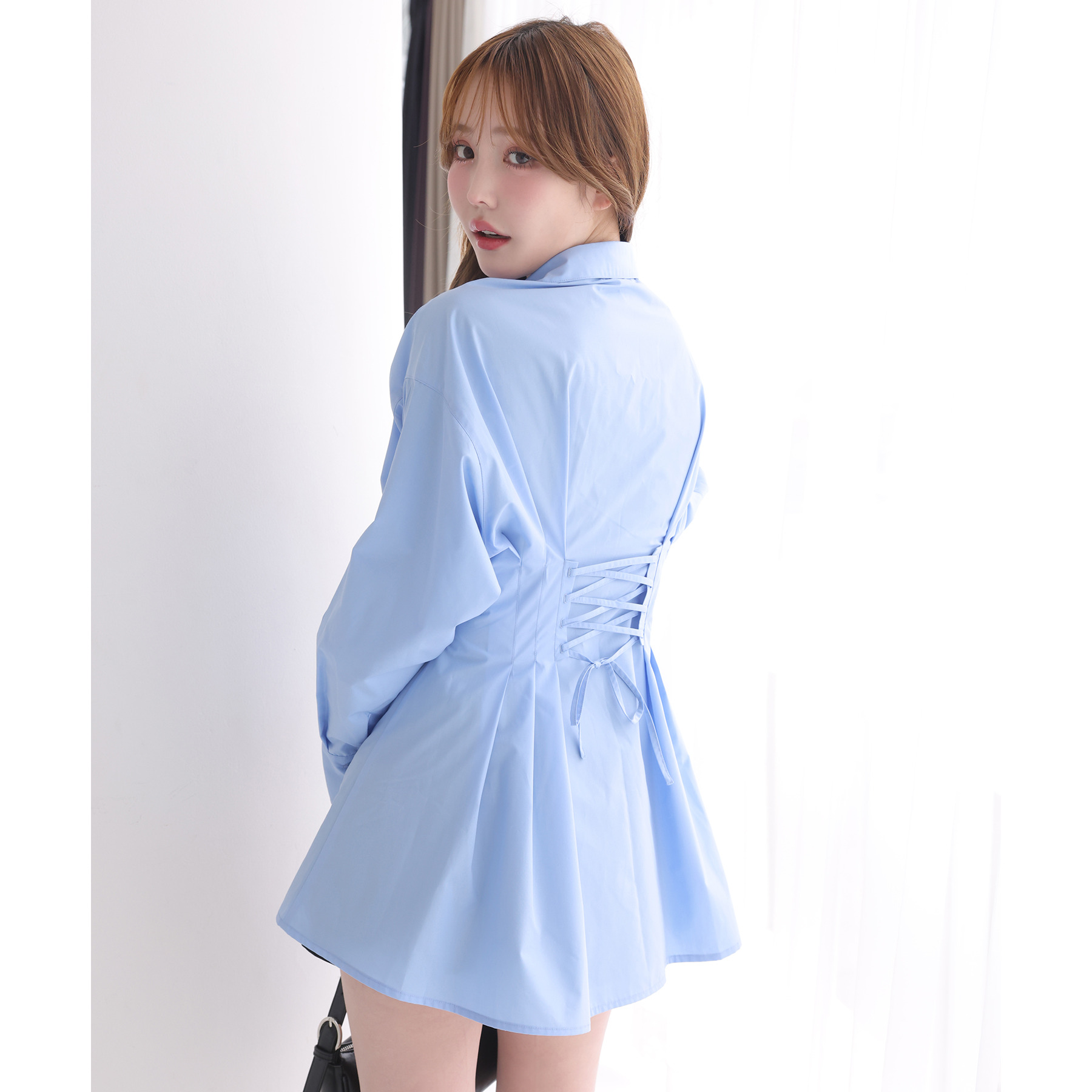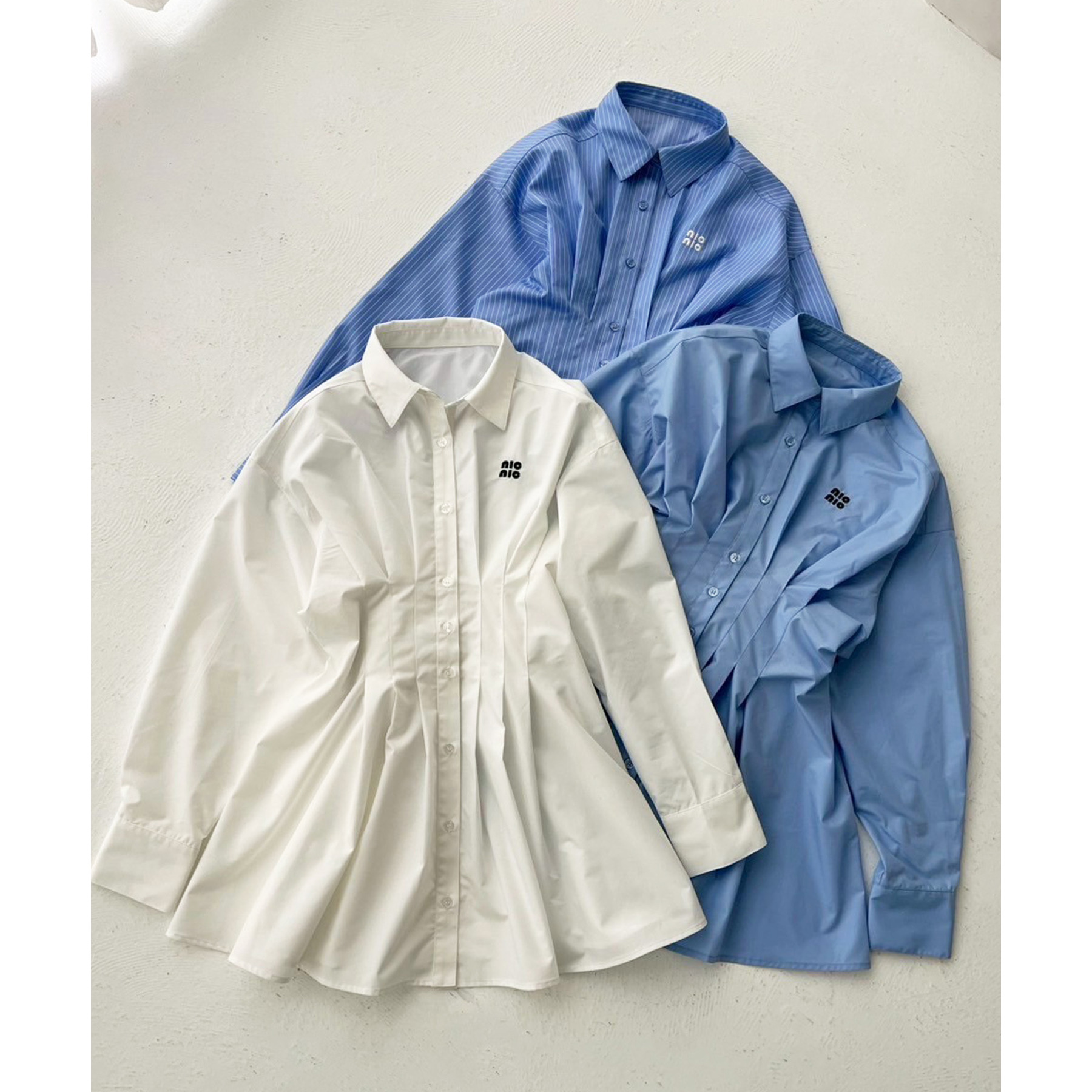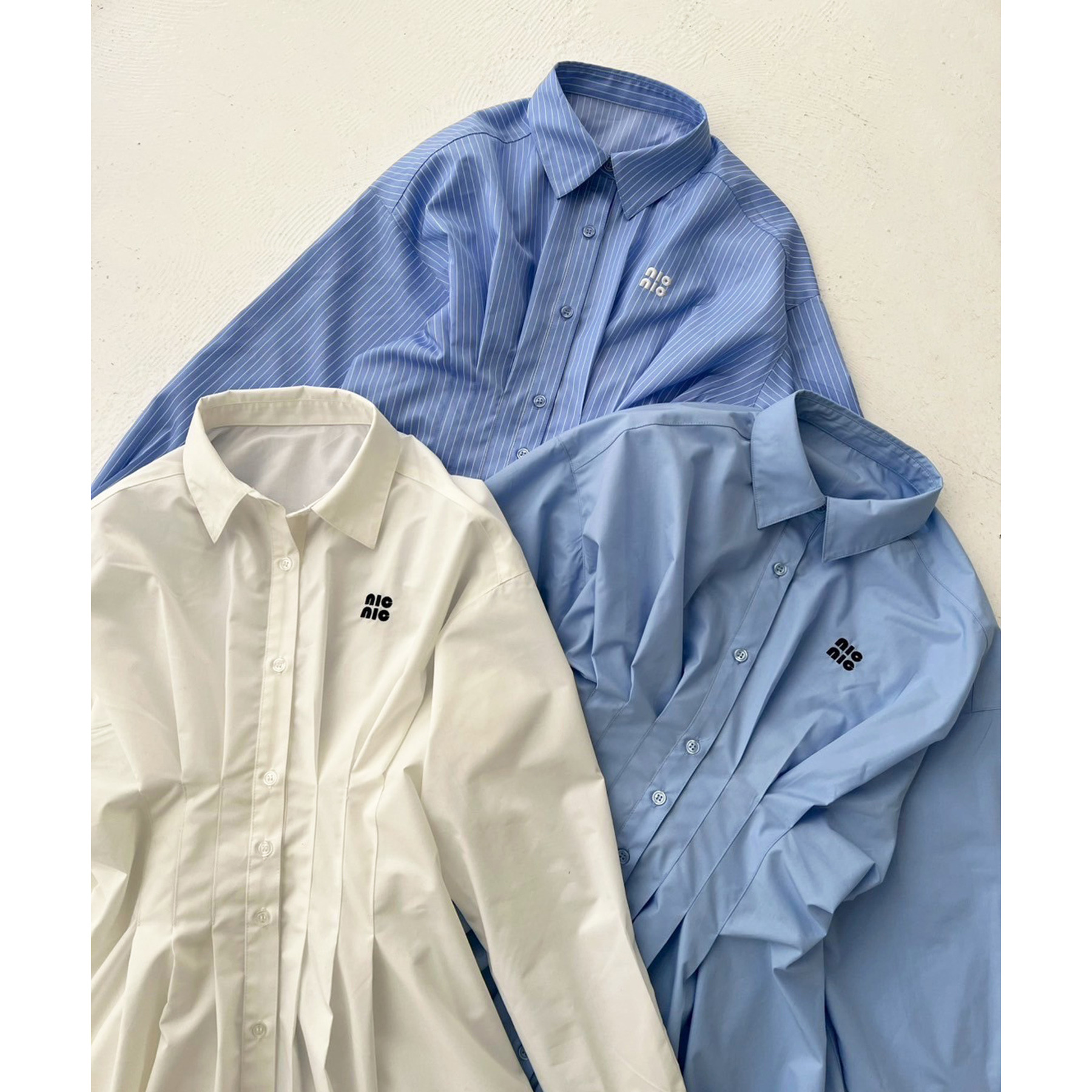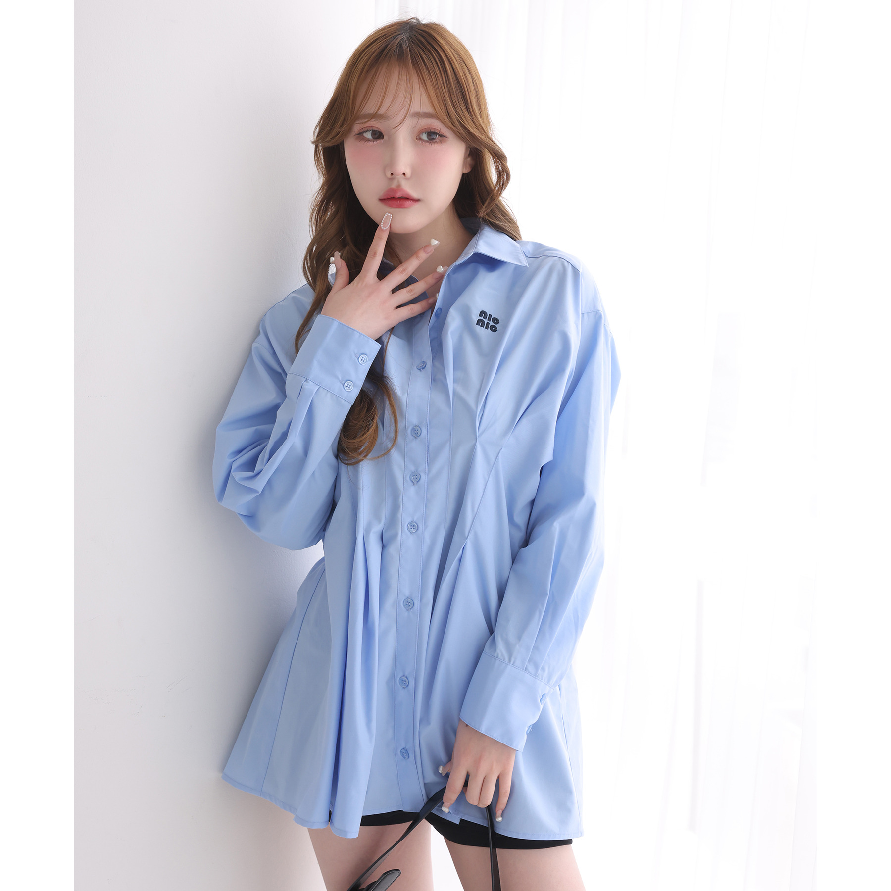 着るだけでスタイルアップができ、ウエスト細見え間違いなしのミドル丈のシャツ。