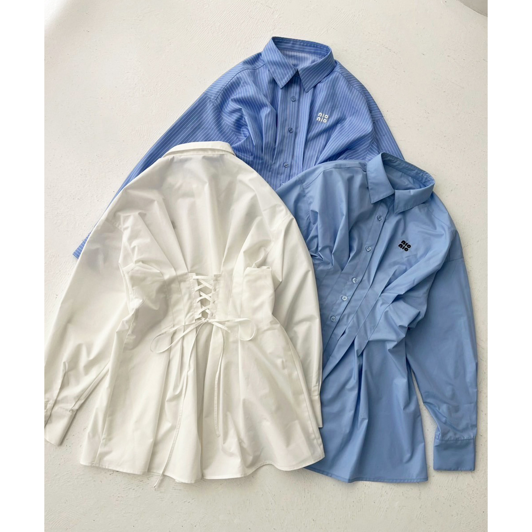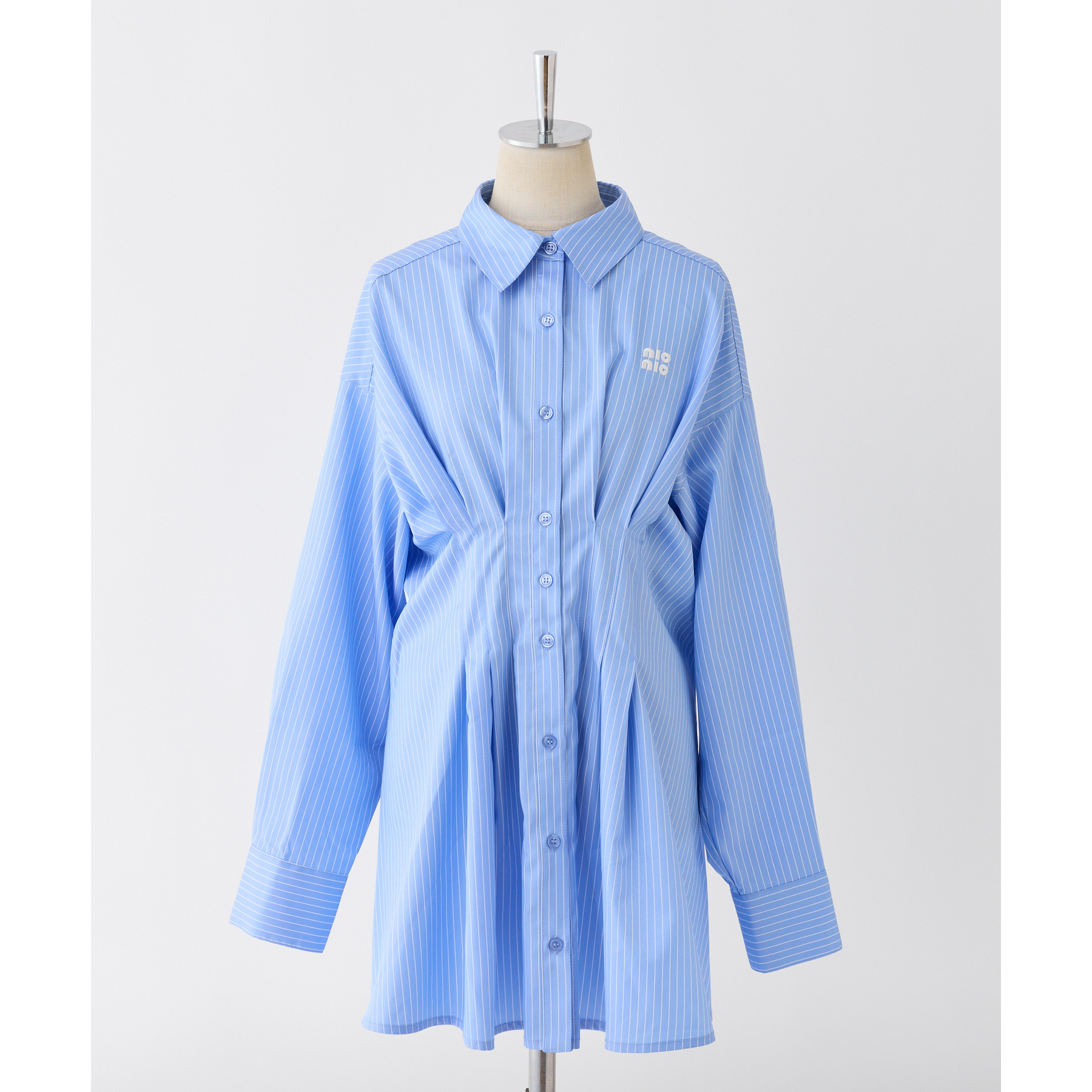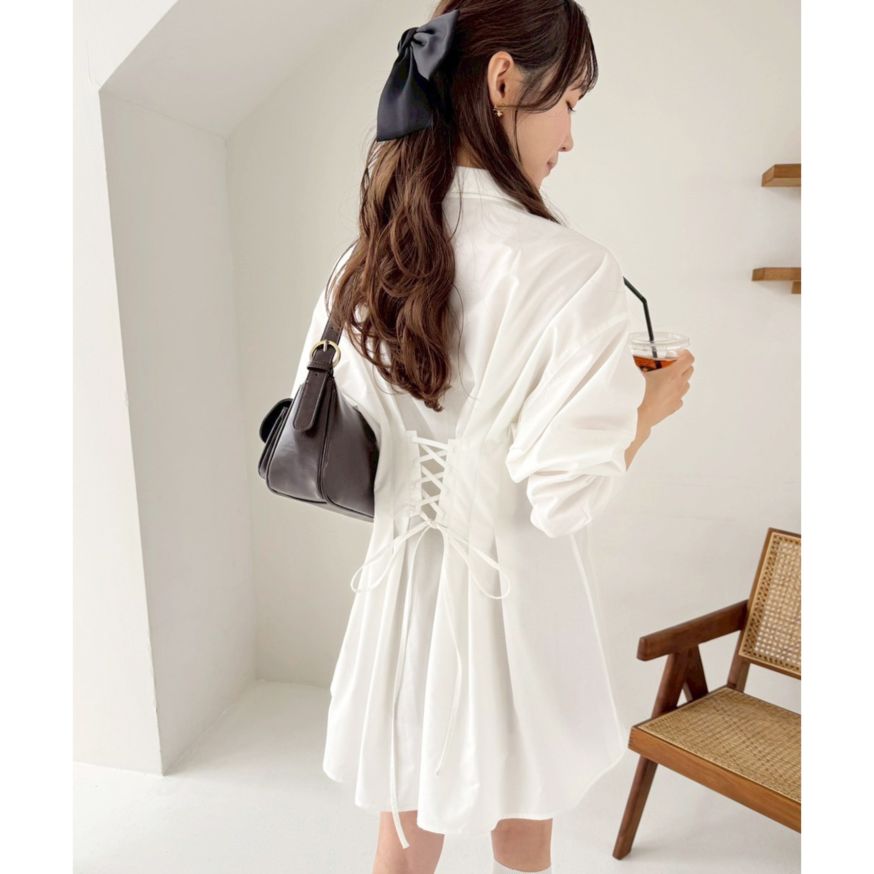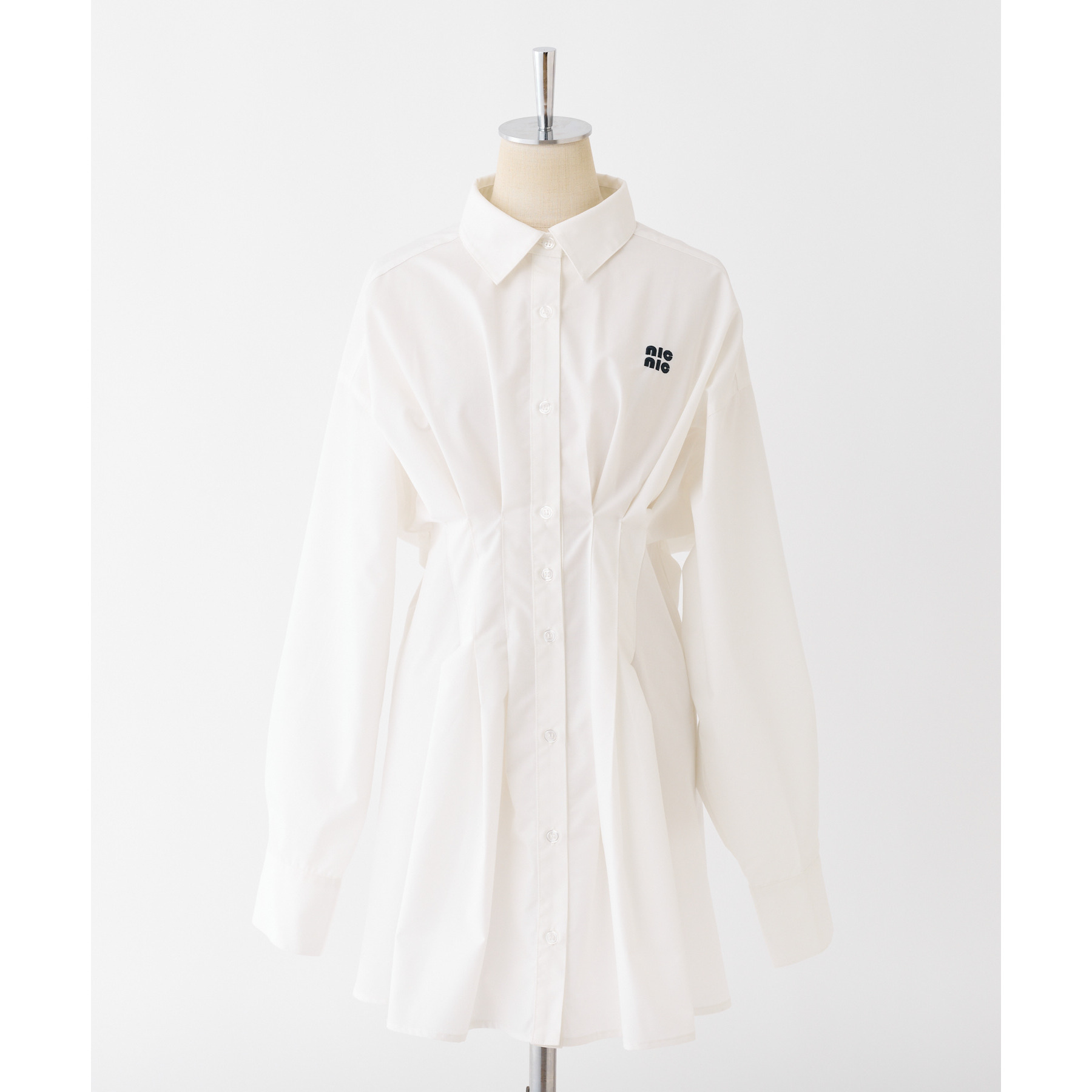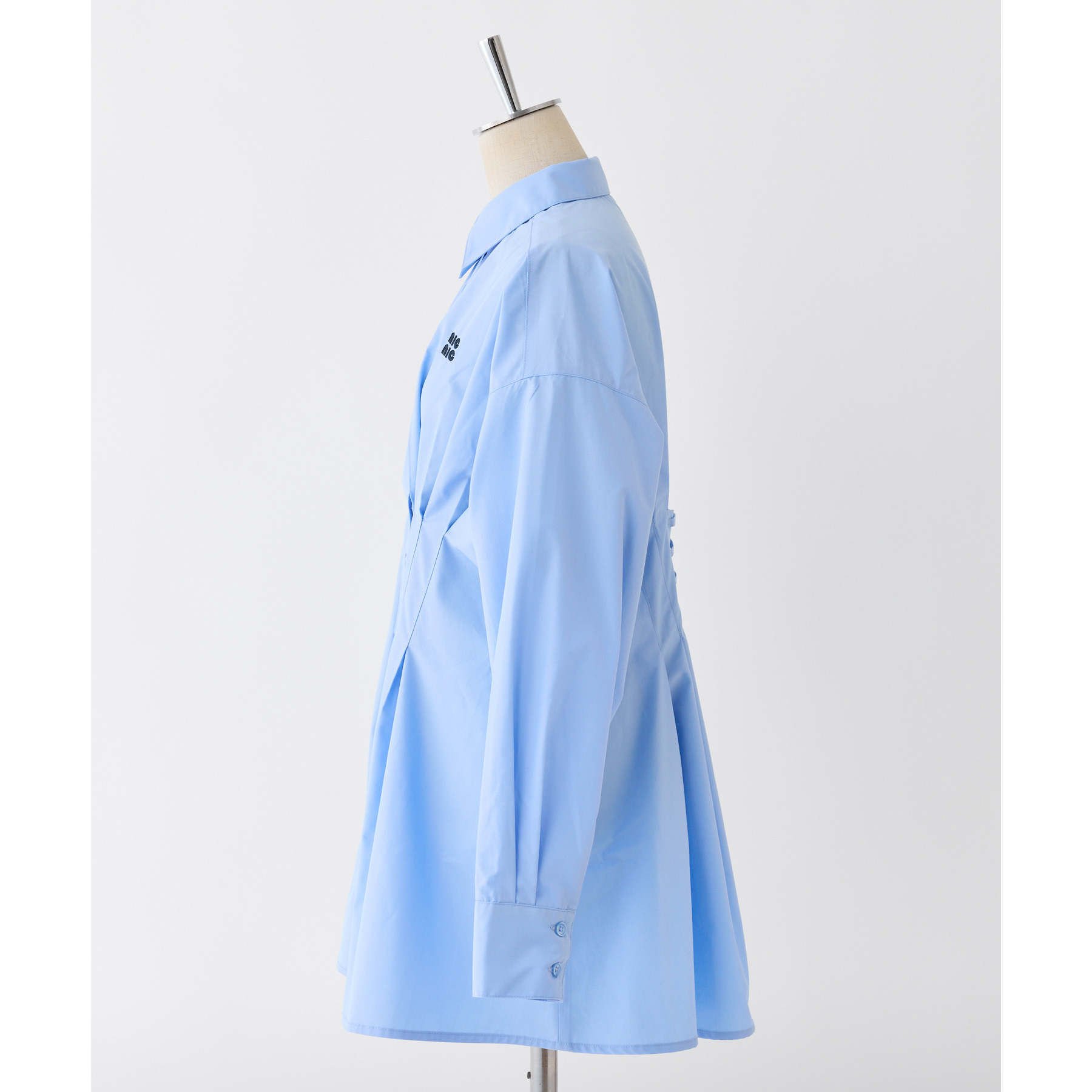 着るだけでスタイルアップができ、ウエスト細見え間違いなしのミドル丈のシャツ。