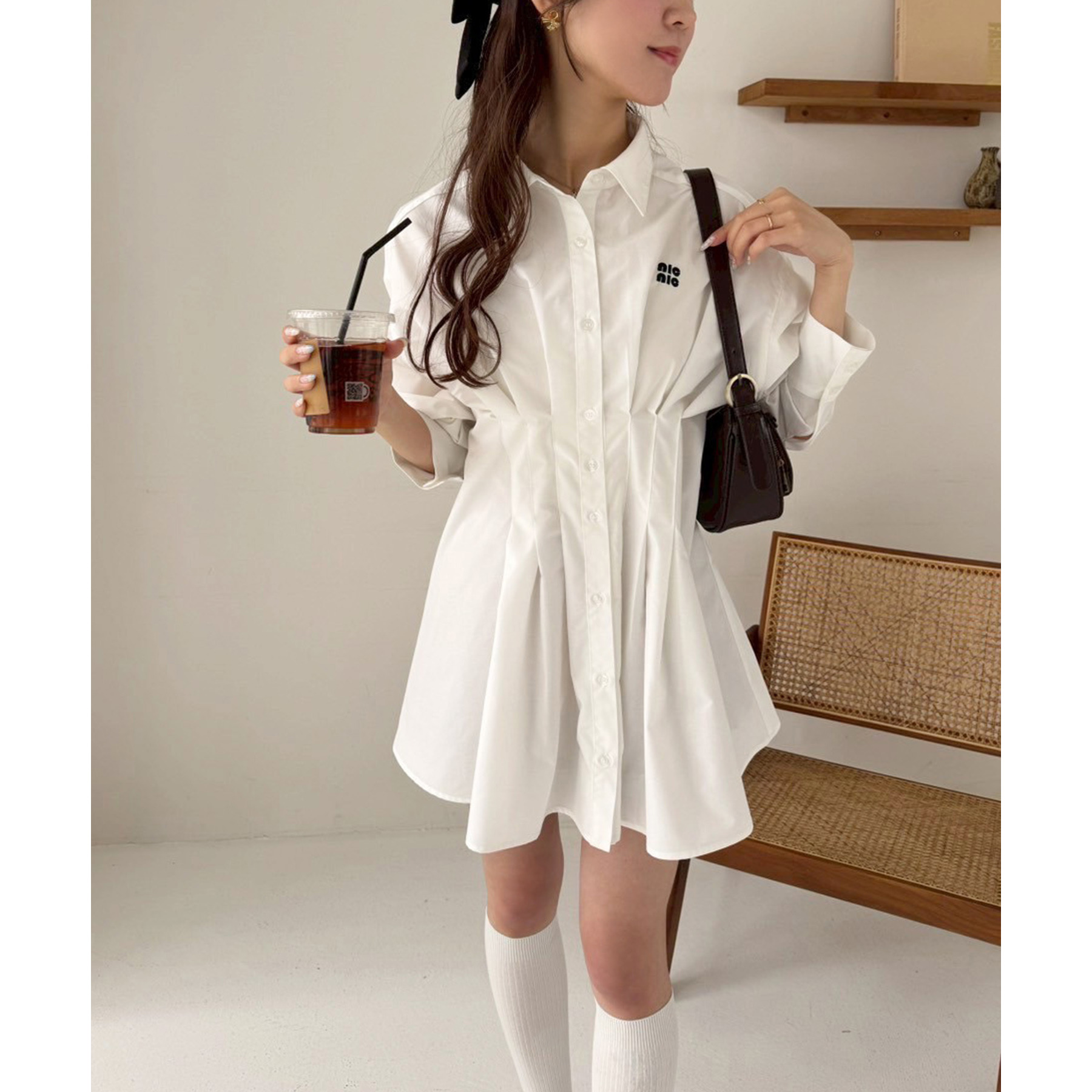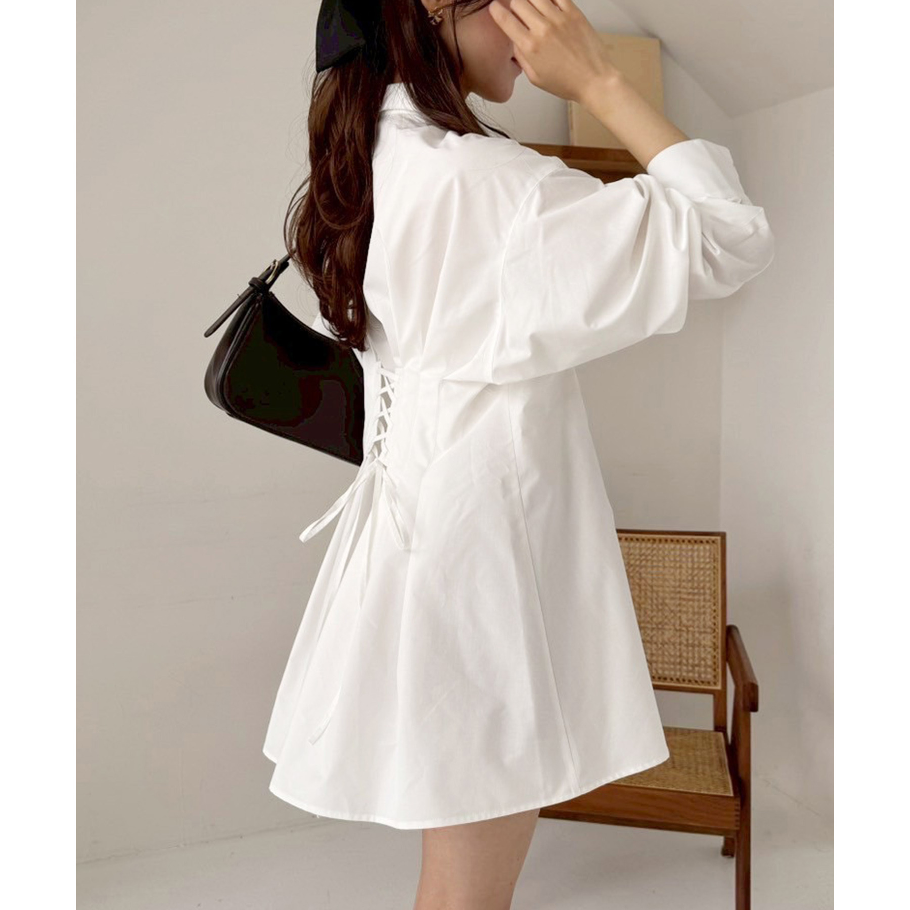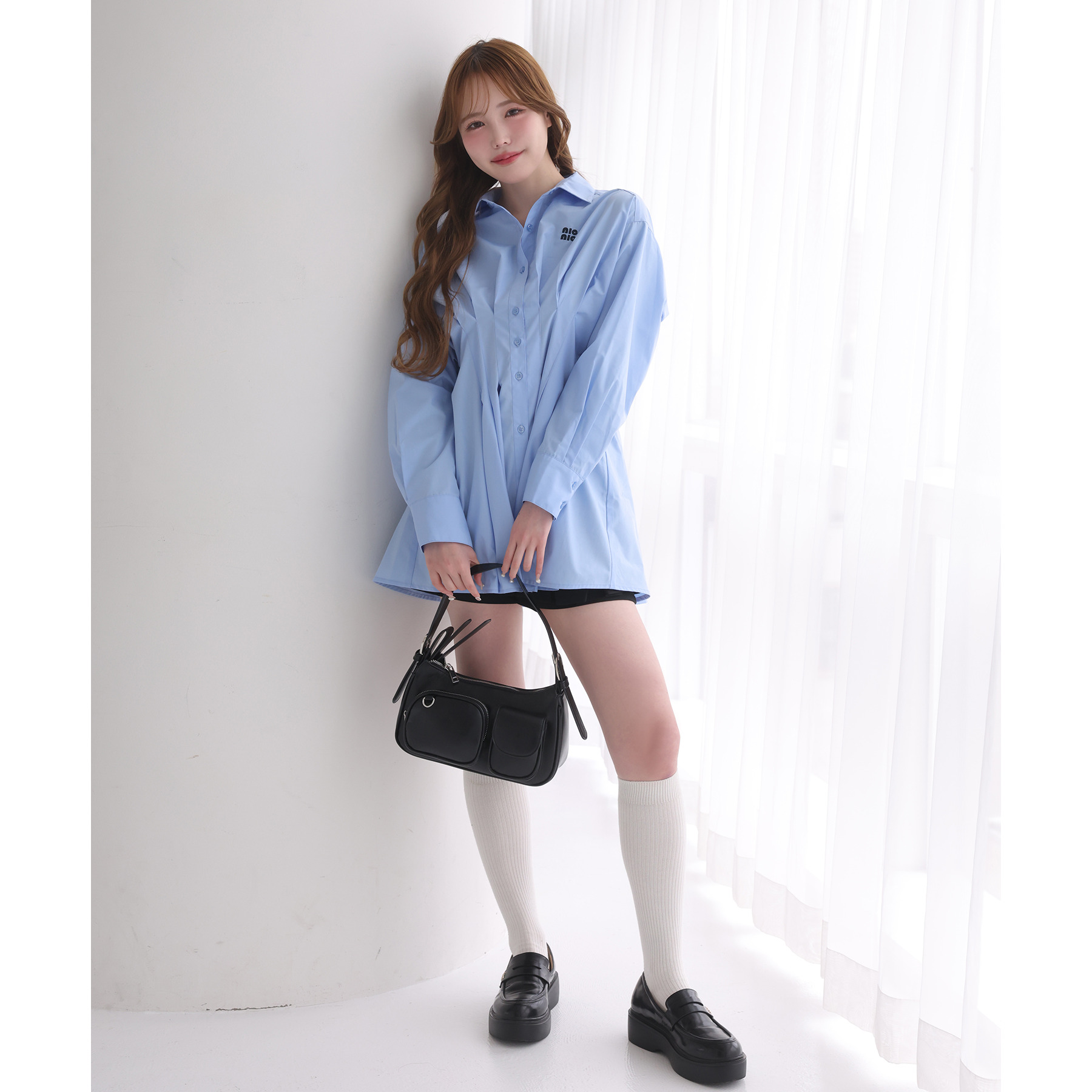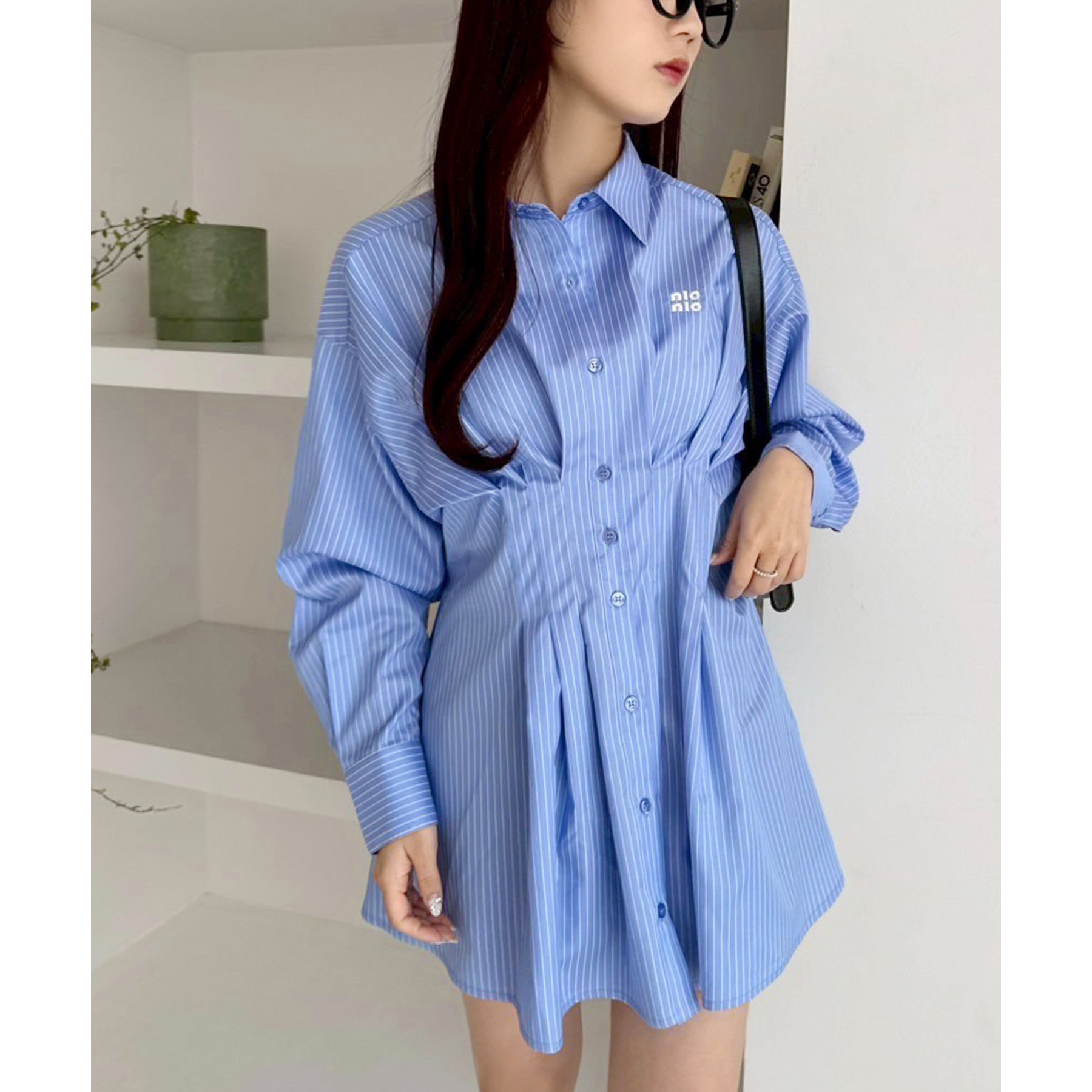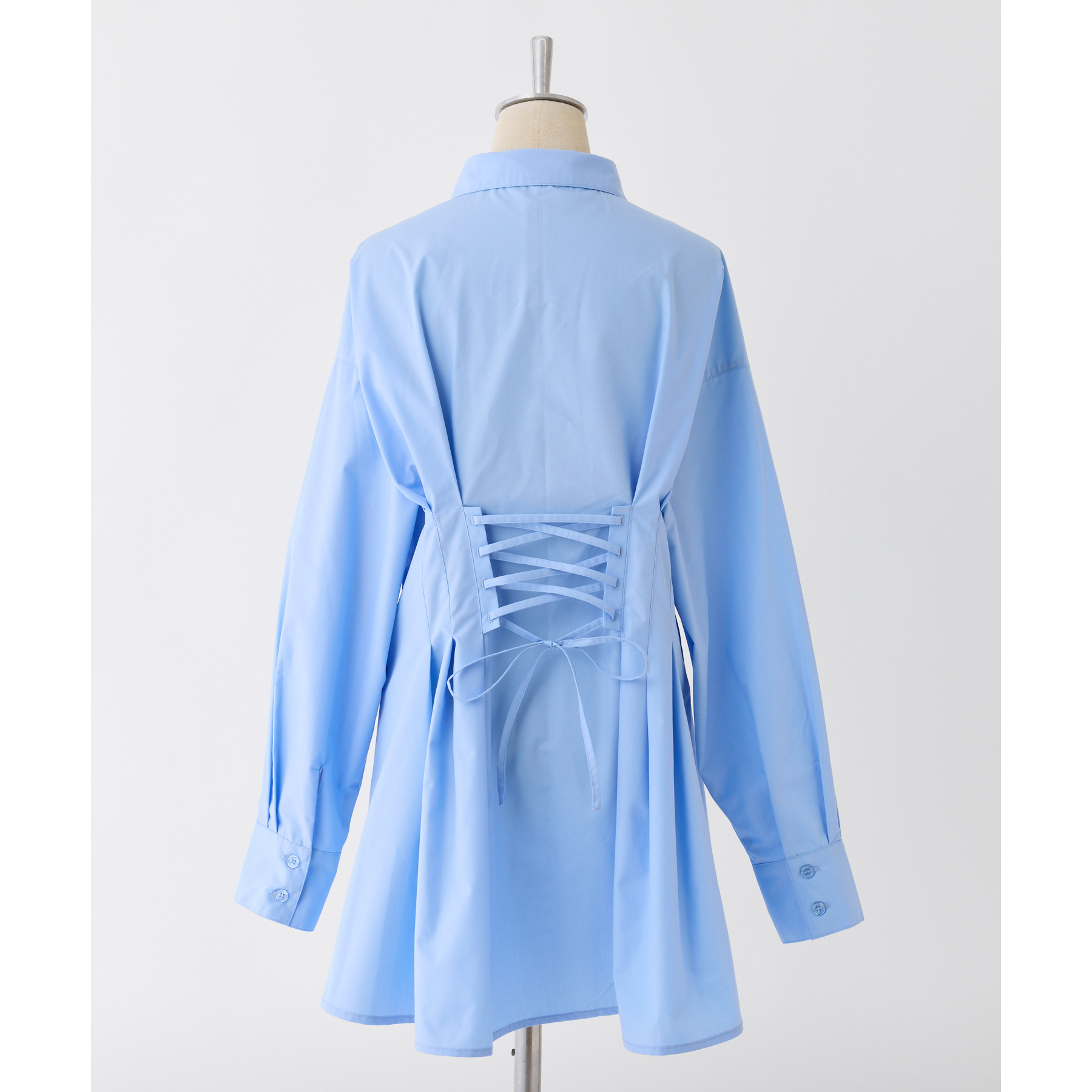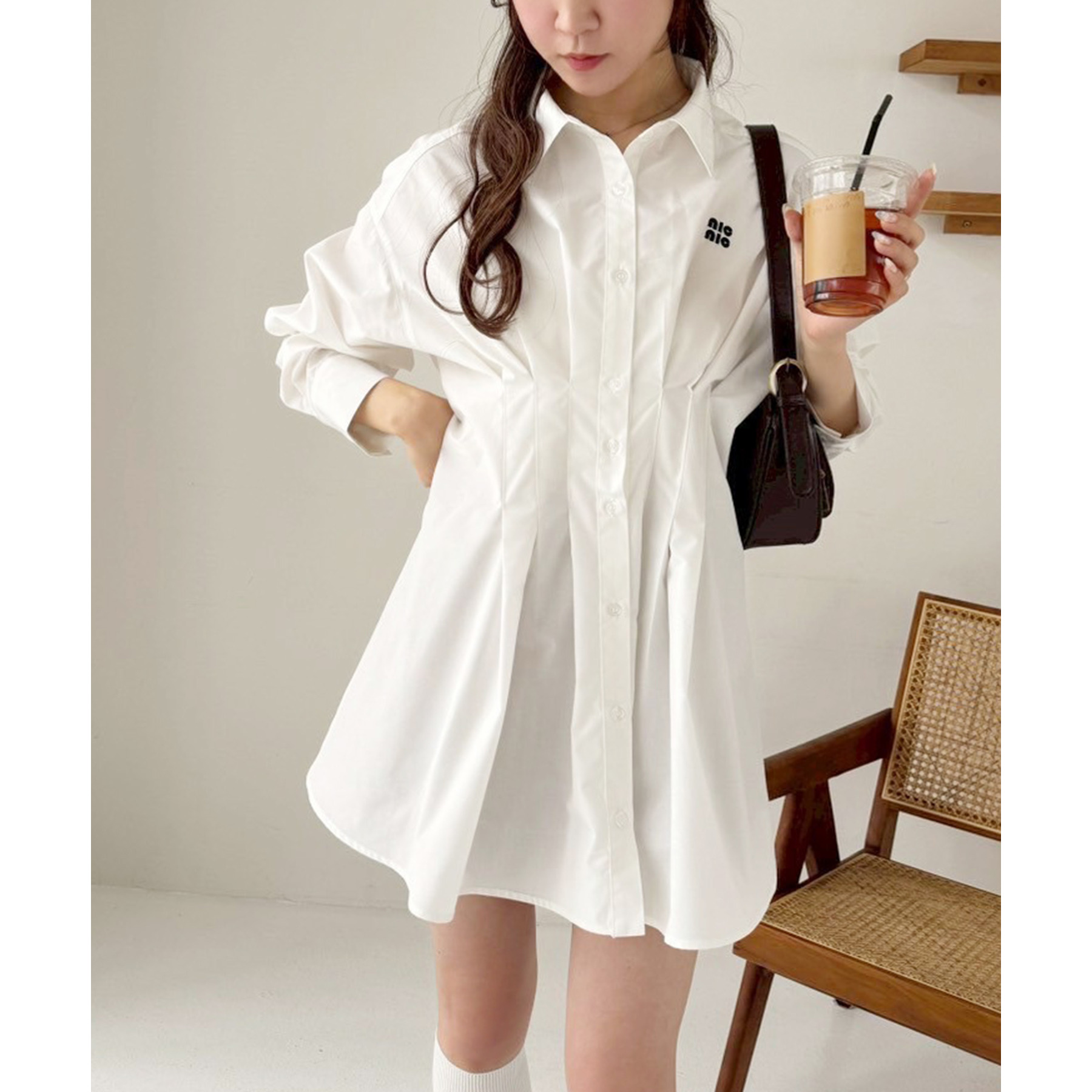 着るだけでスタイルアップができ、ウエスト細見え間違いなしのミドル丈のシャツ。