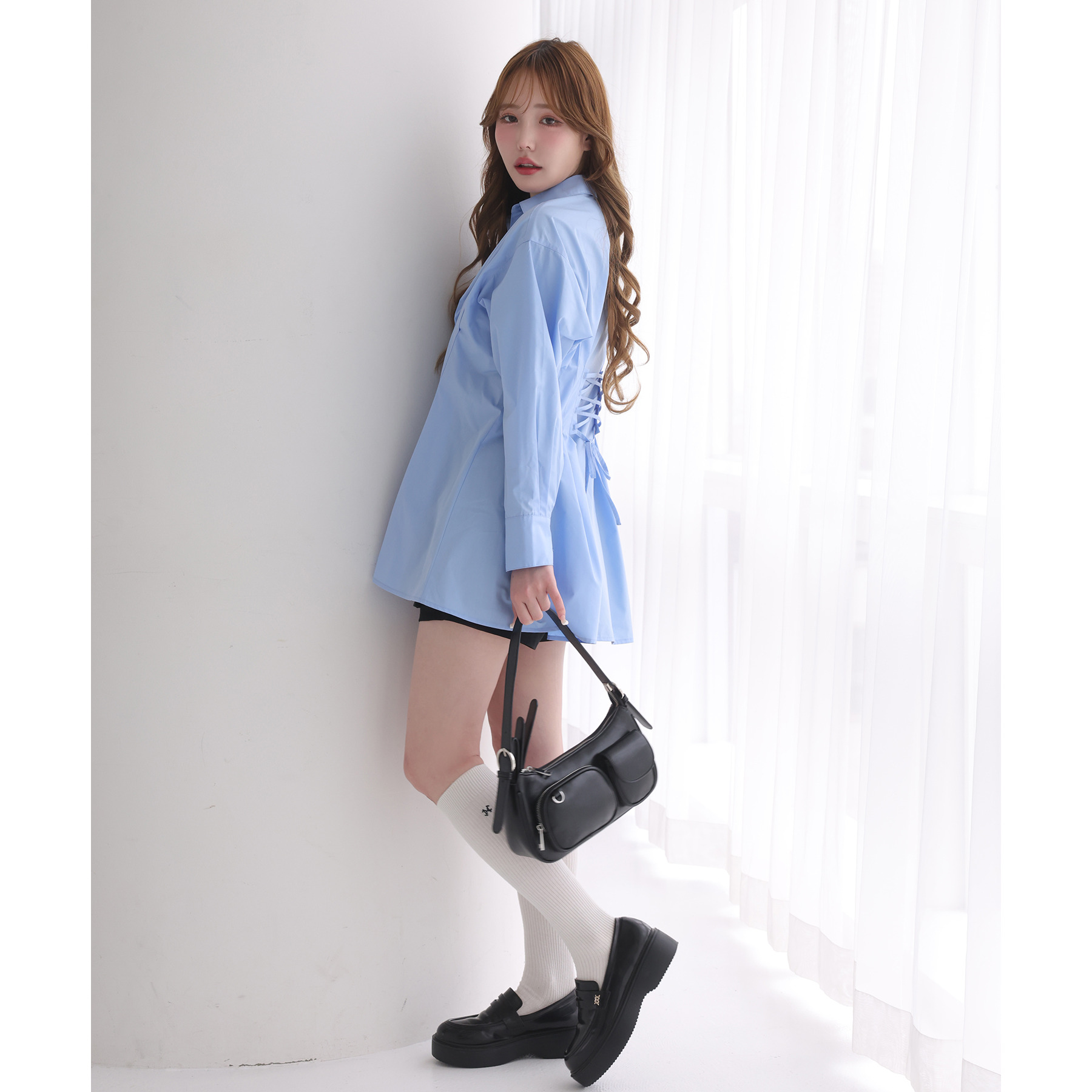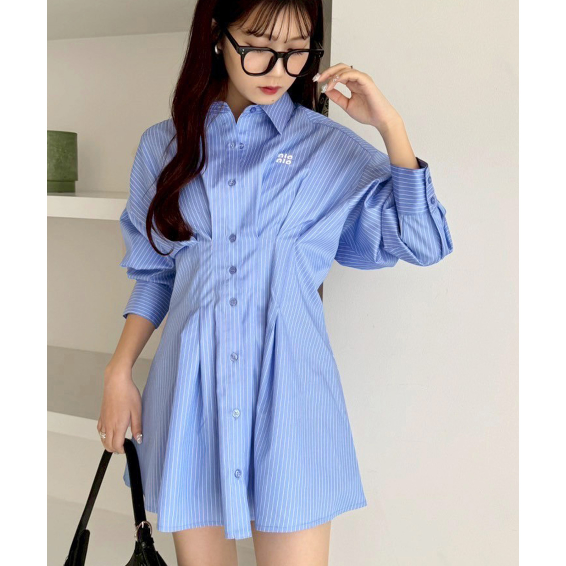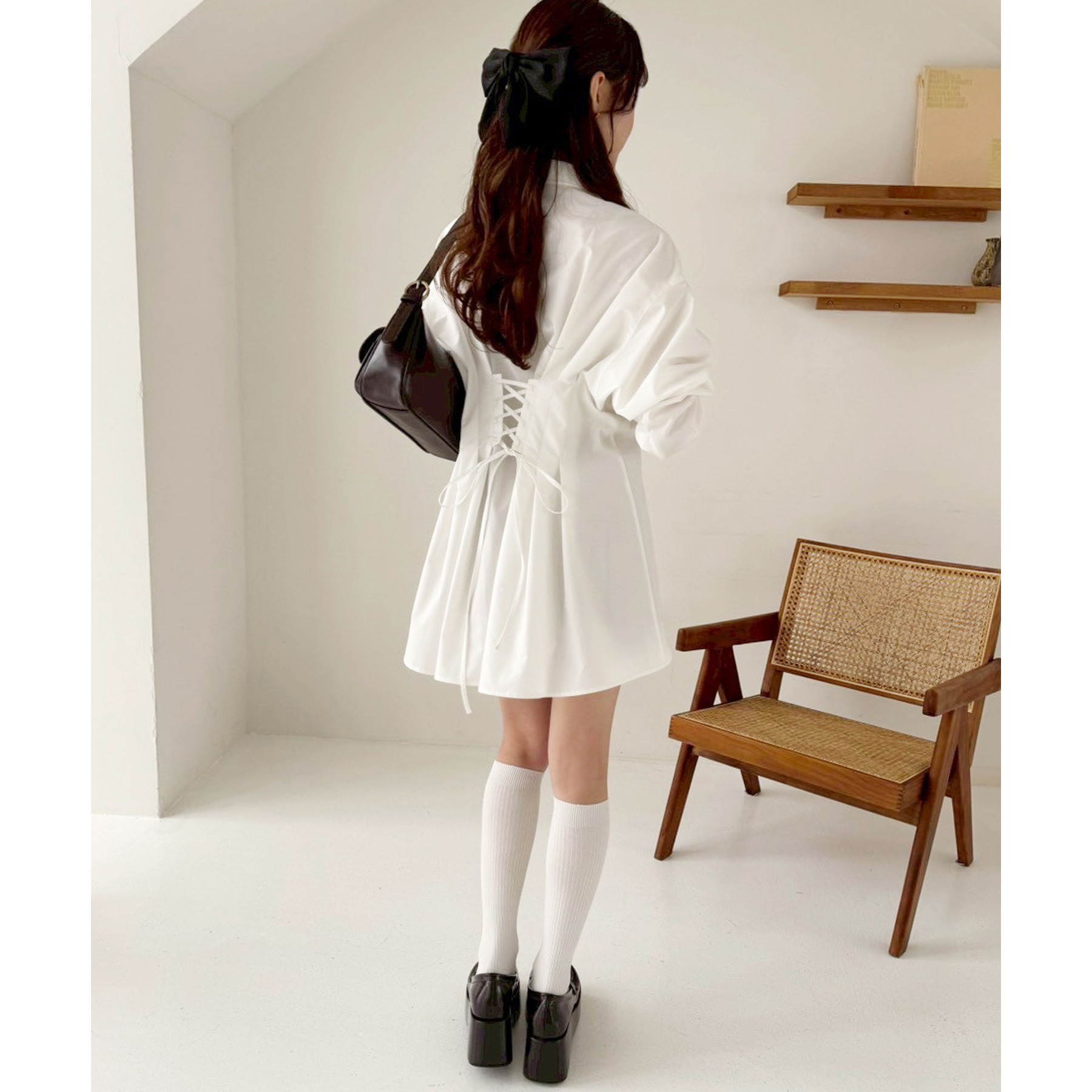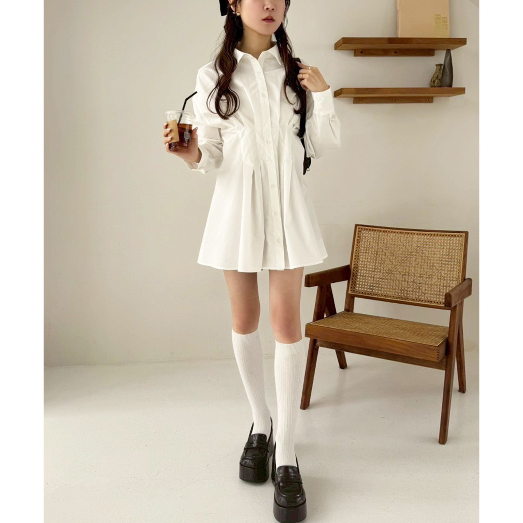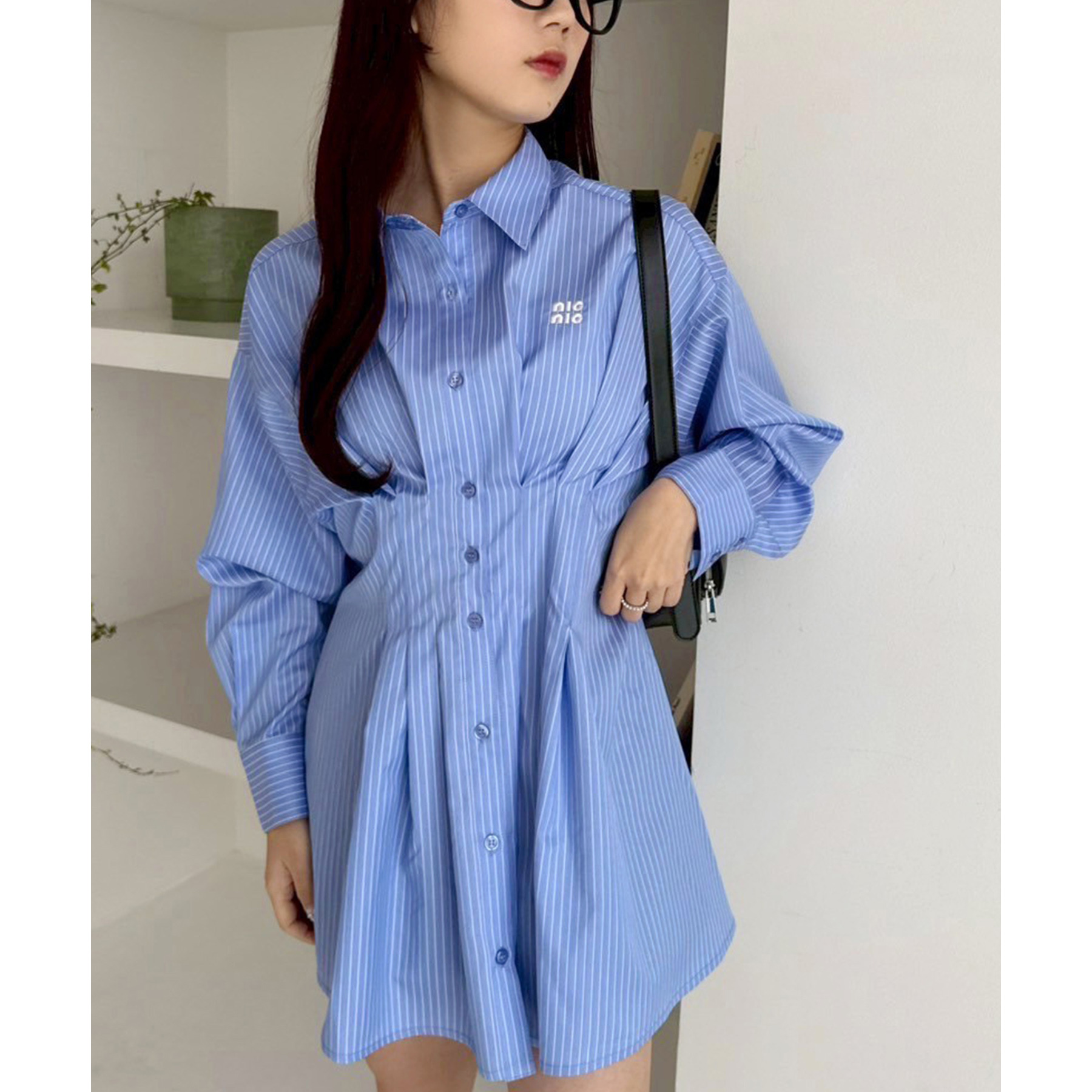 着るだけでスタイルアップができ、ウエスト細見え間違いなしのミドル丈のシャツ。