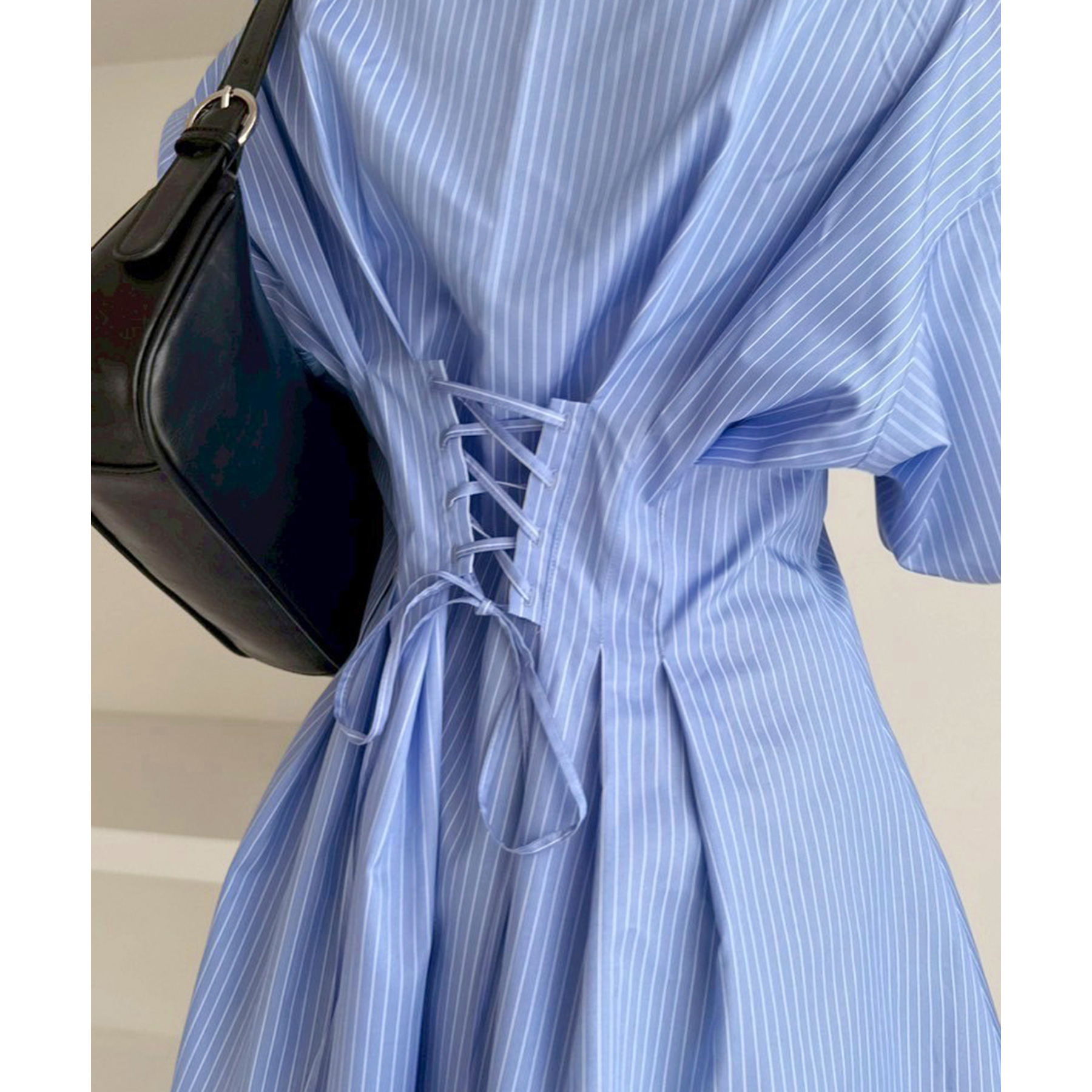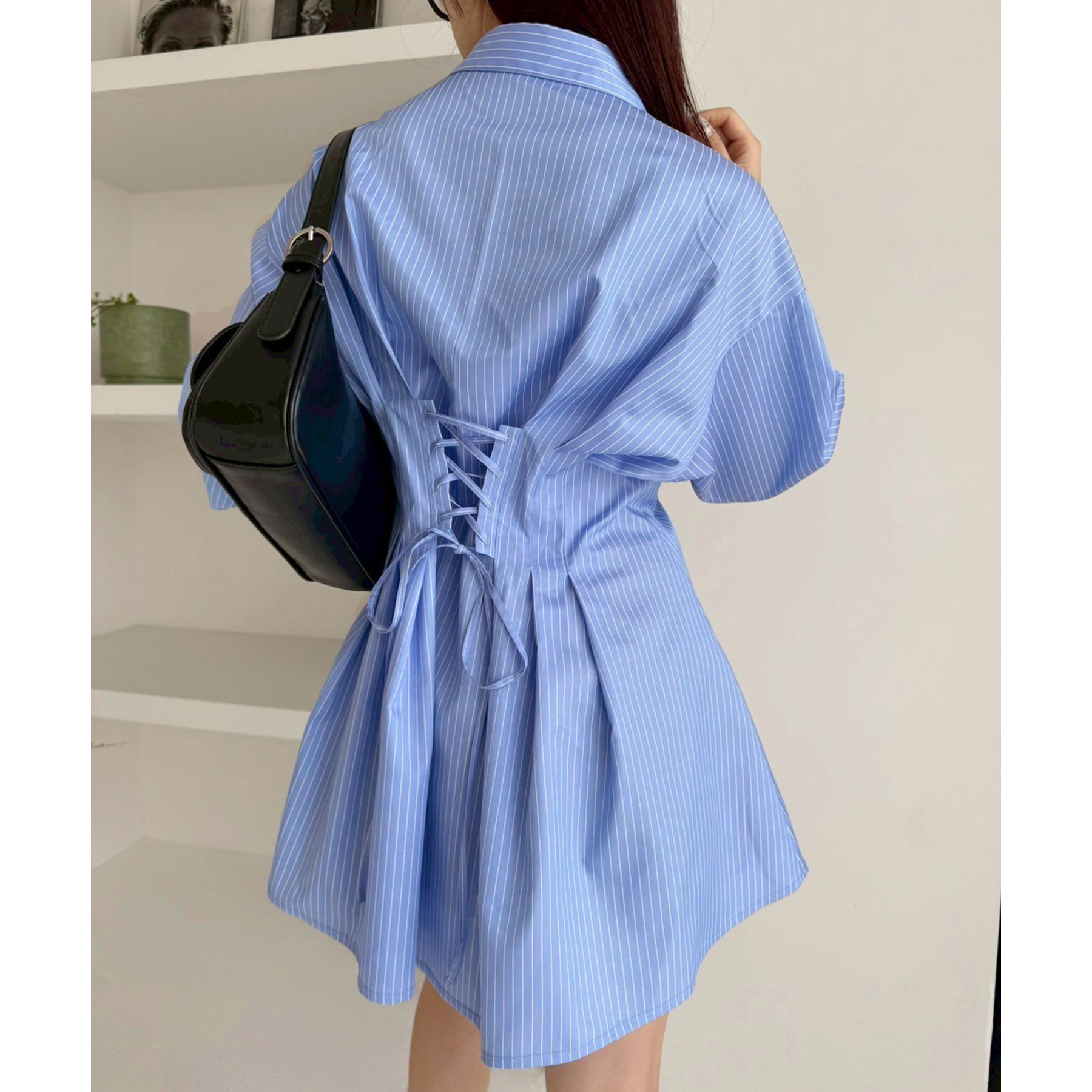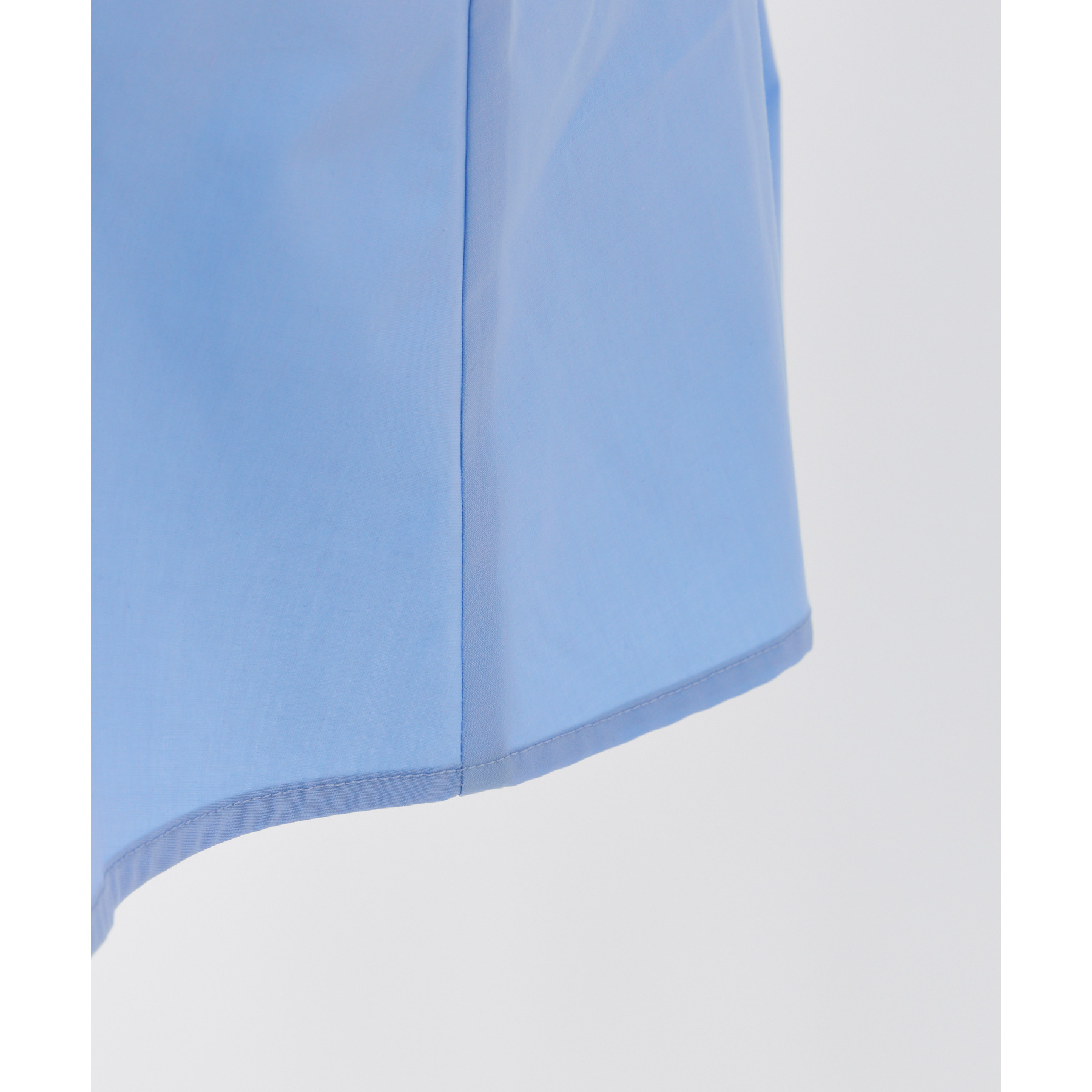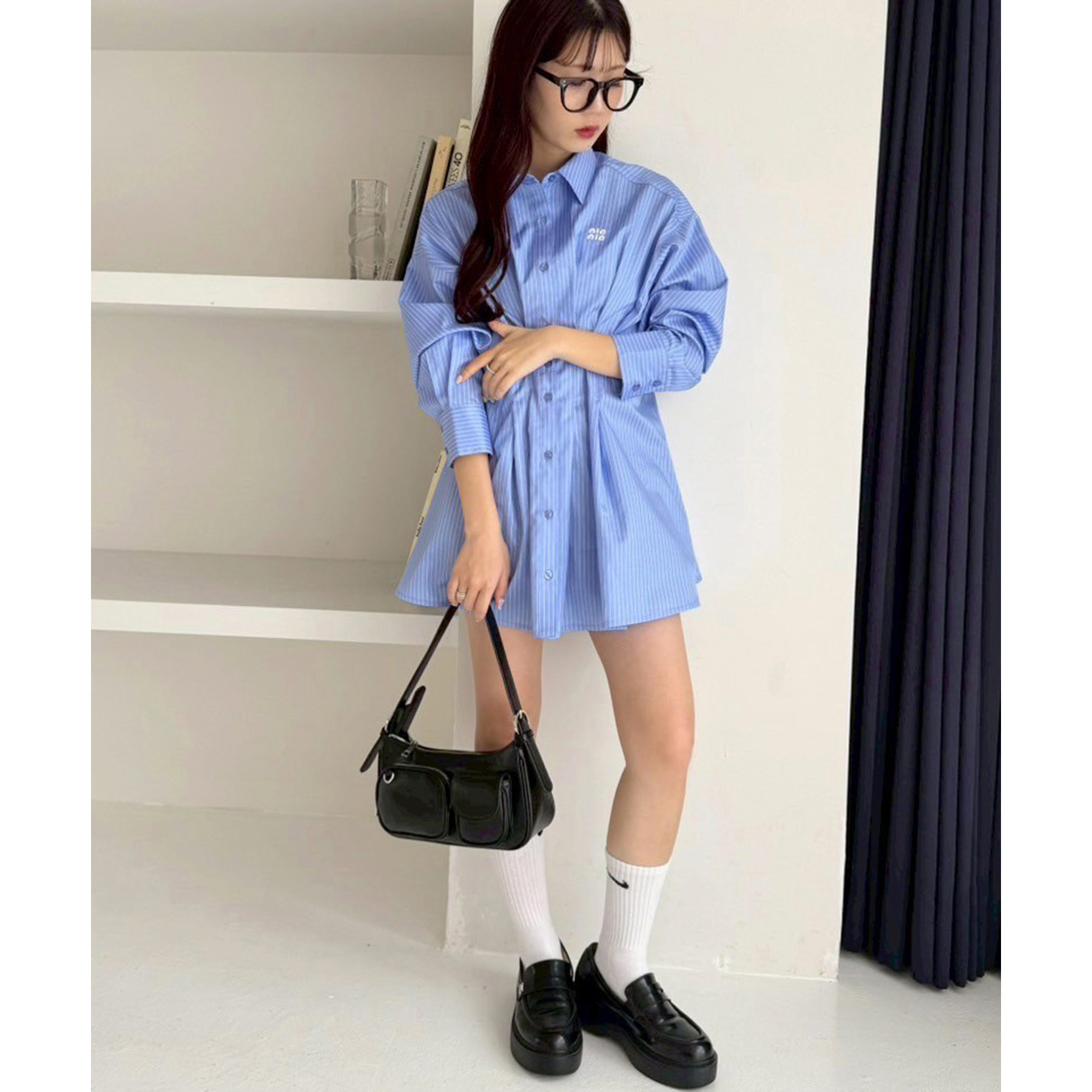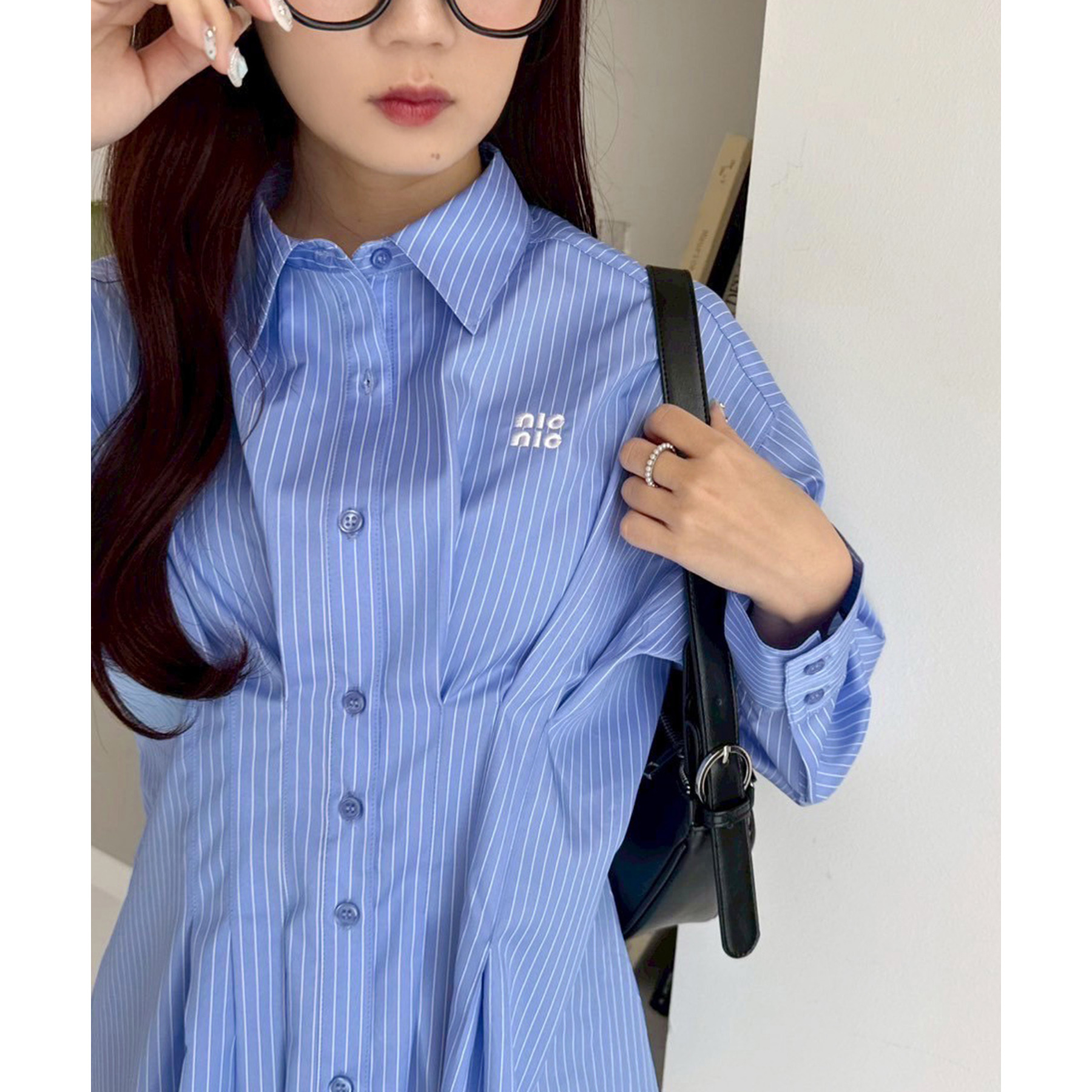 着るだけでスタイルアップができ、ウエスト細見え間違いなしのミドル丈のシャツ。