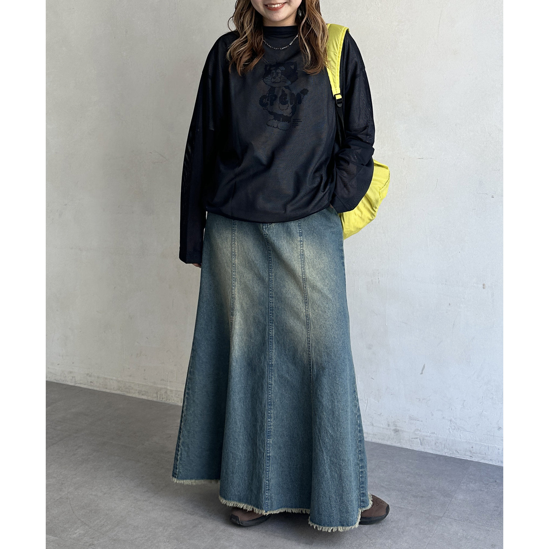 ・ワイドパンツやスカートと合わせて、ストリートテイストなスタイルに。キャップやスニーカーをプラスすれば、よりストリート感を演出できます。