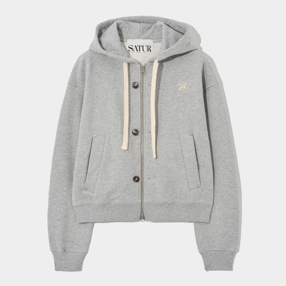 (W) Teo Cotton All Day Hood Zip-Up - Melange Gray