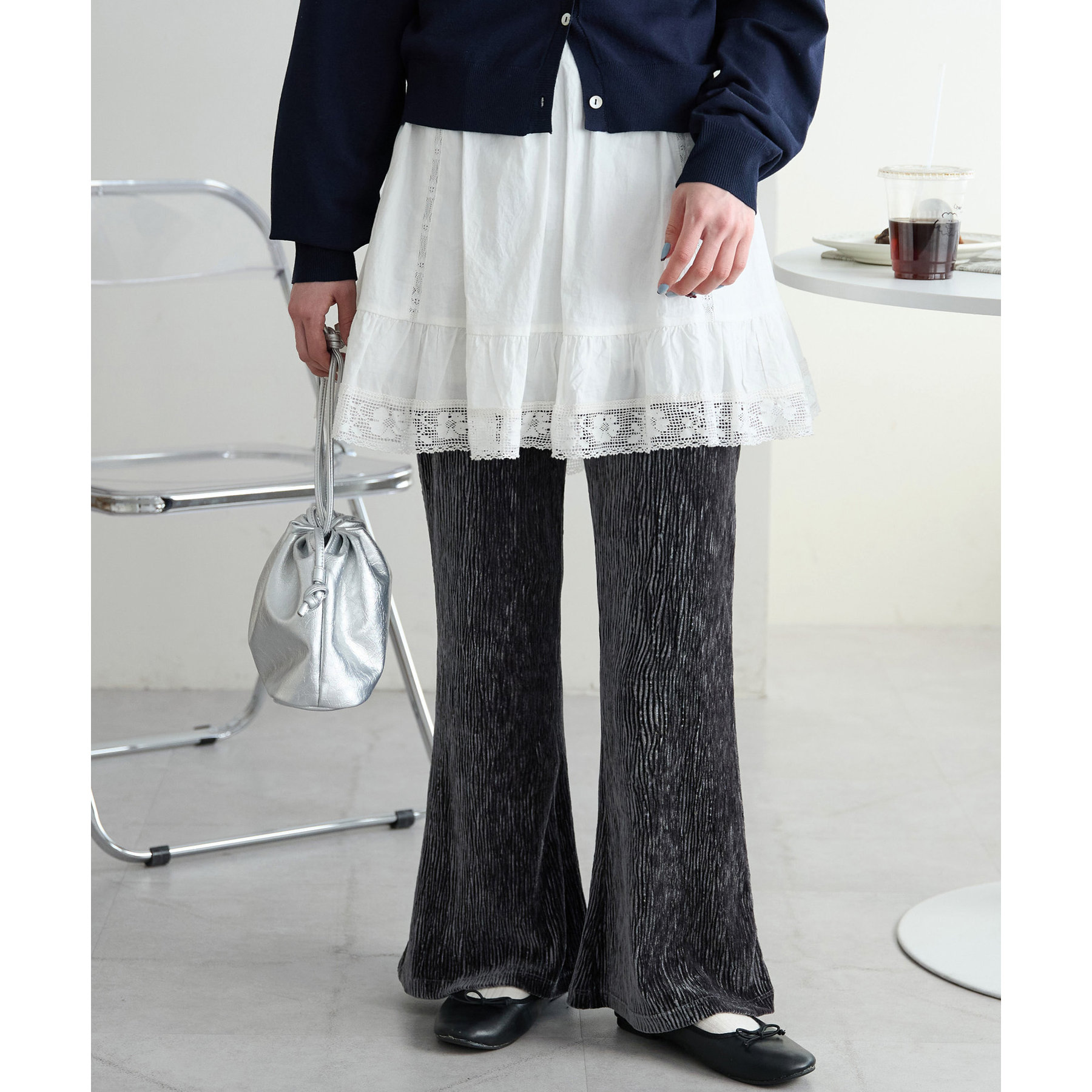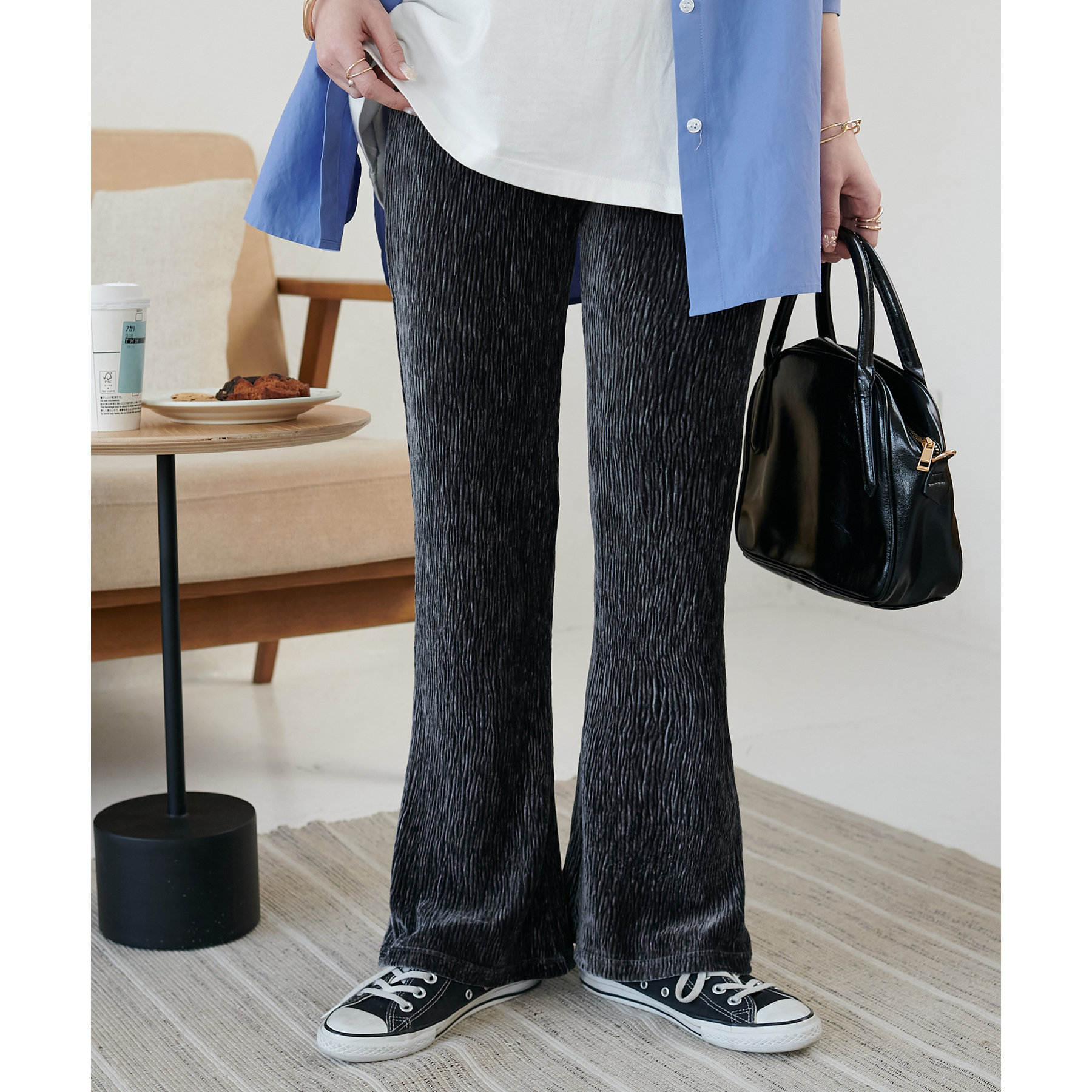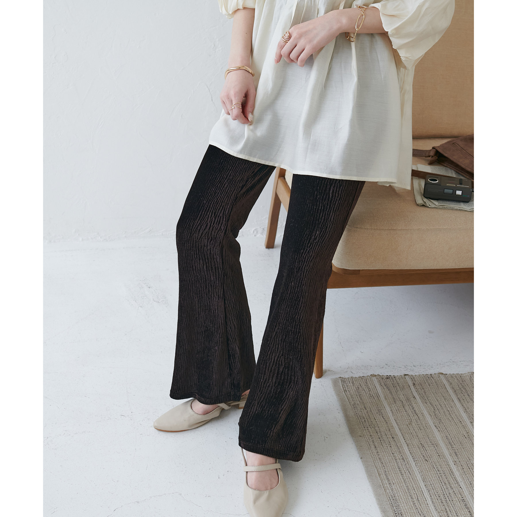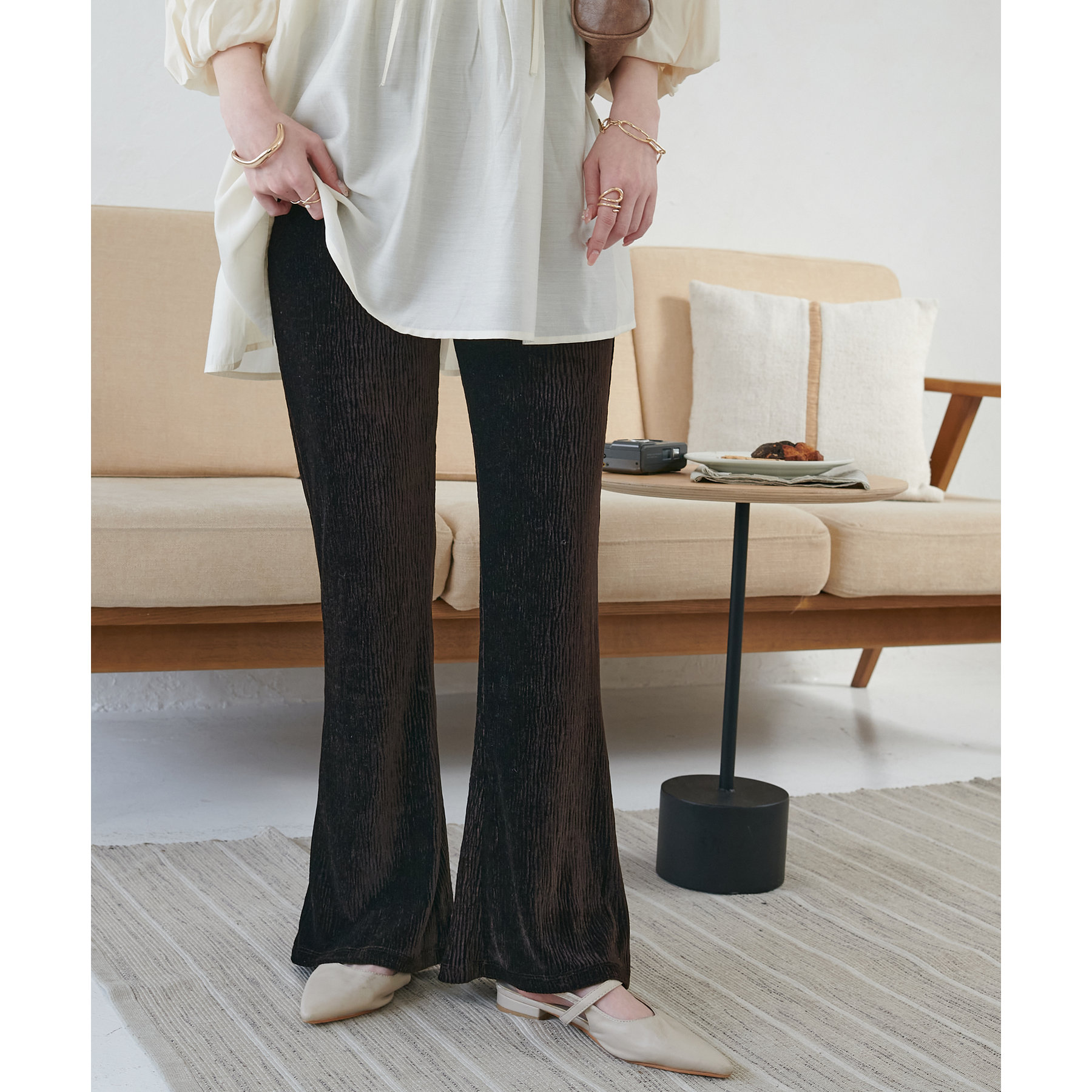 ベロアプリーツフレアパンツ