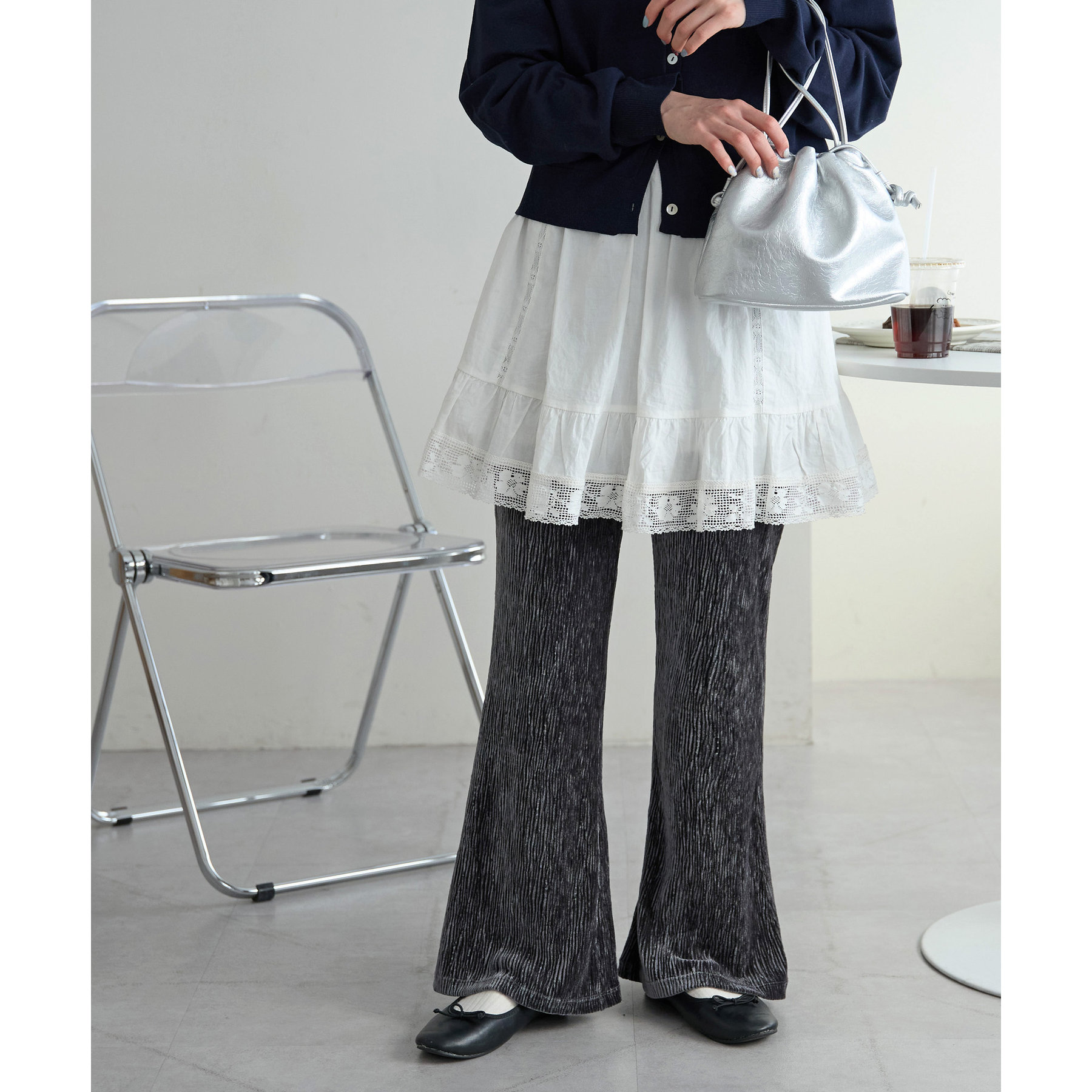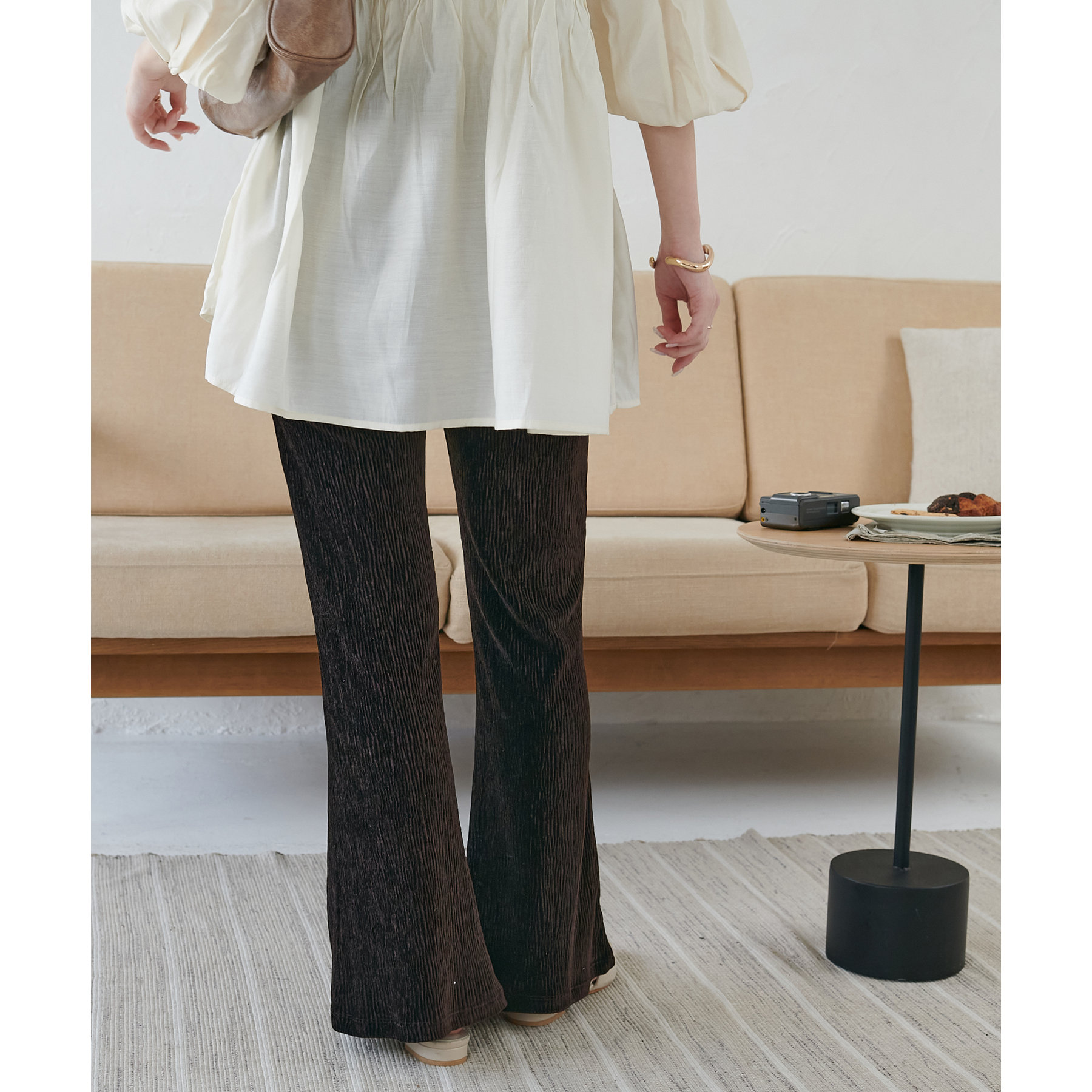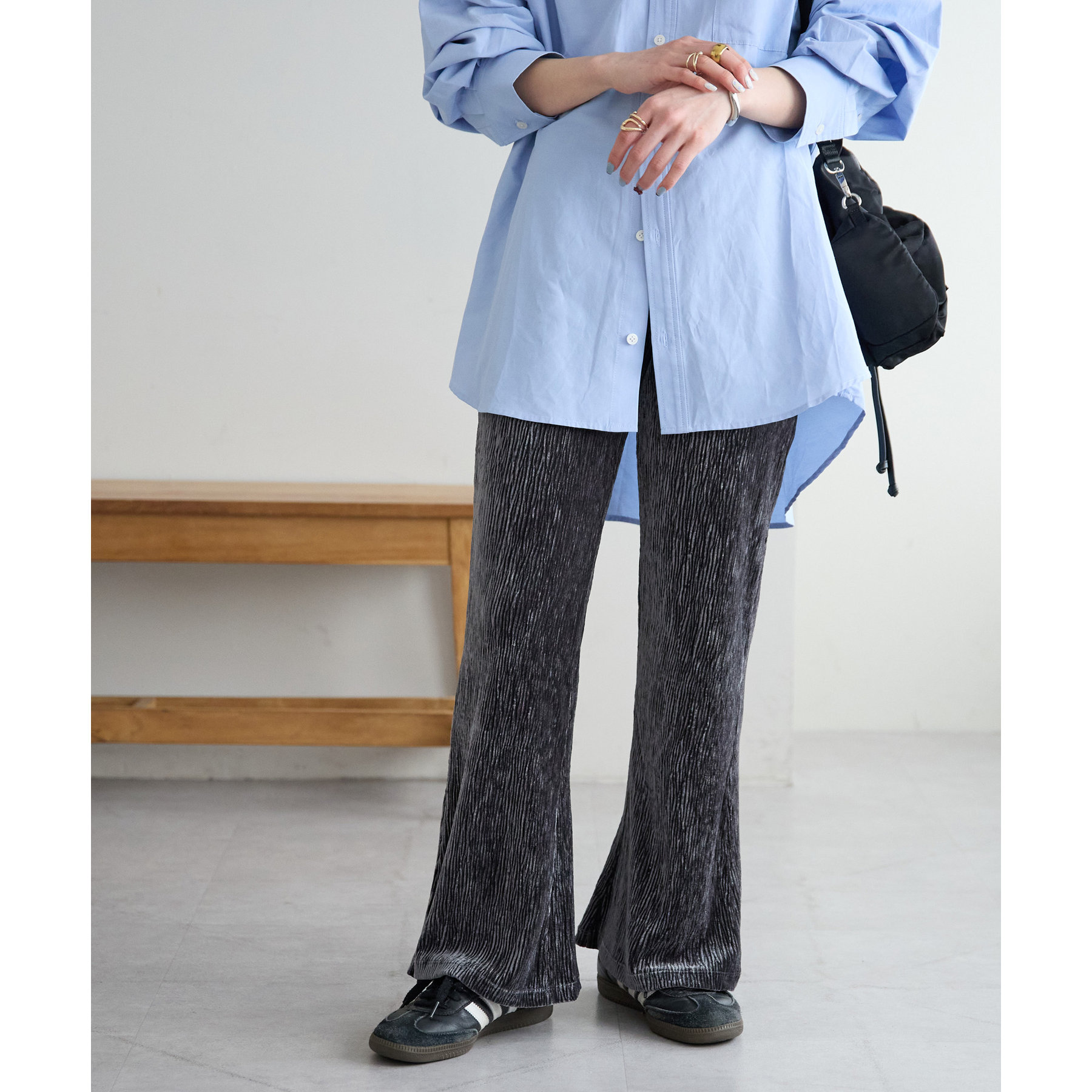 ベロアプリーツフレアパンツ