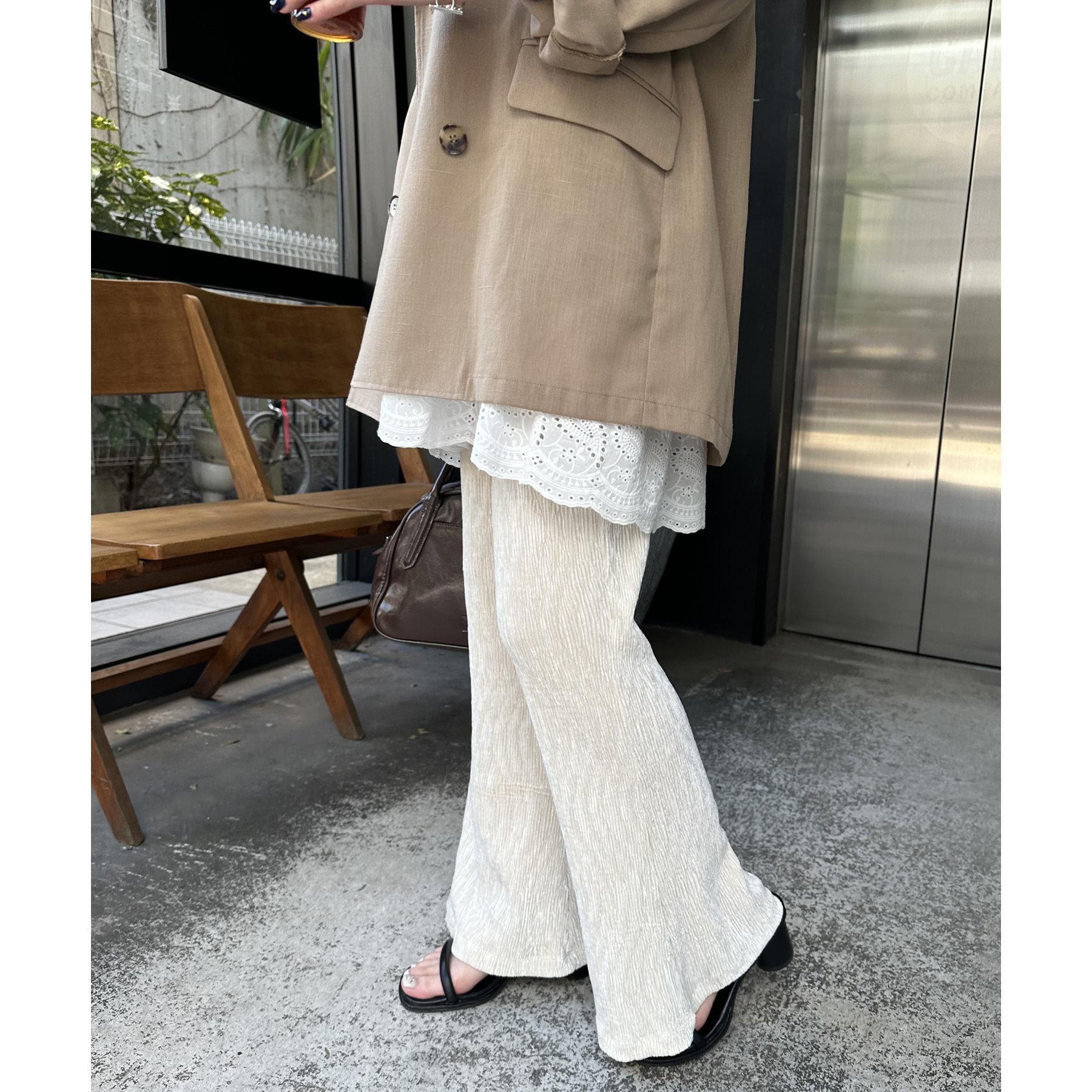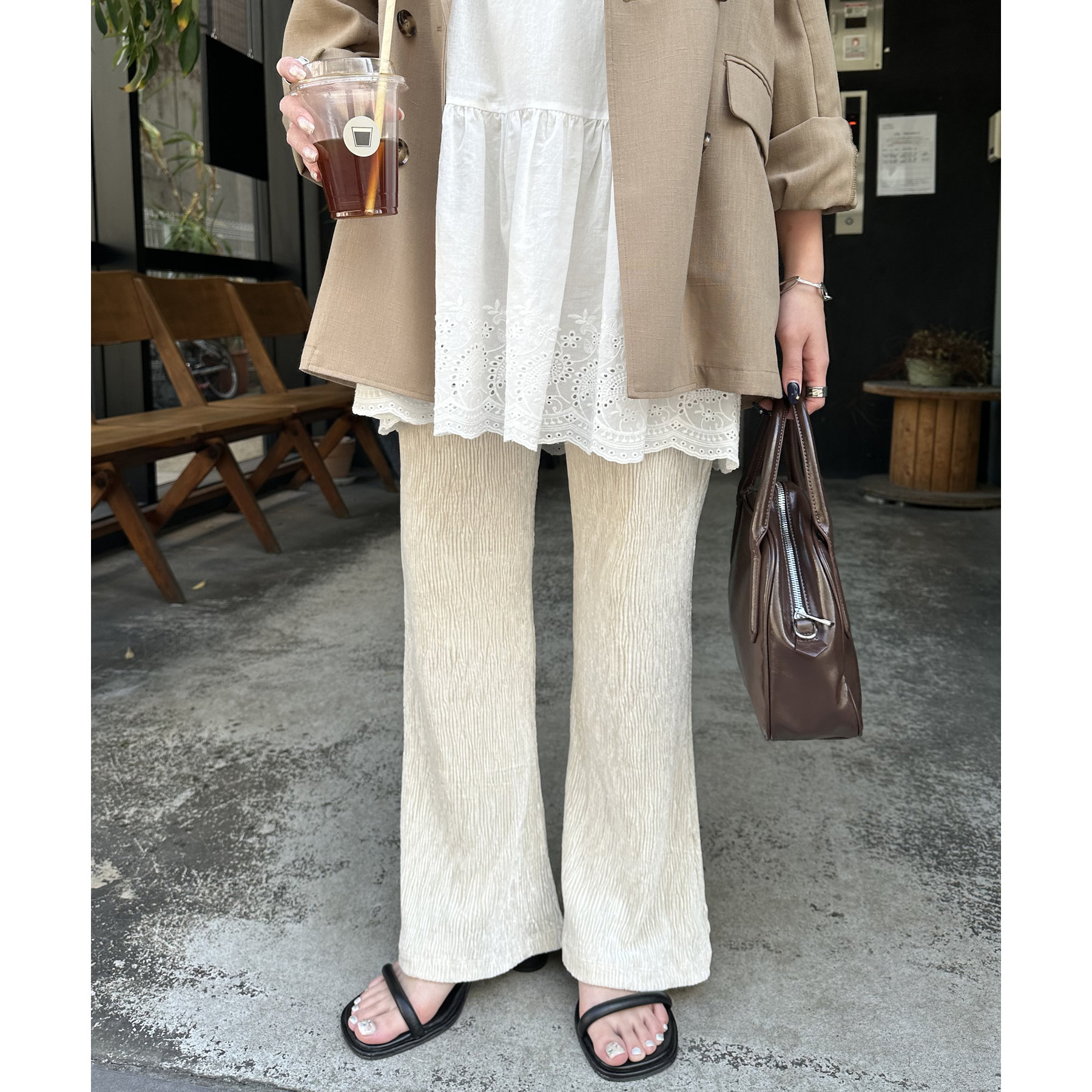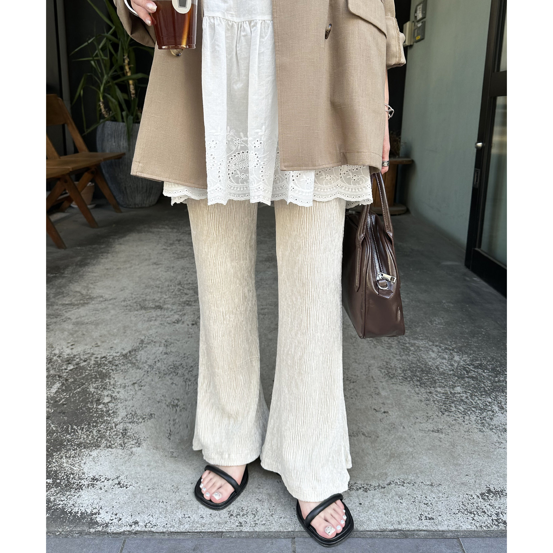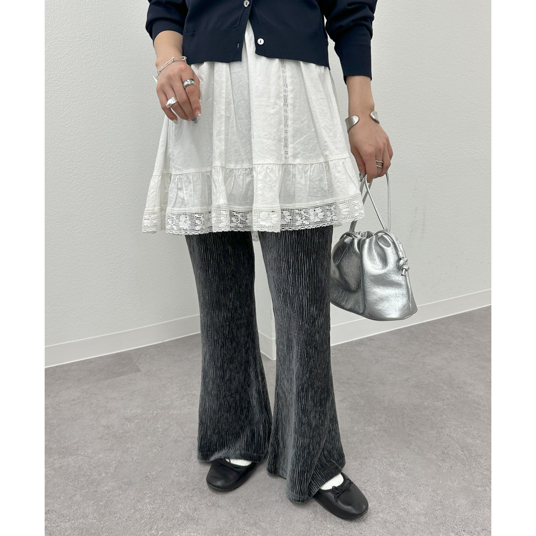 ベロアプリーツフレアパンツ