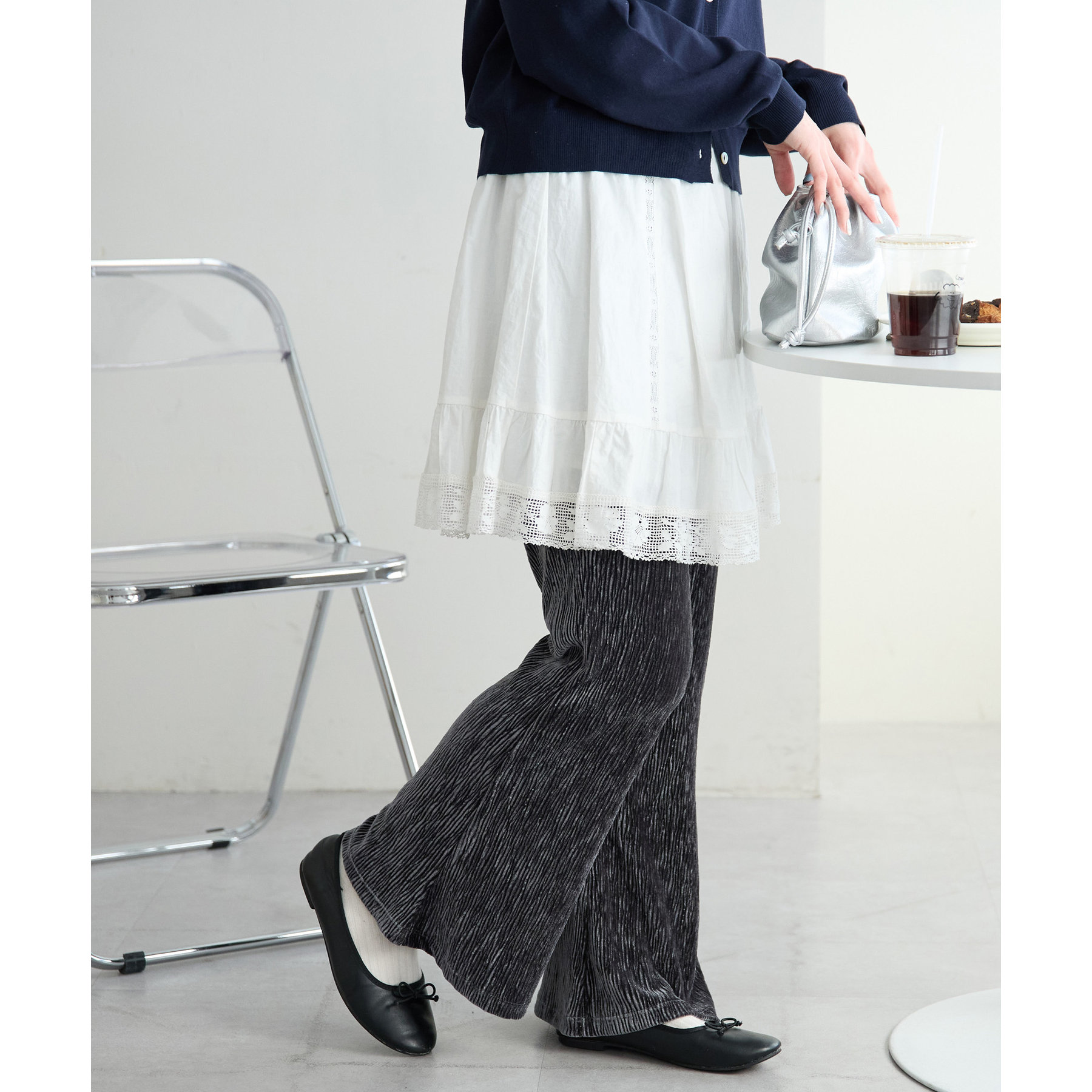 縦方向のプリーツが、脚を長く、そして細く見せ細身え効果も!