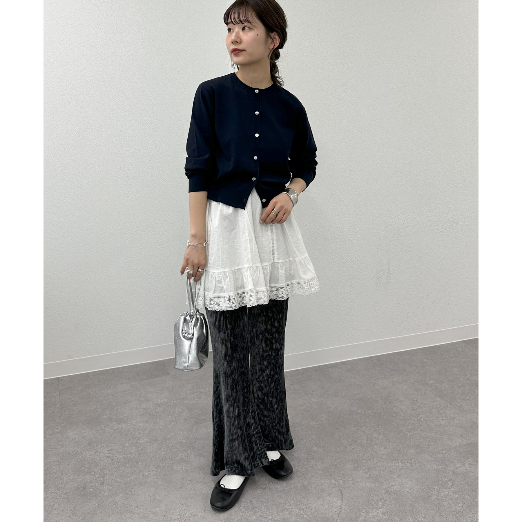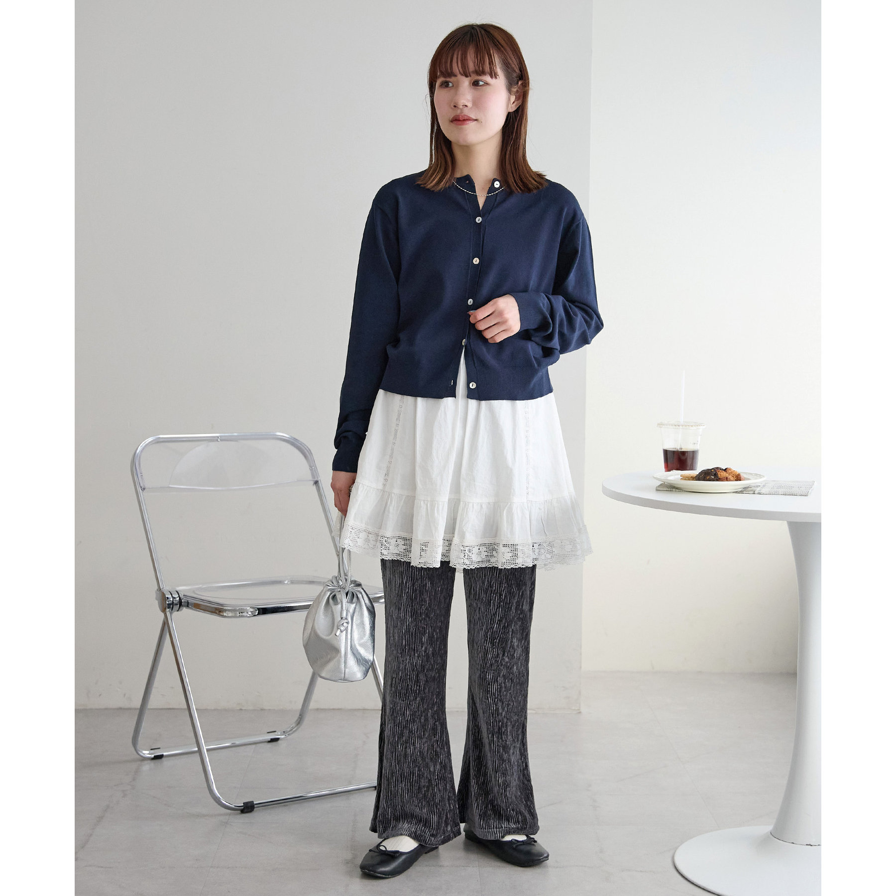 149㎝スタッフ(Sサイズ着用):ペタンこの靴を履いても安心の着丈です!