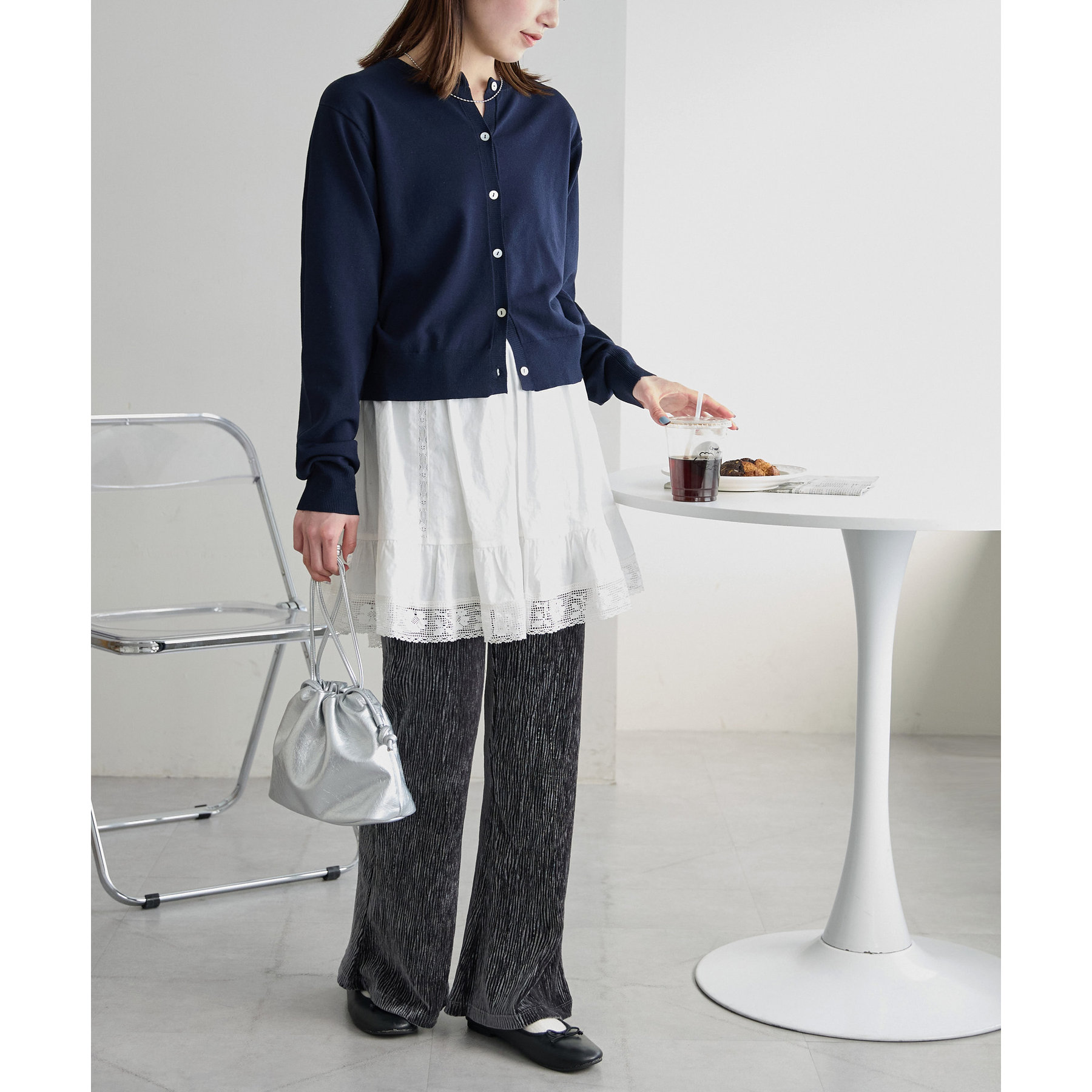 上品な光沢感と、繊細なプリーツ加工が織りなす美しいシルエットは、着るだけでスタイルを格上げしてくれるでしょう。