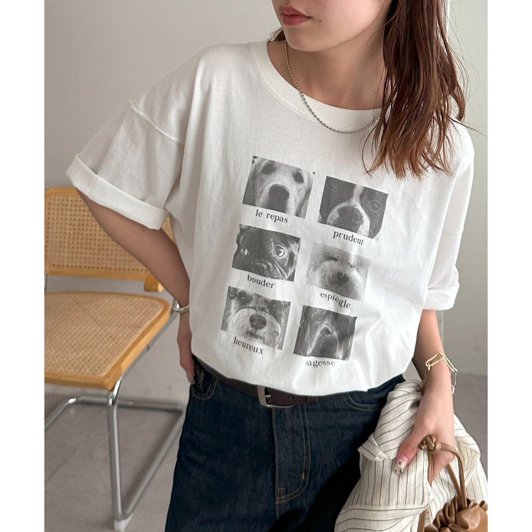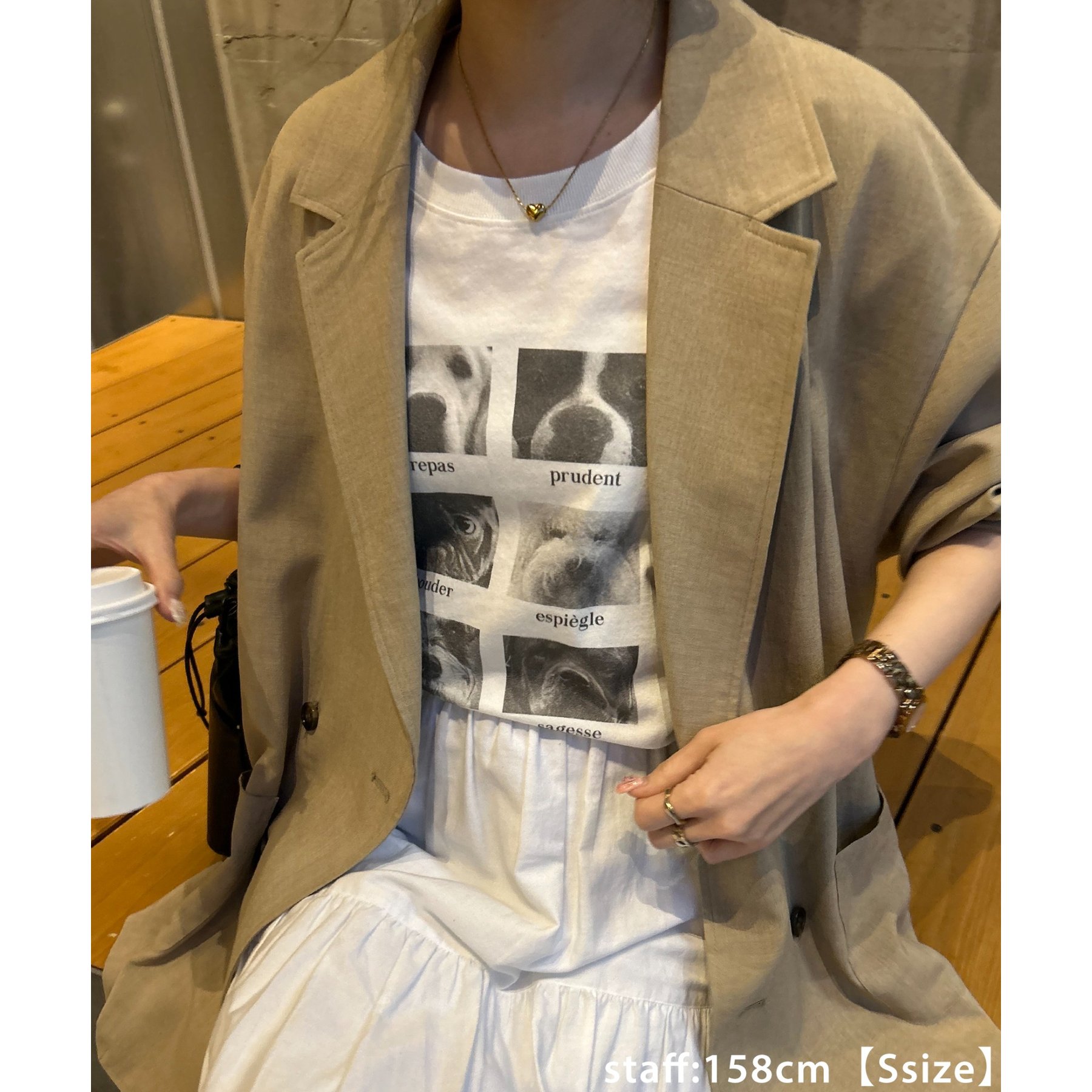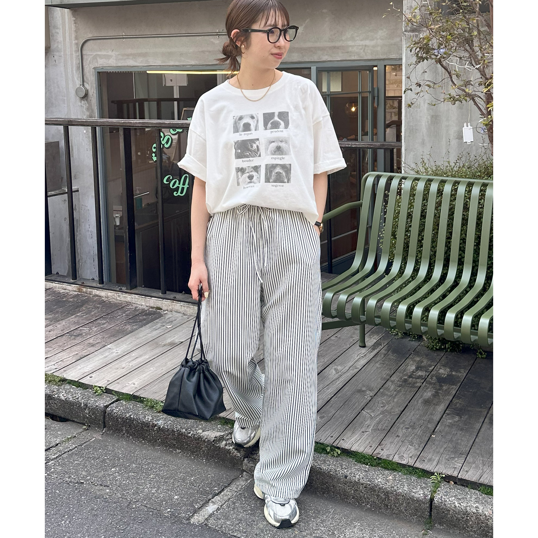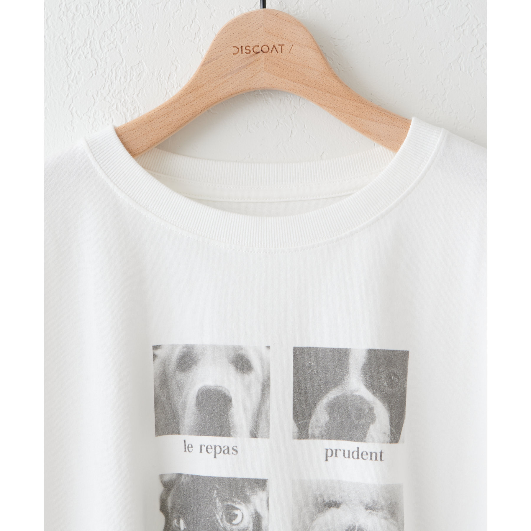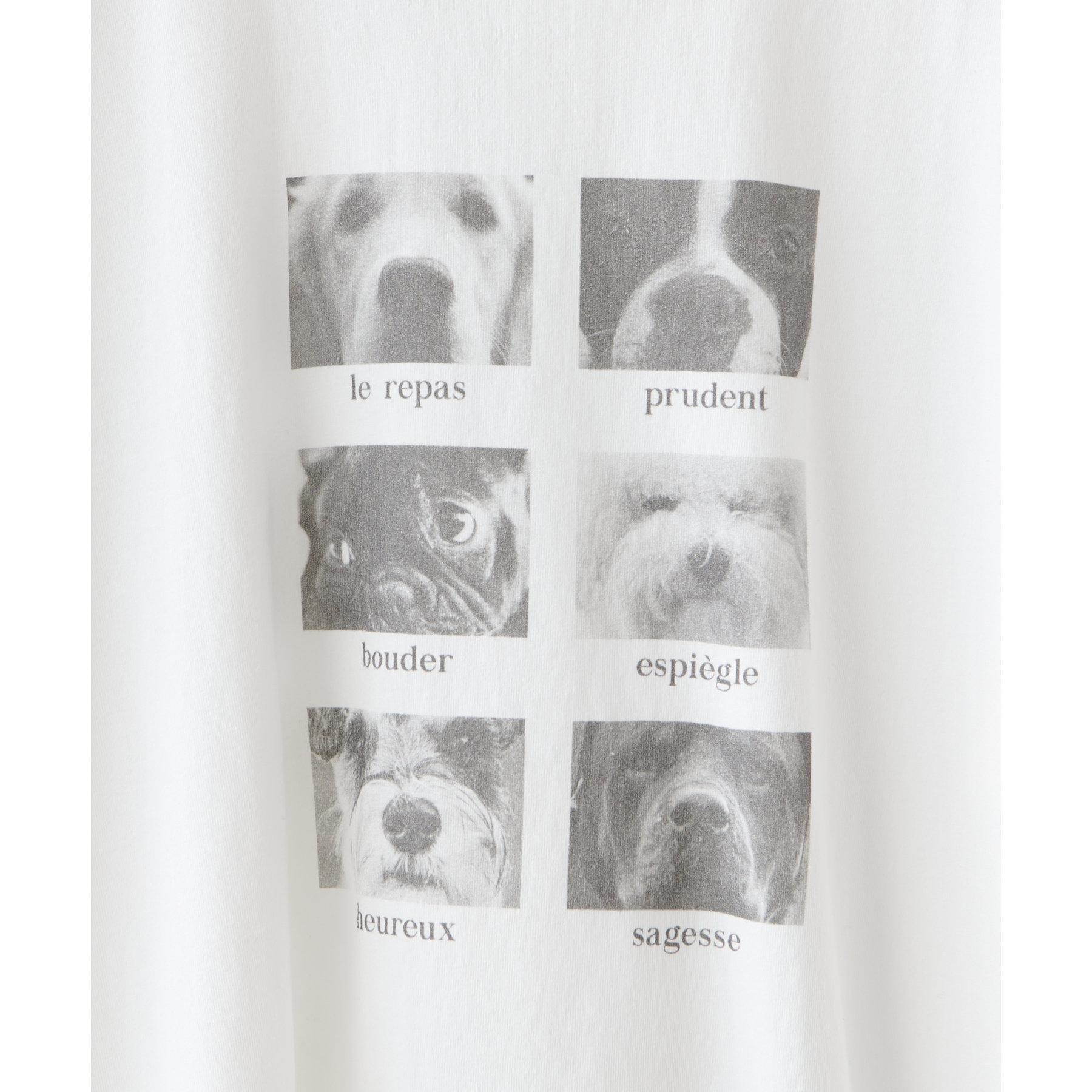 169cmメンズスタッフ(Mサイズ着用):ワンちゃんの写真が目を惹くデザインなので、シンプルなデニムと合わせてもサマになります◎また、ジャケットやシャツのインナー合わせおすすめです◎