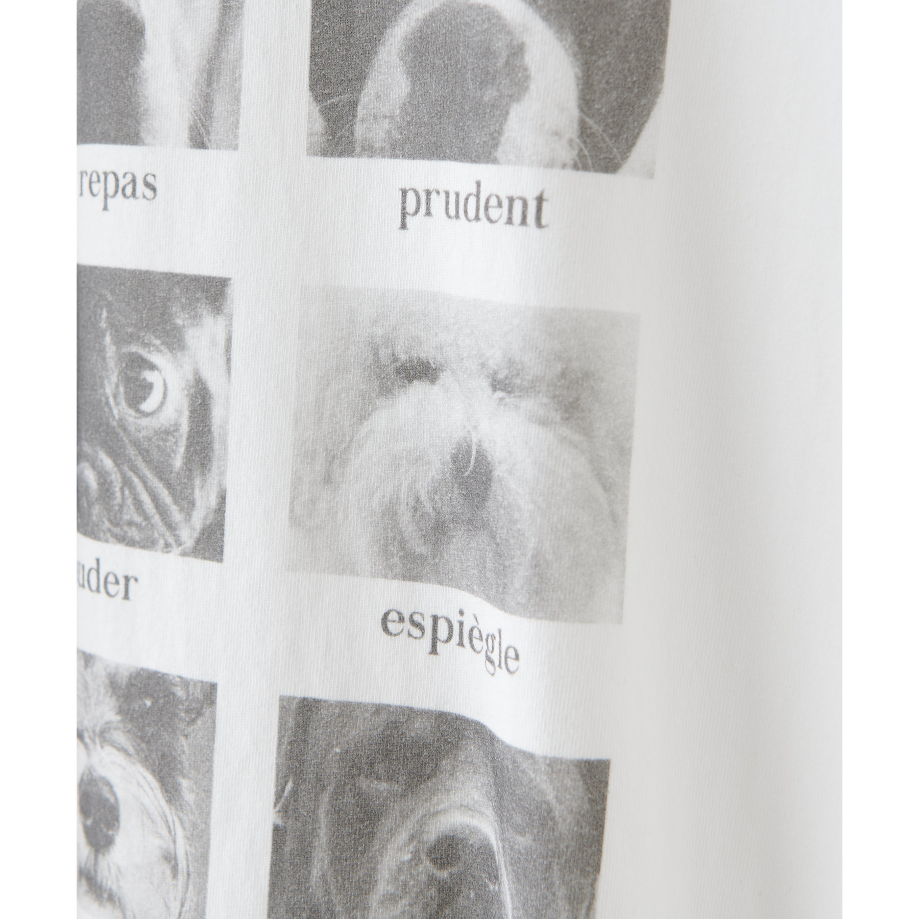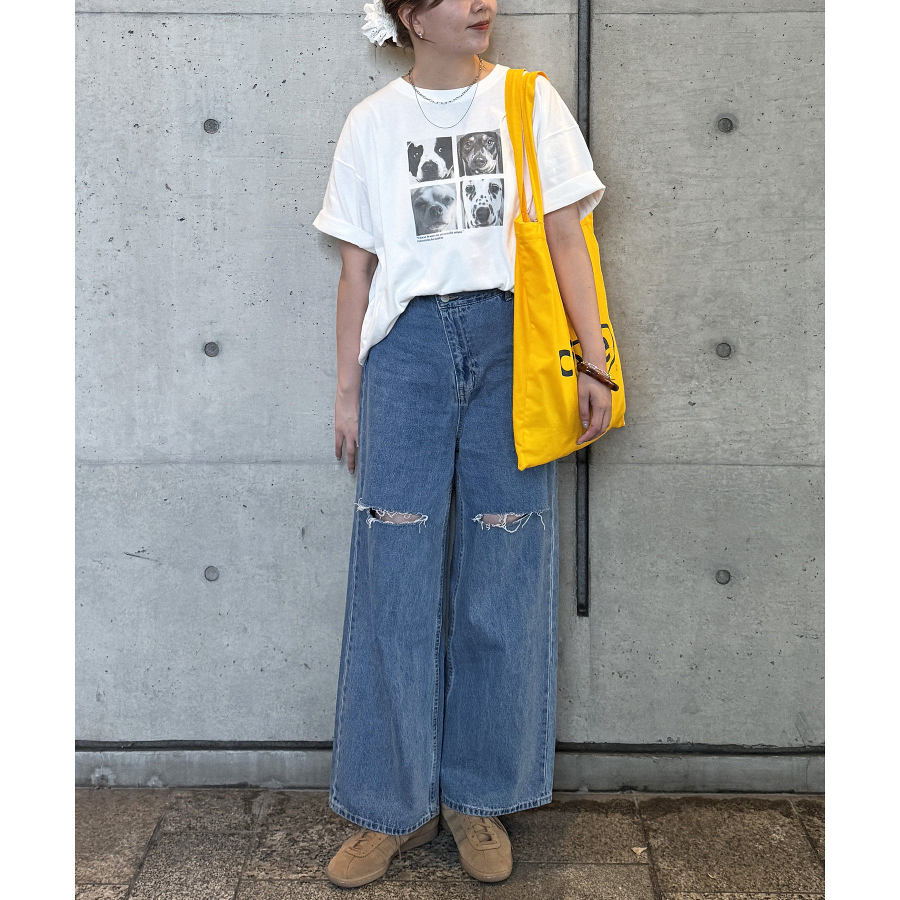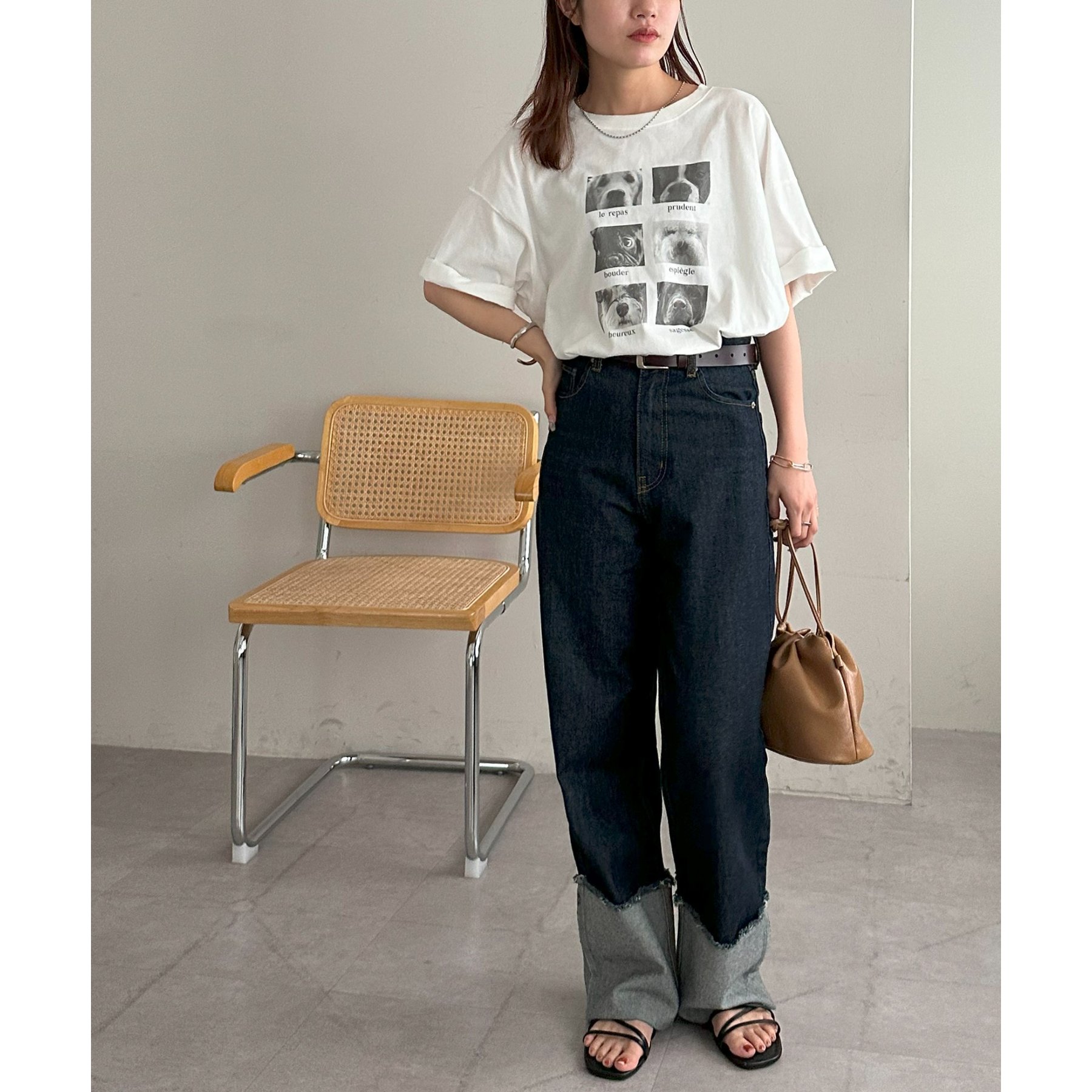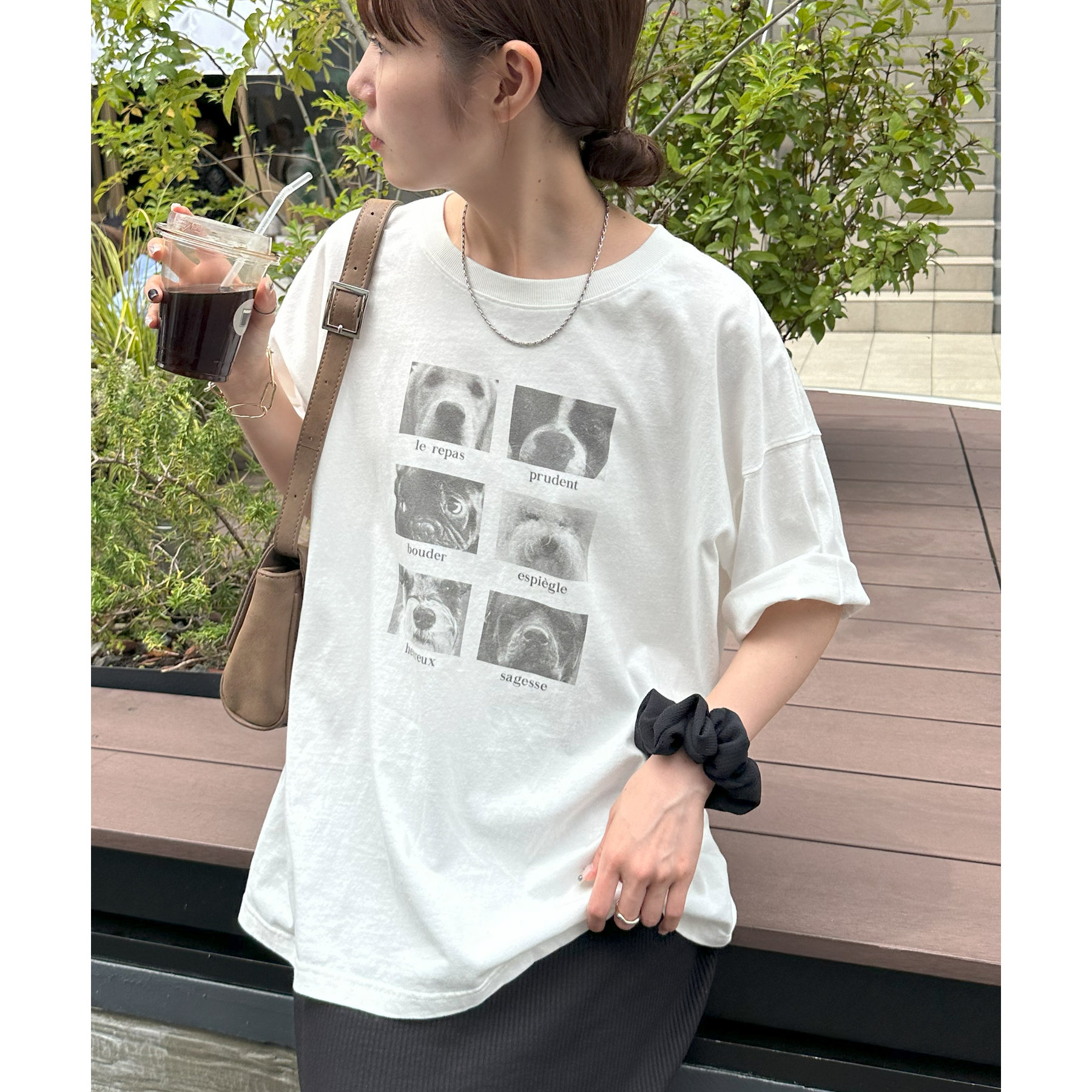 169cmメンズスタッフ(Mサイズ着用):ワンちゃんの写真が目を惹くデザインなので、シンプルなデニムと合わせてもサマになります◎また、ジャケットやシャツのインナー合わせおすすめです◎
