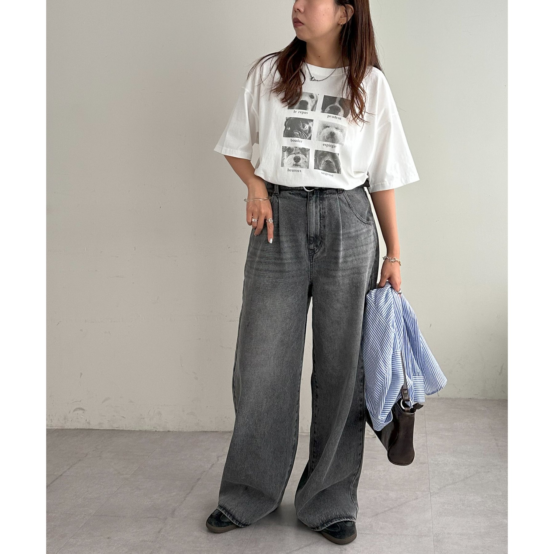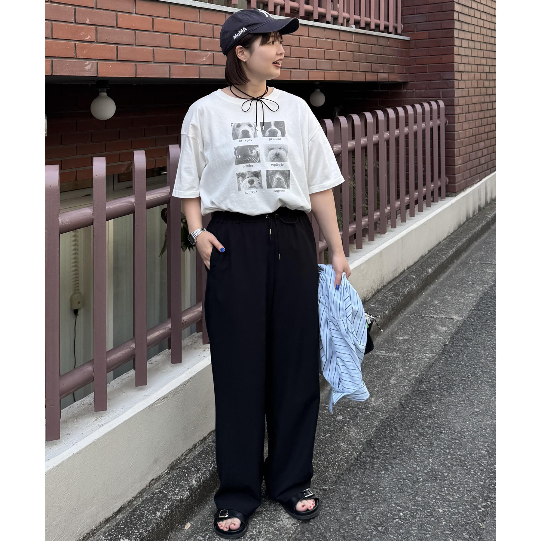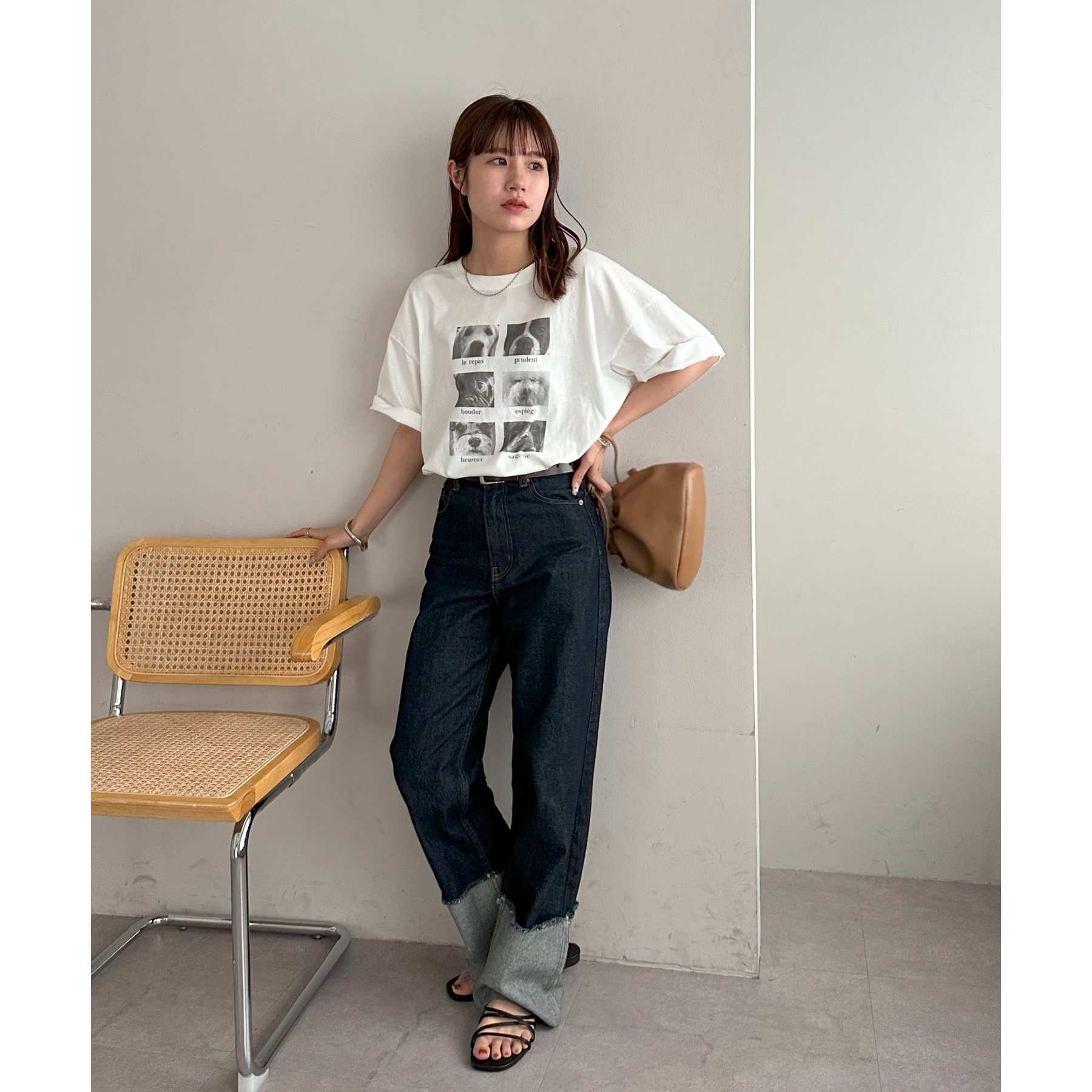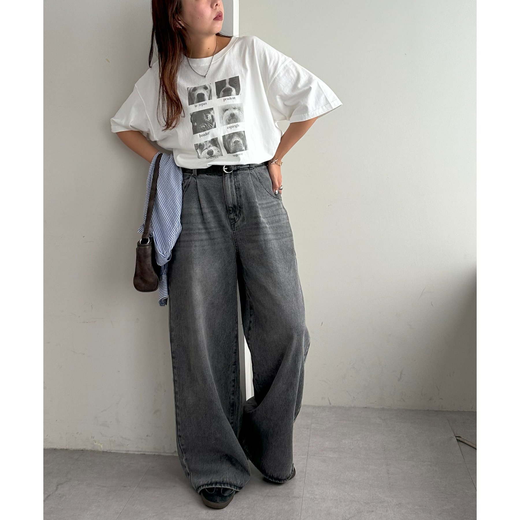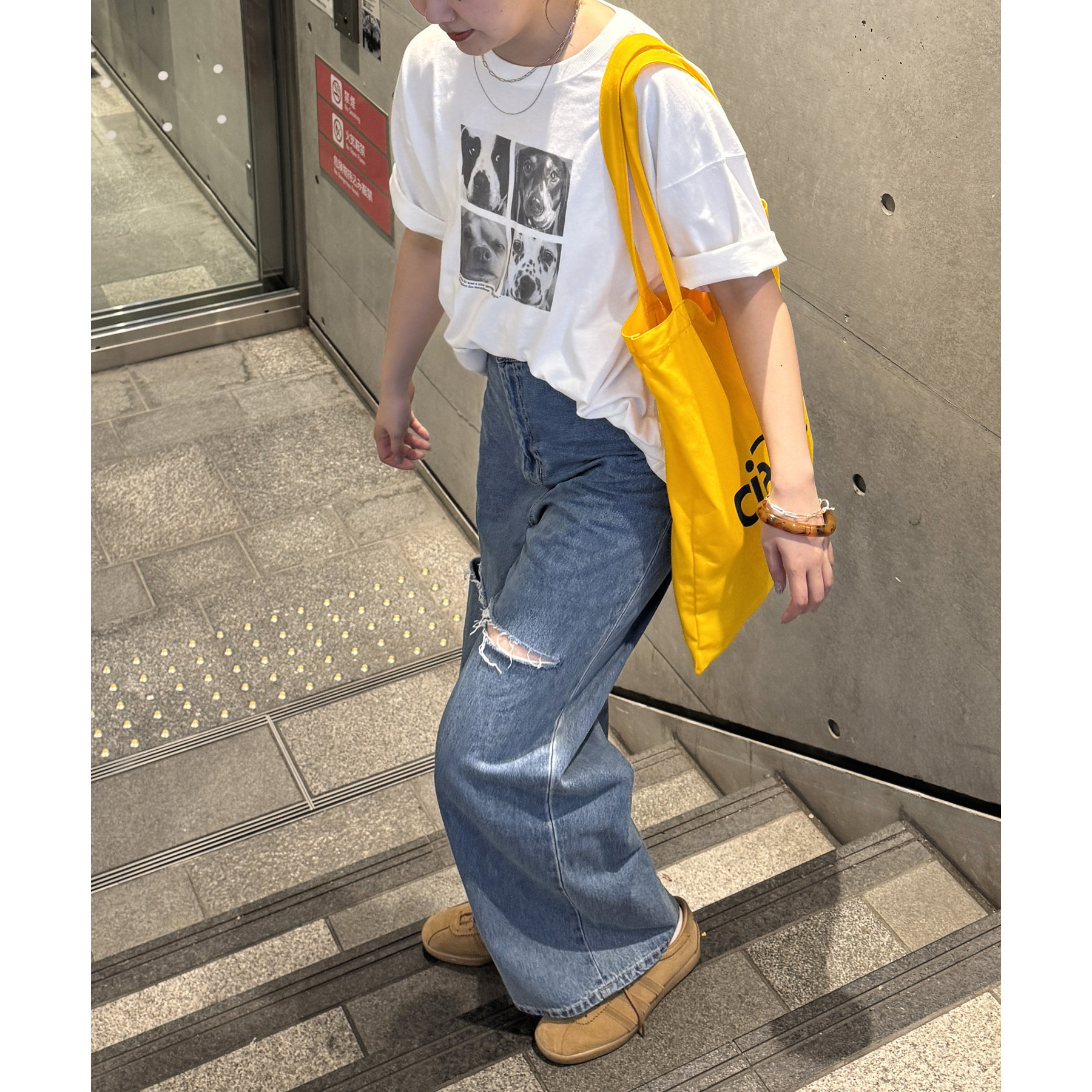 169cmメンズスタッフ(Mサイズ着用):ワンちゃんの写真が目を惹くデザインなので、シンプルなデニムと合わせてもサマになります◎また、ジャケットやシャツのインナー合わせおすすめです◎