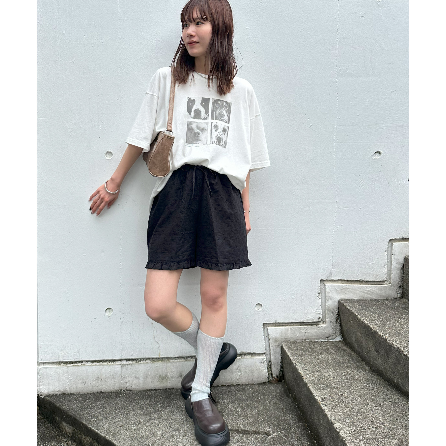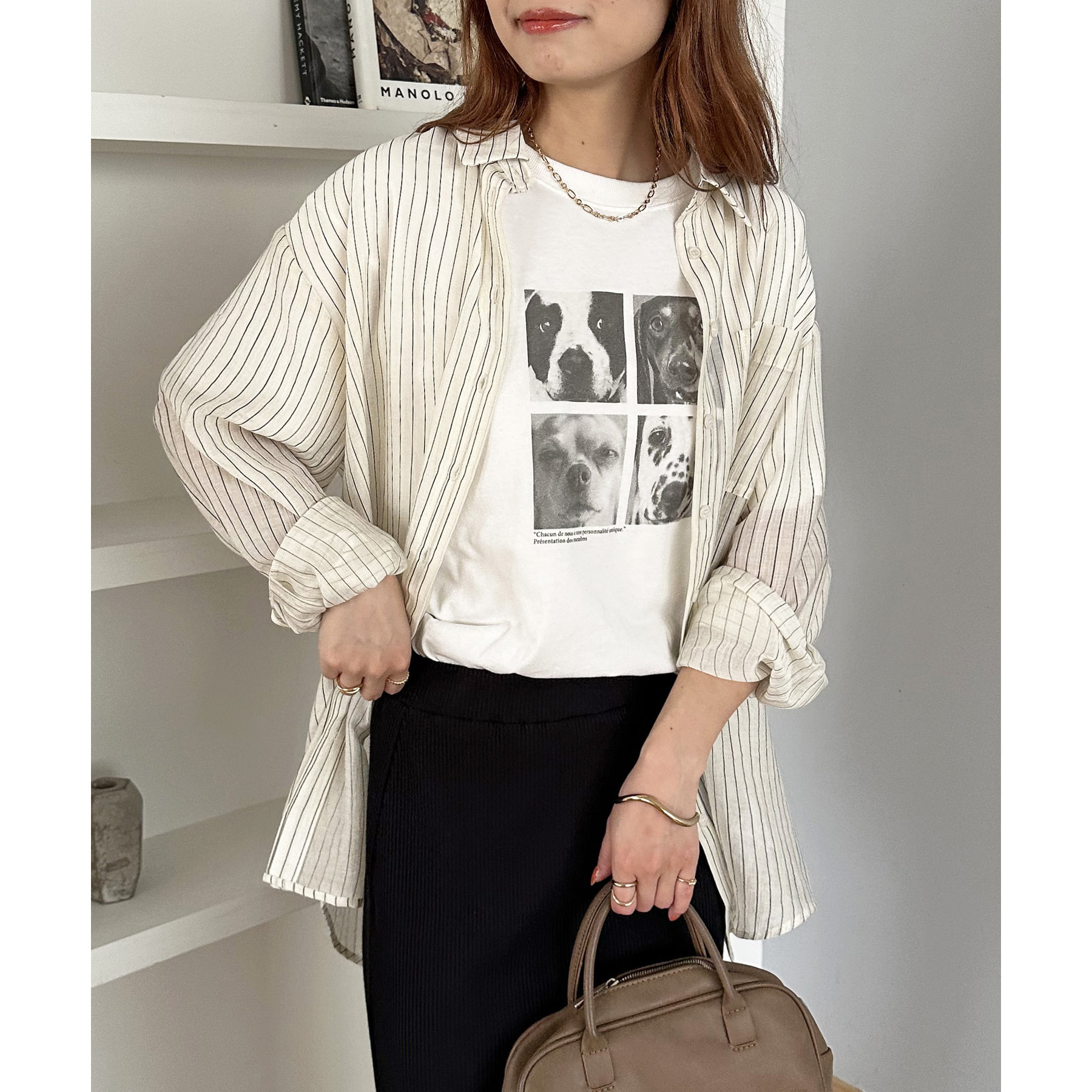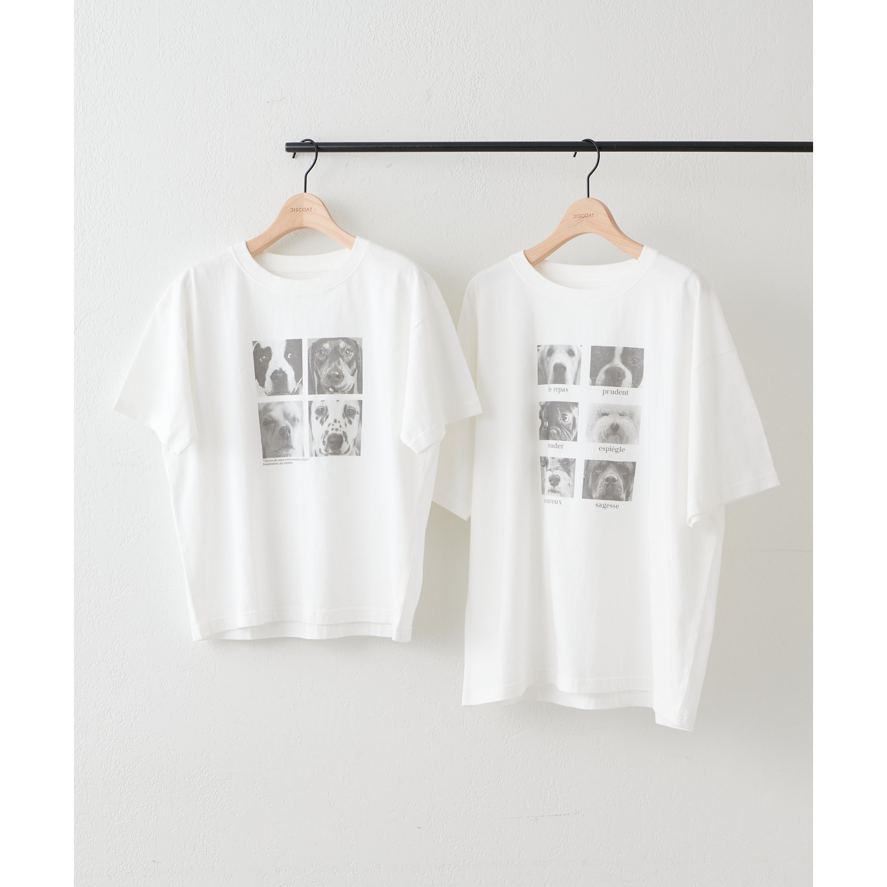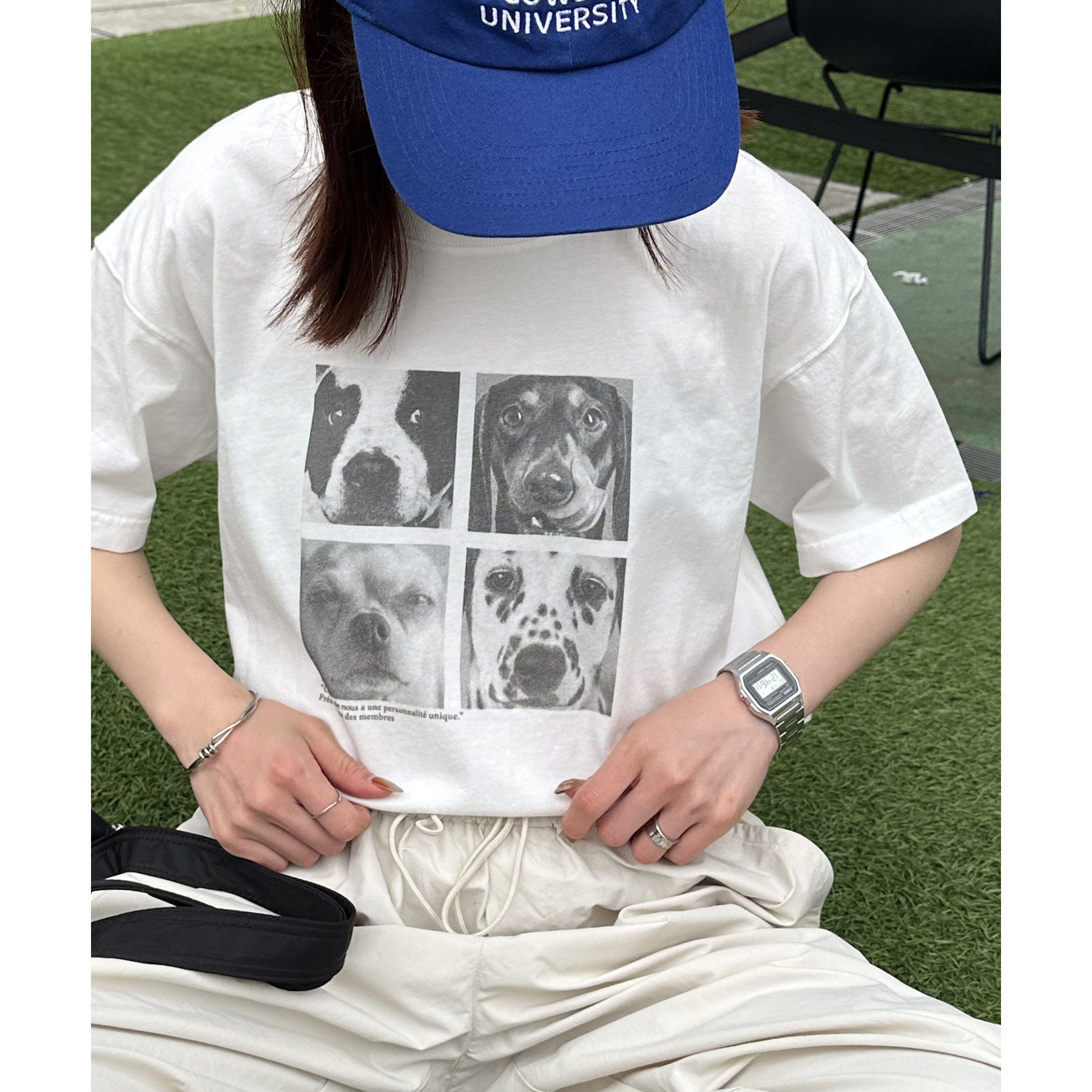 胸元に施されたワンちゃんの写真は、シンプルながらも存在感があり、コーデのアクセントに!