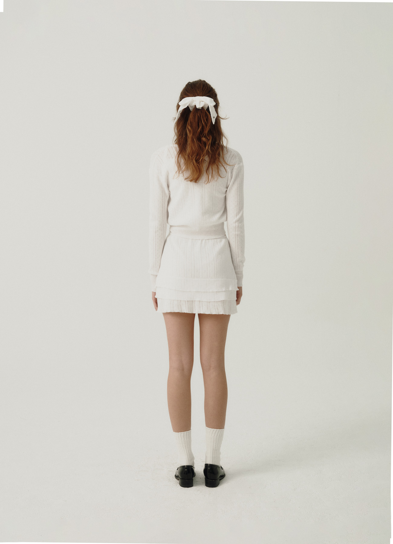 Ivory Cotton Eyelet Knit Pleated Skirt