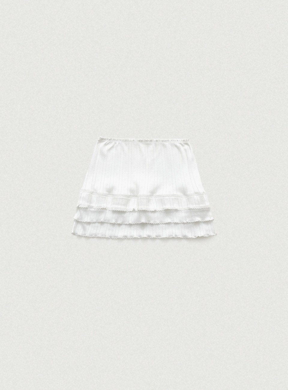 ピンコートウエストバンドと裾のティアード構造が女性らしいディテール。