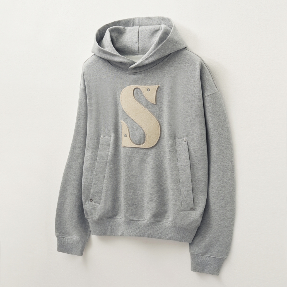 Rivet Applique Pocket Logo Hoodie - Melange Gray