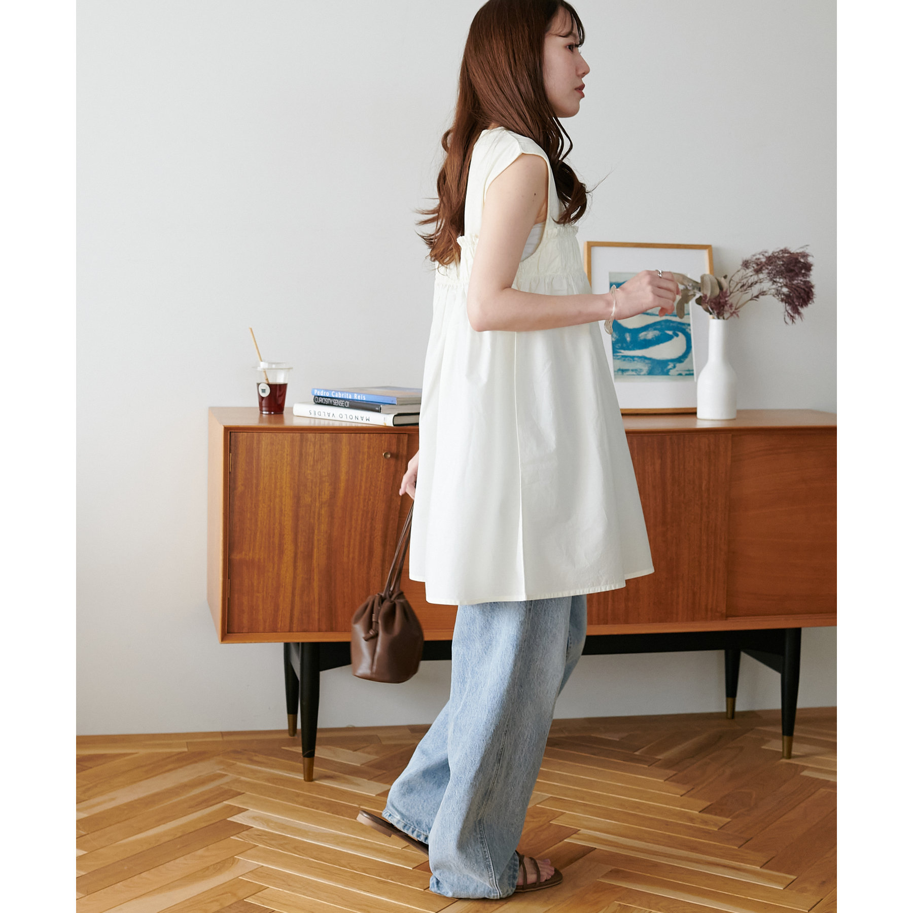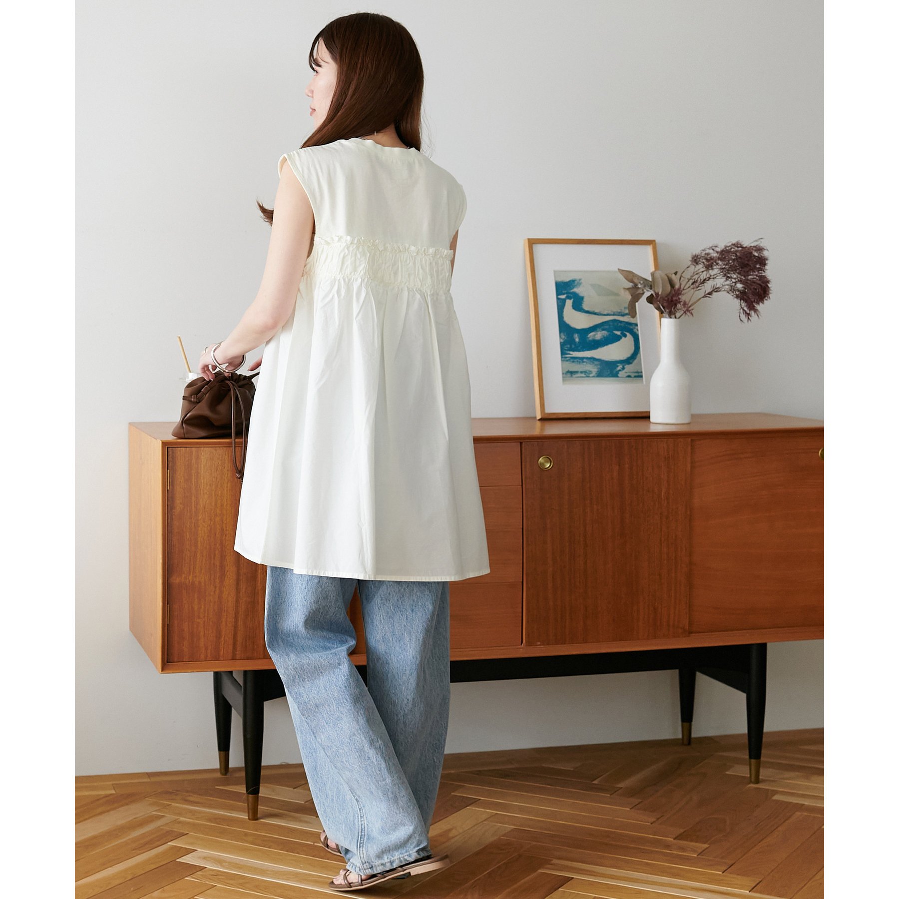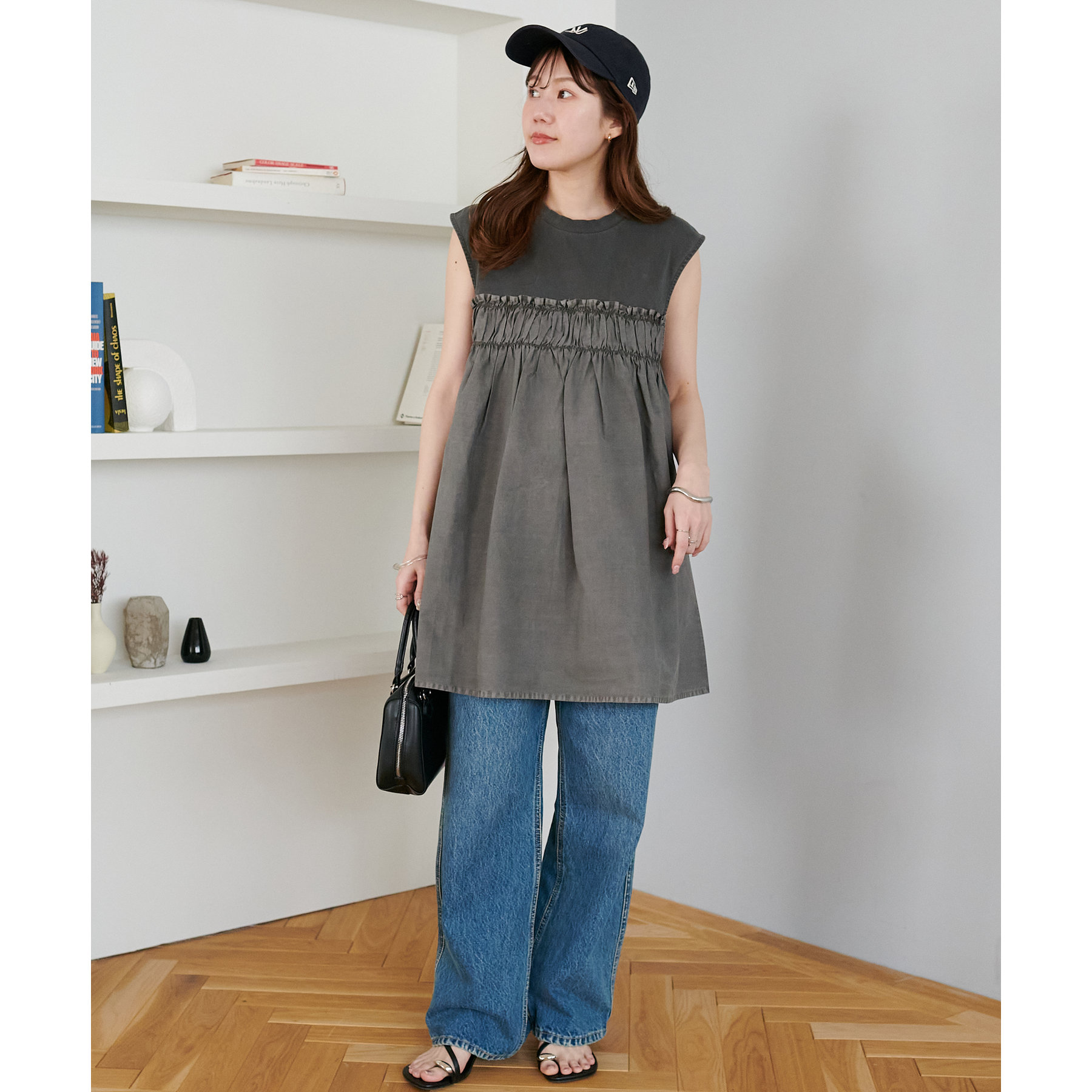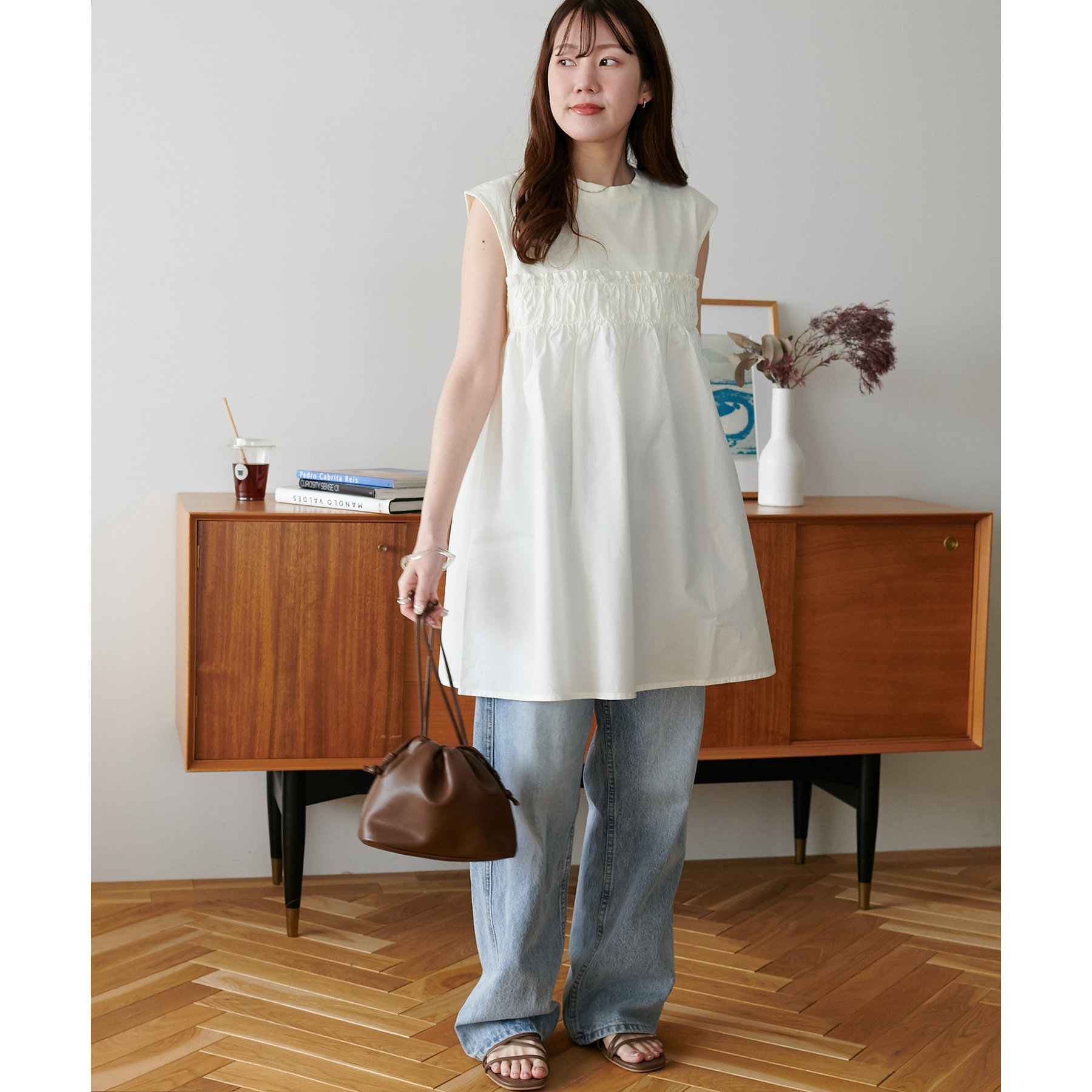 154cmスタッフ:ギャザーの位置が高めに入っていることで、目線がアップします◎