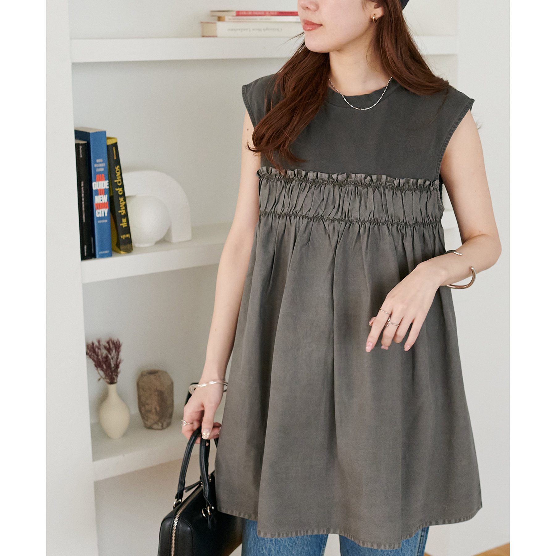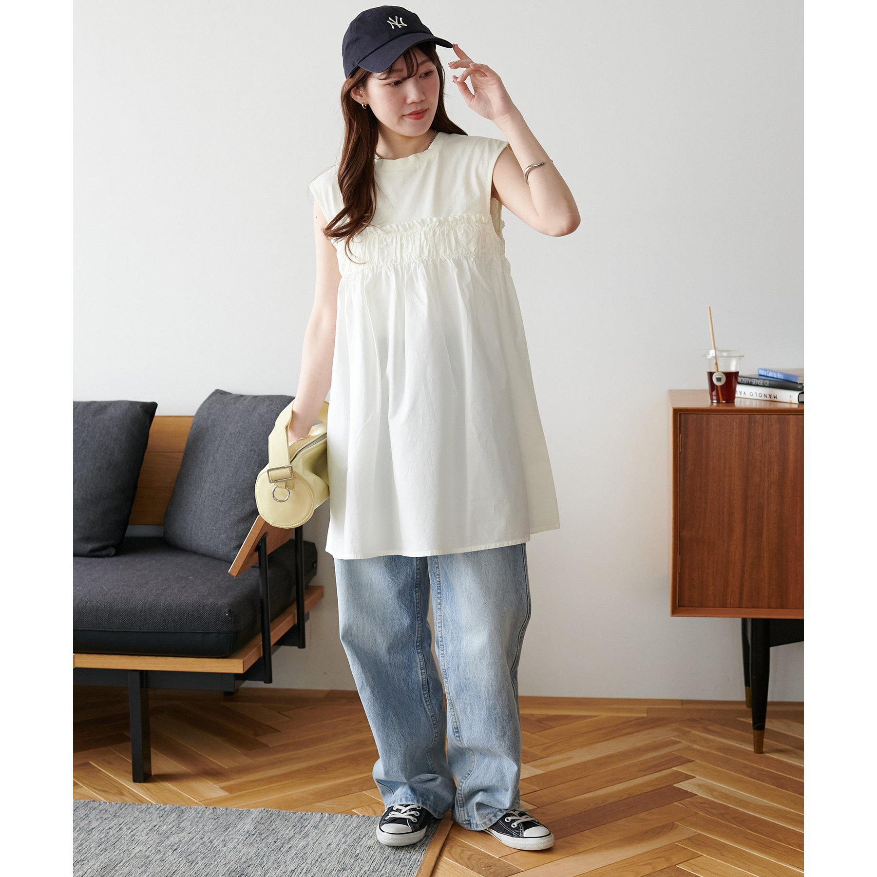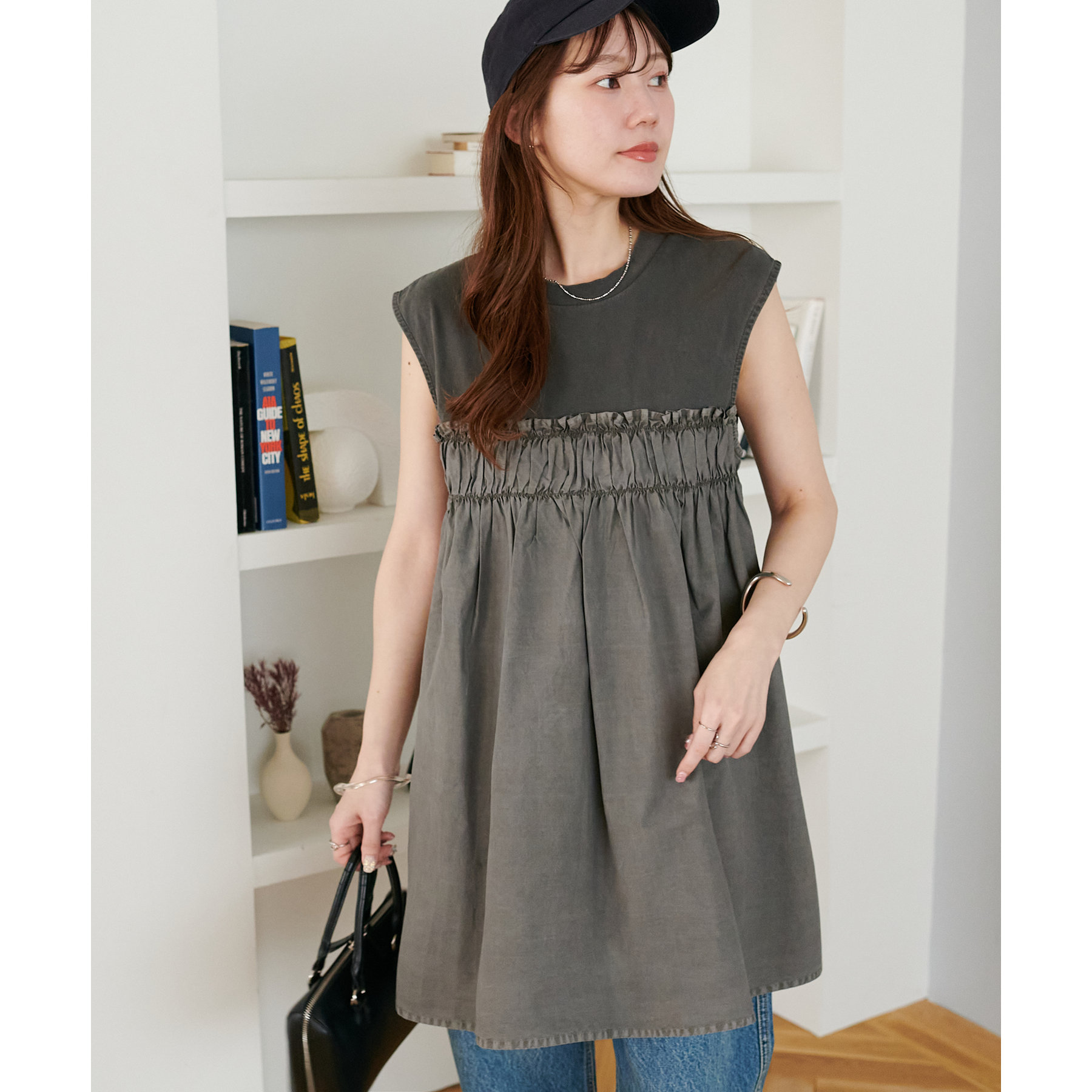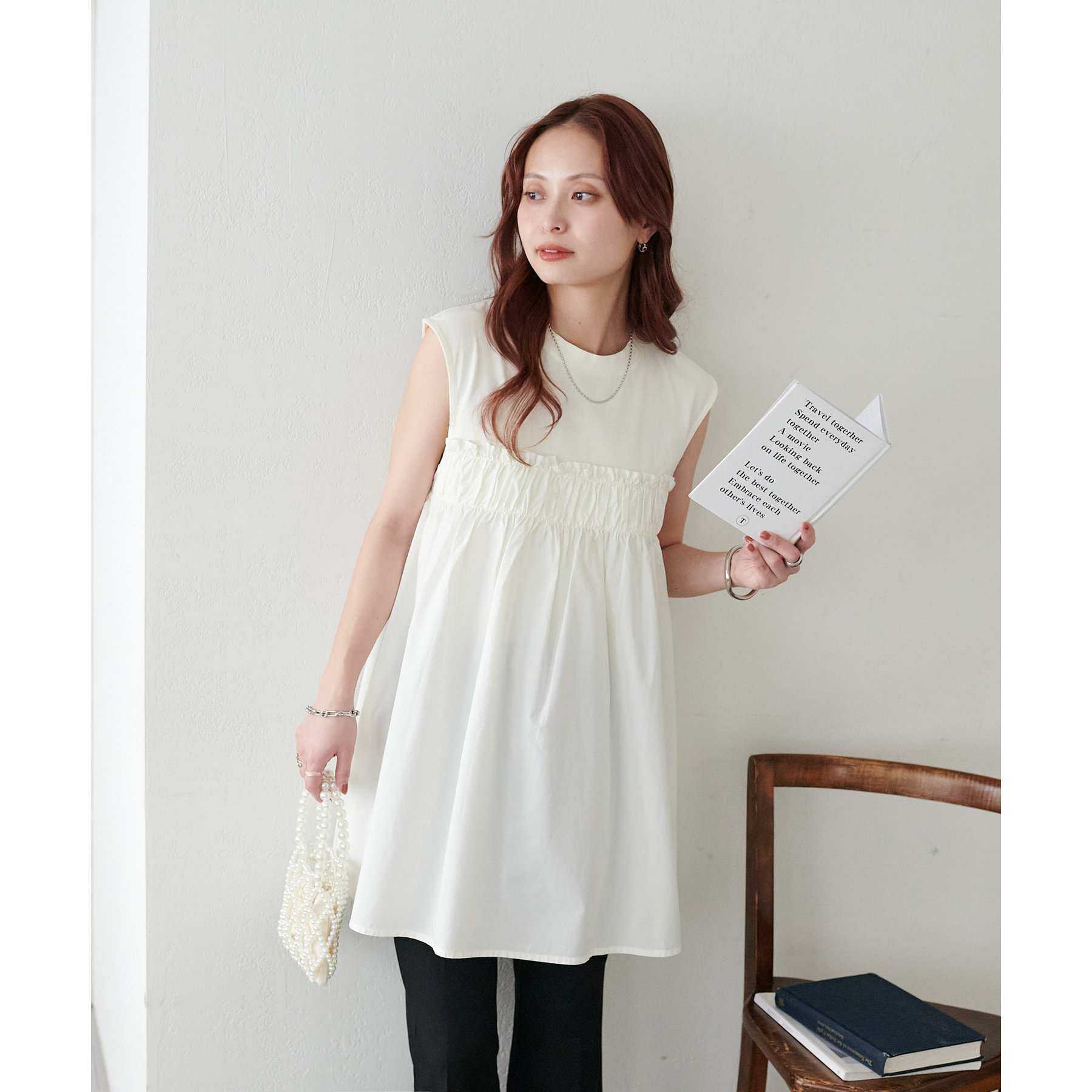 154cmスタッフ:ギャザーの位置が高めに入っていることで、目線がアップします◎
