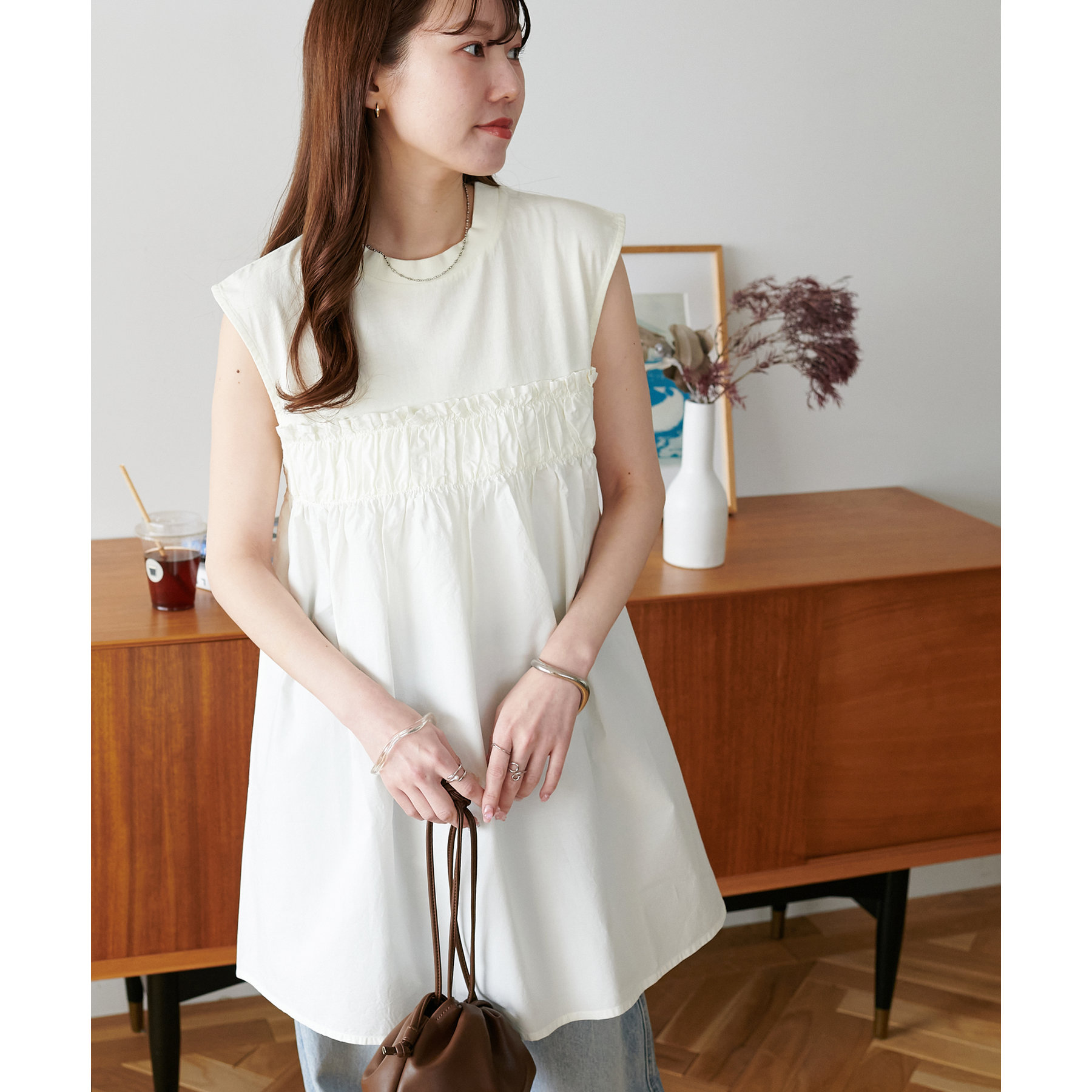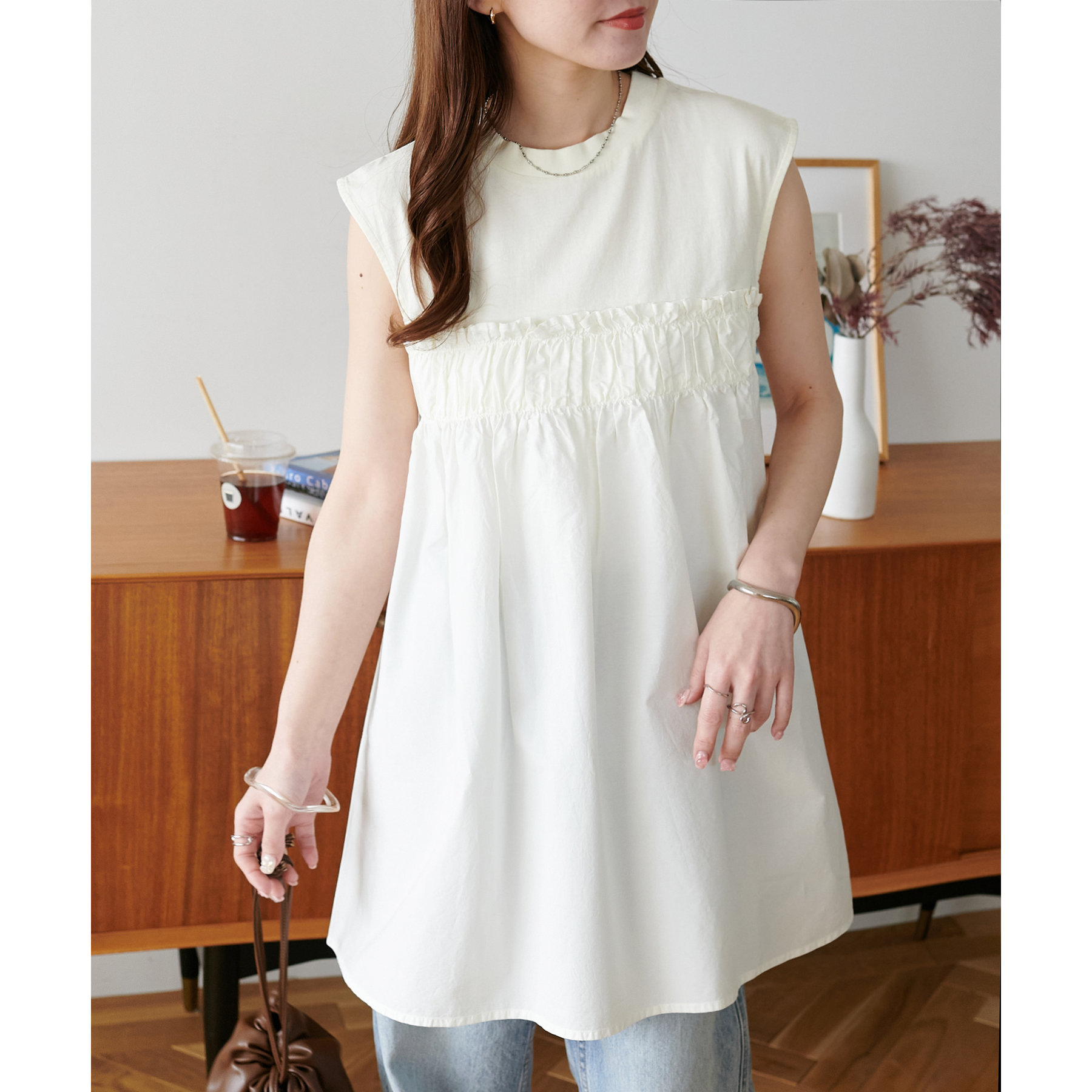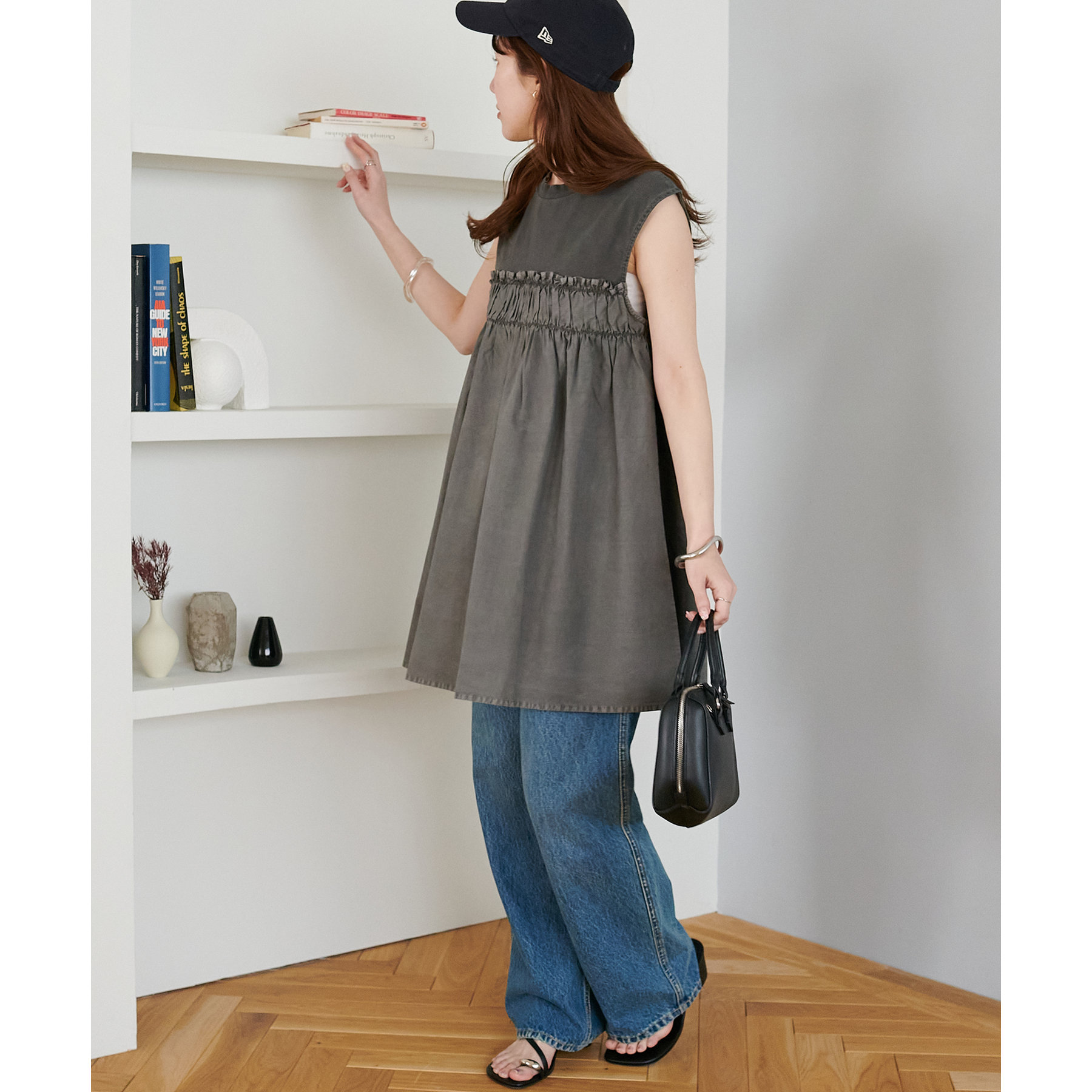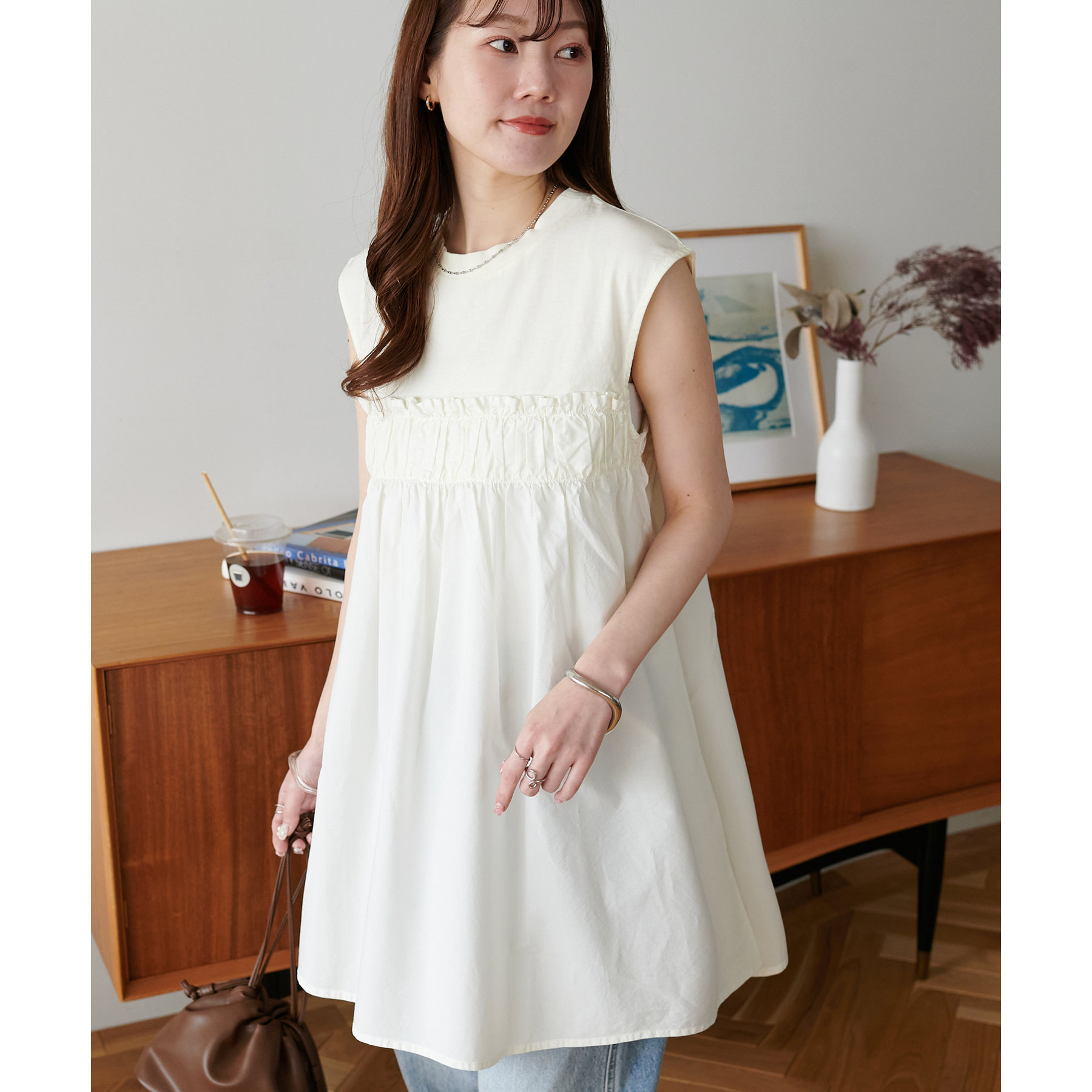 154cmスタッフ:ギャザーの位置が高めに入っていることで、目線がアップします◎