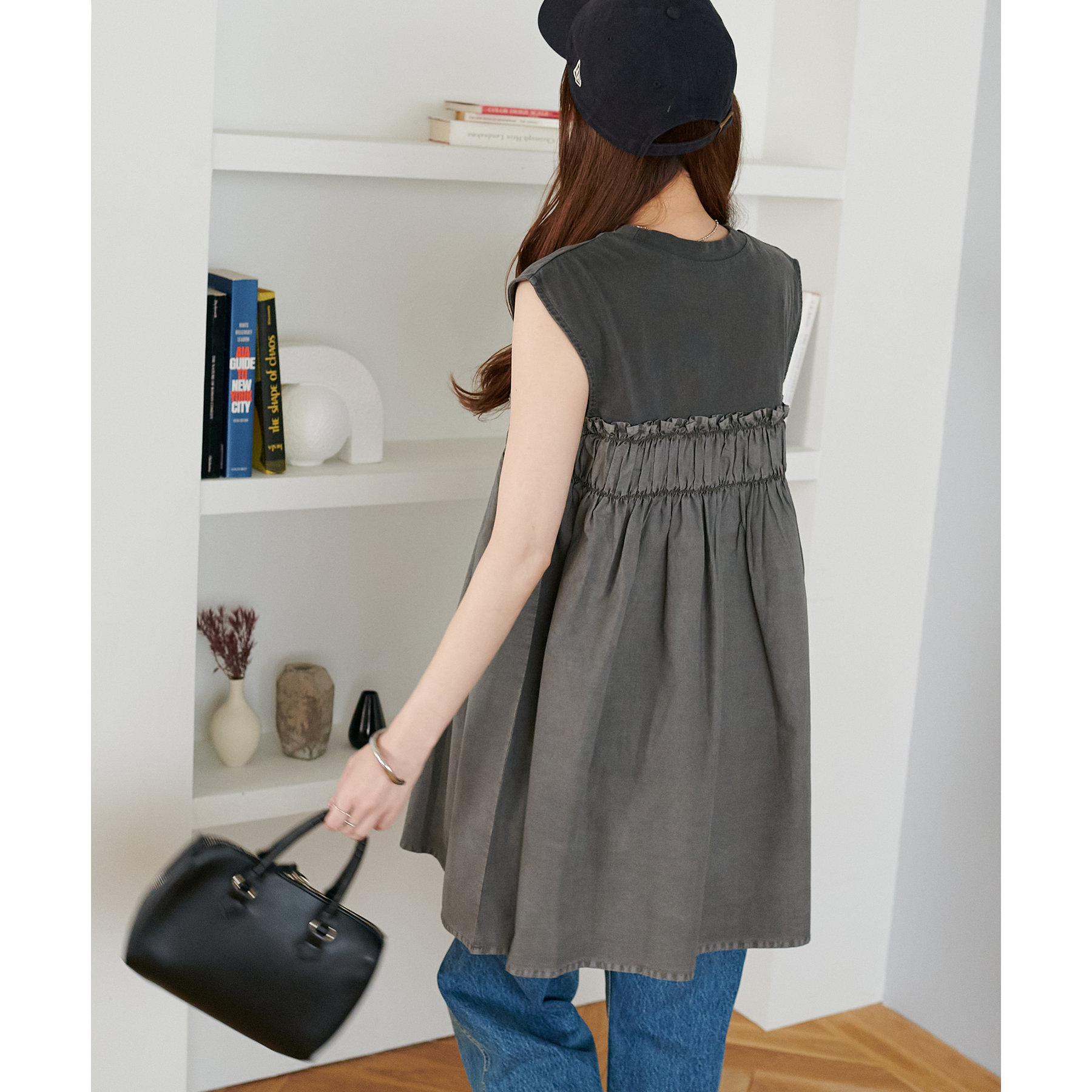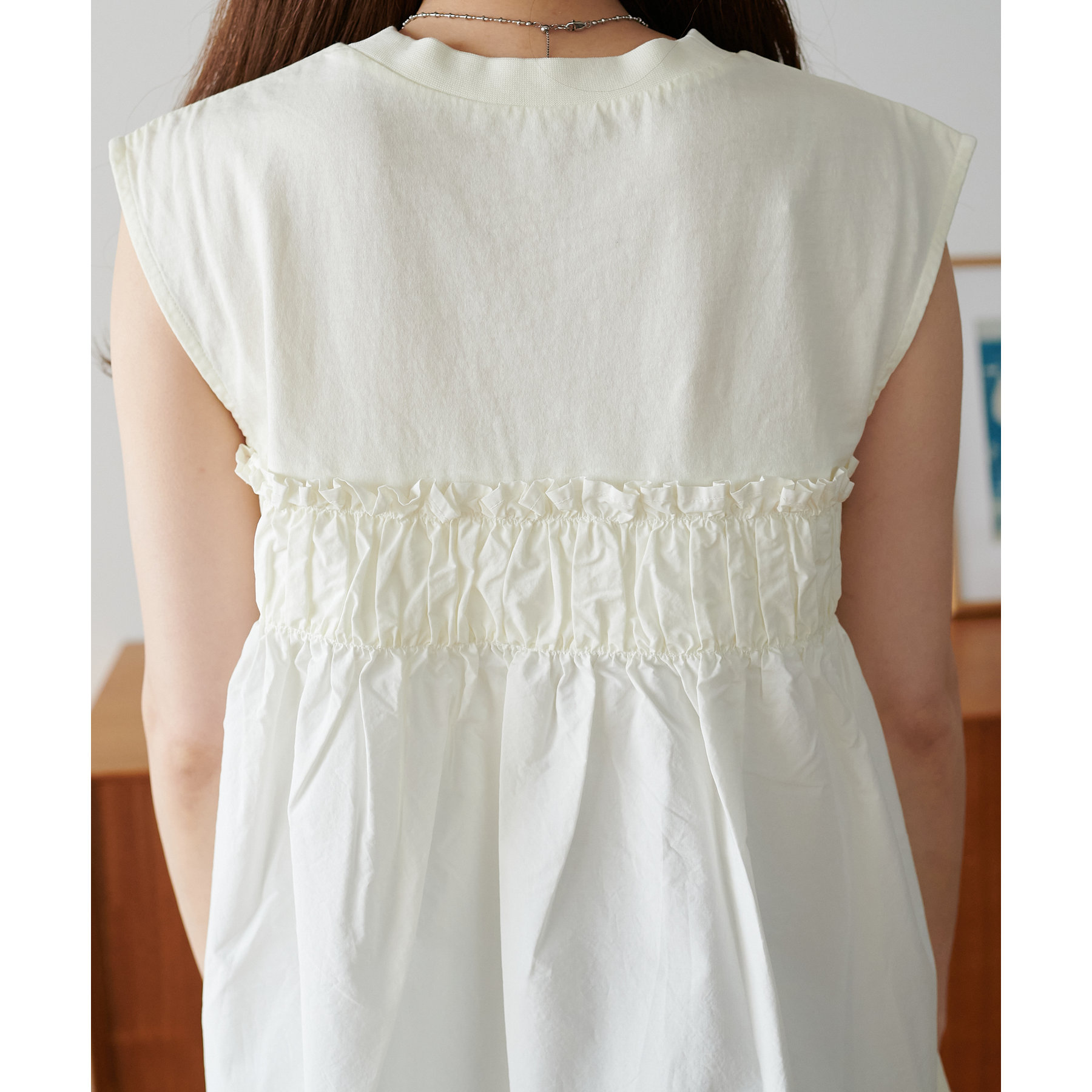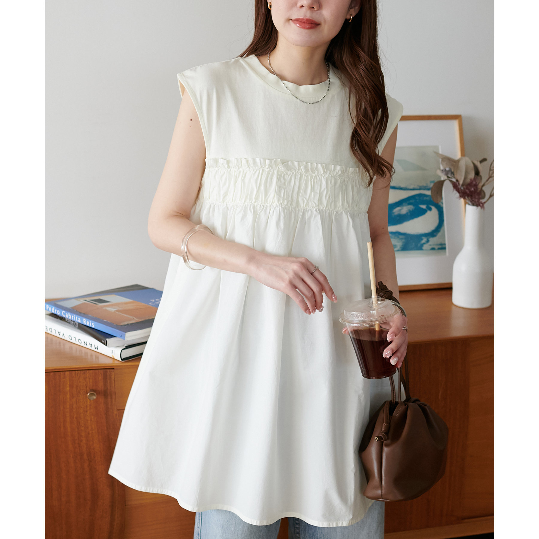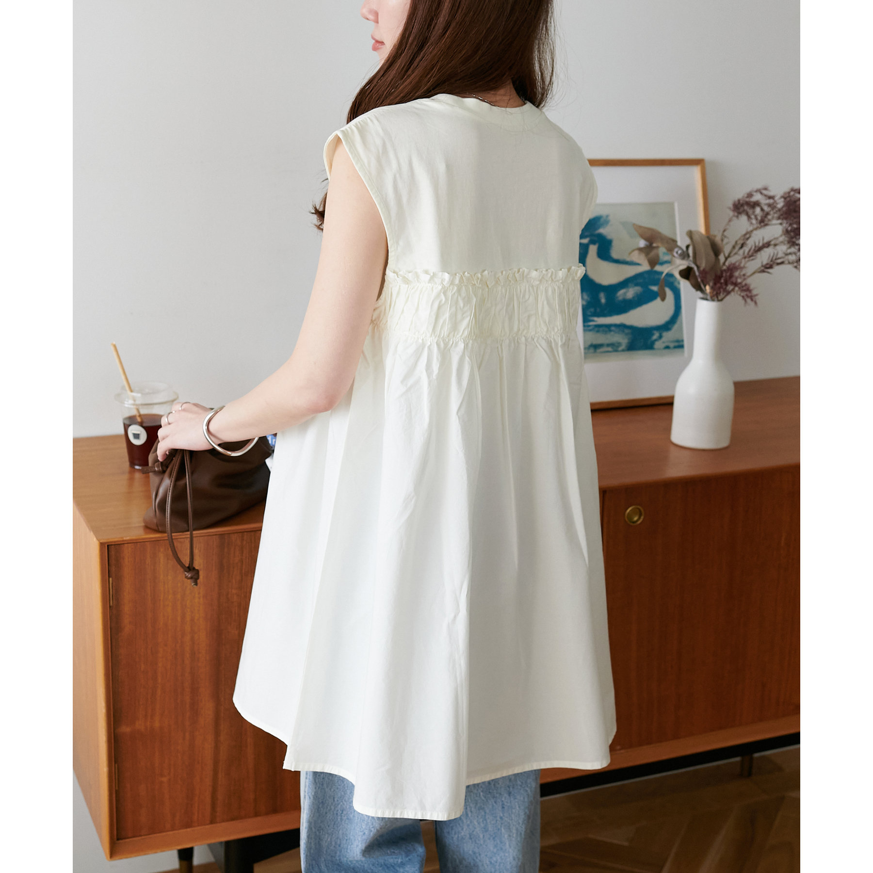 154cmスタッフ:ギャザーの位置が高めに入っていることで、目線がアップします◎