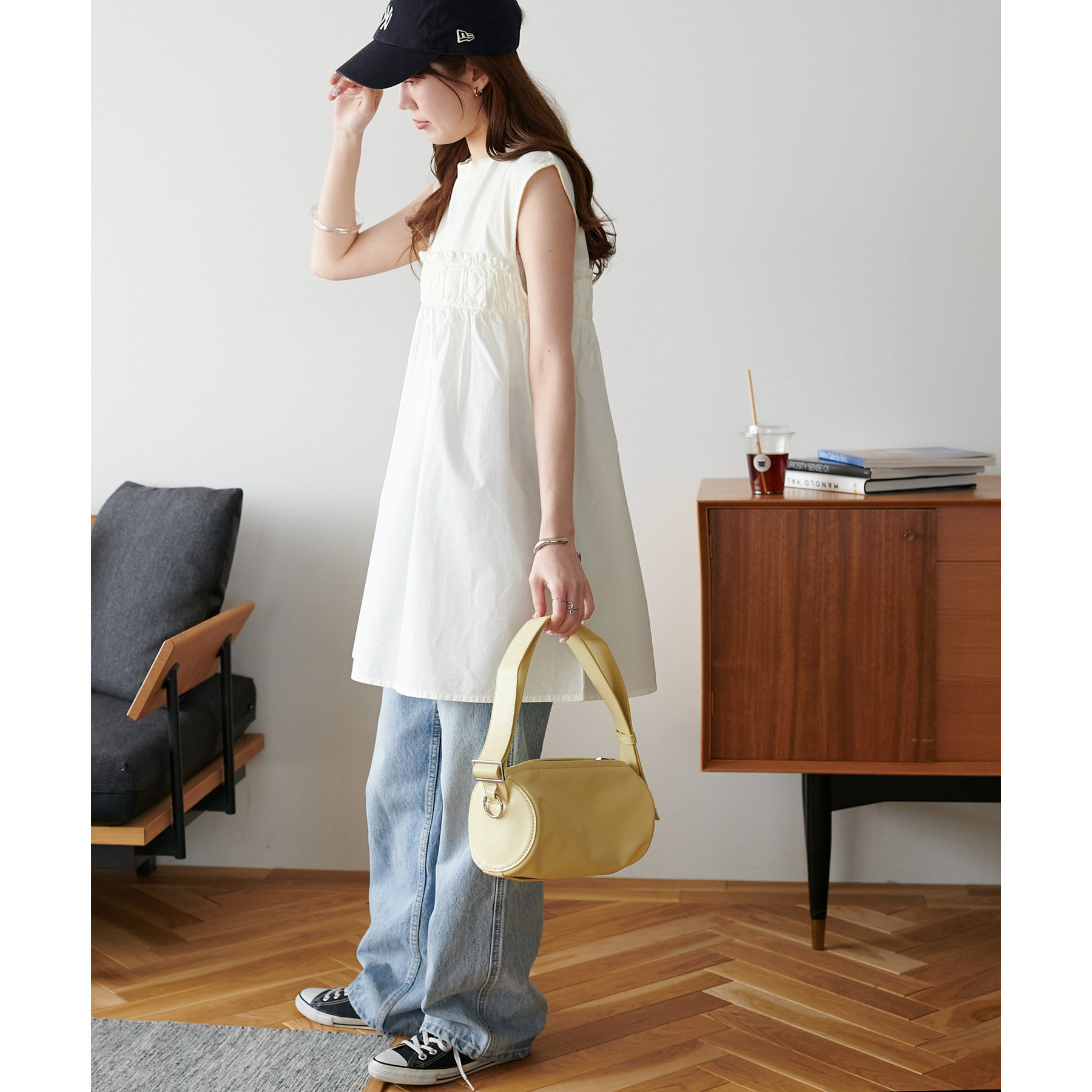 異素材切替デザインが、シンプルながらも個性を際立たせ、華やかな印象に仕上げてくれるアイテムです。