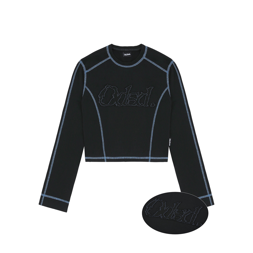 ODSD Cut-off Cover Stitch Semi-Crop T-shirt - black