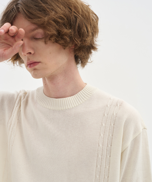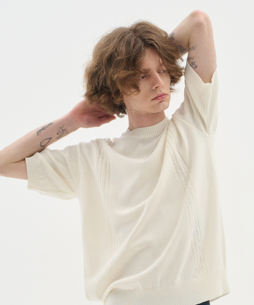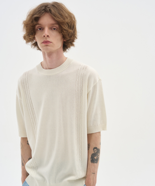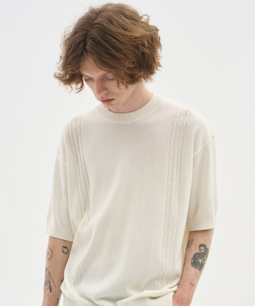 Soft Cable Round Short-Sleeved Knit_Ivory