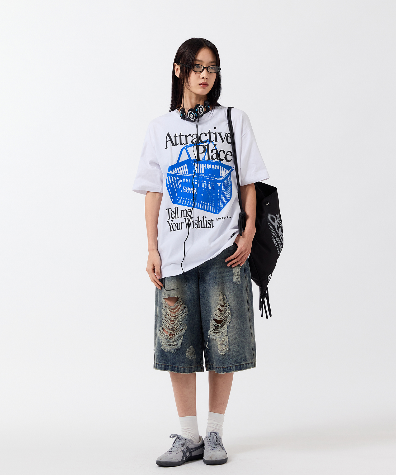 Basket Pixel Graphic Overfit T-shirt - WHITE