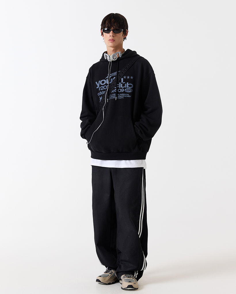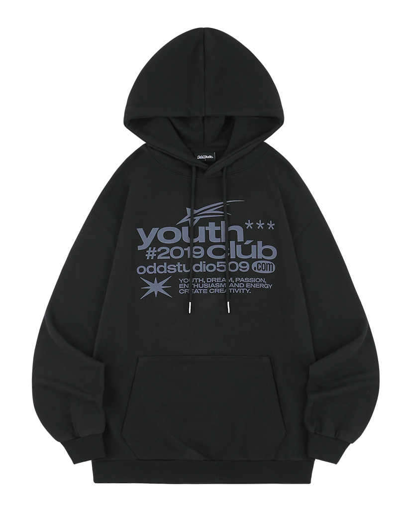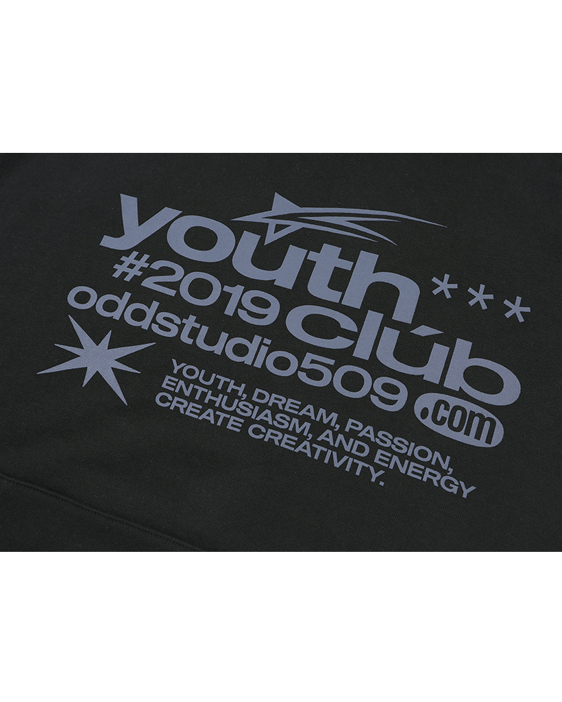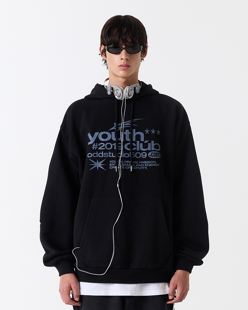 Youth Club Typo Graphic Overfit Hood - BLACK