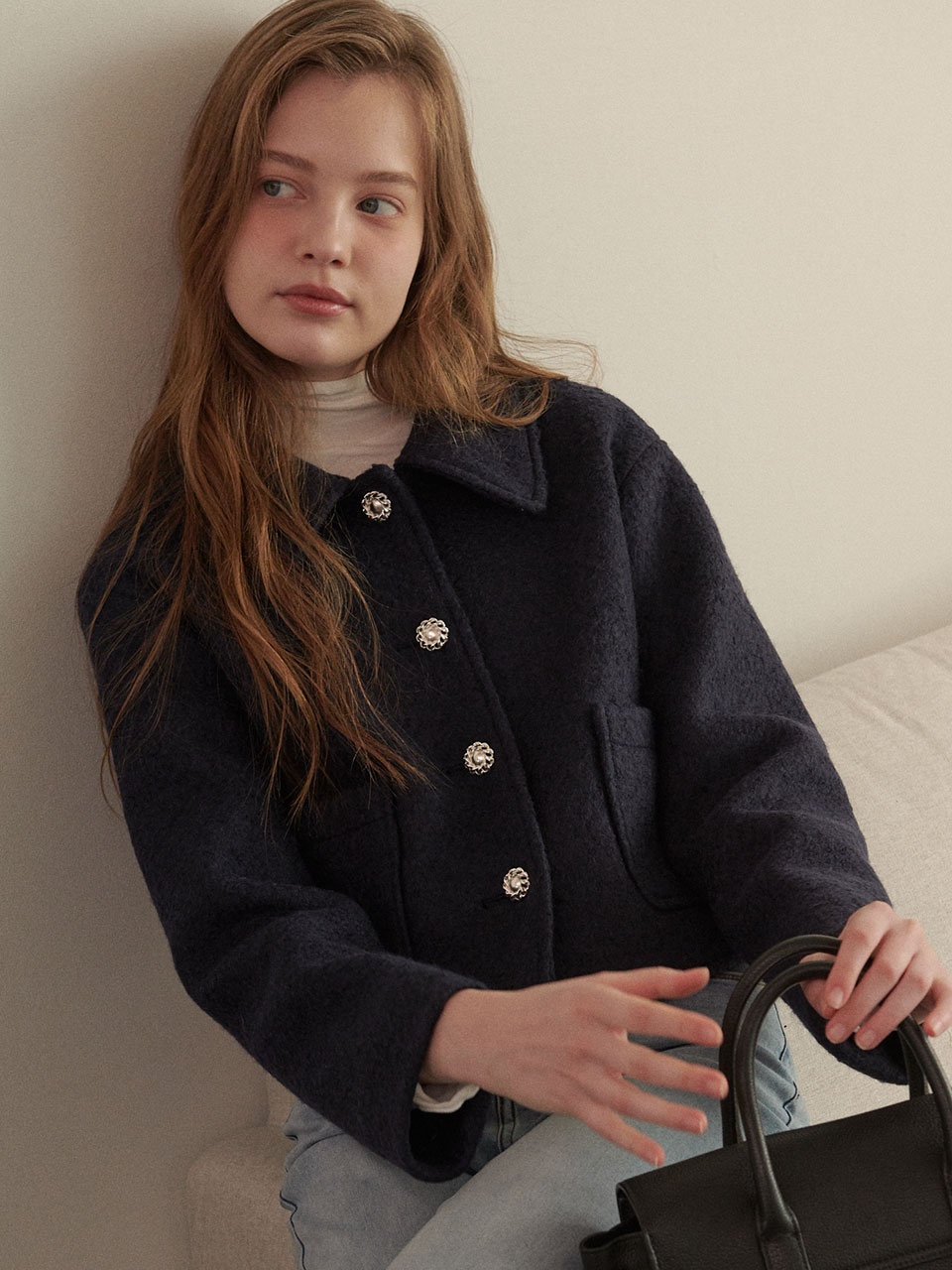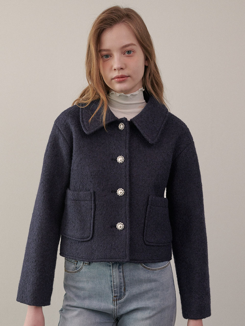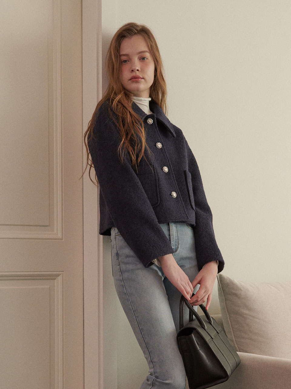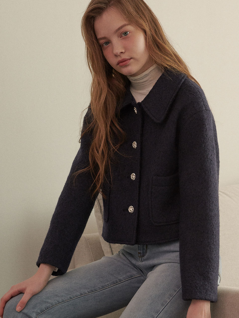 Cozy Wool Crop Jacket - NAVY