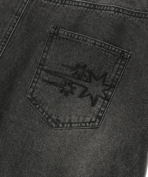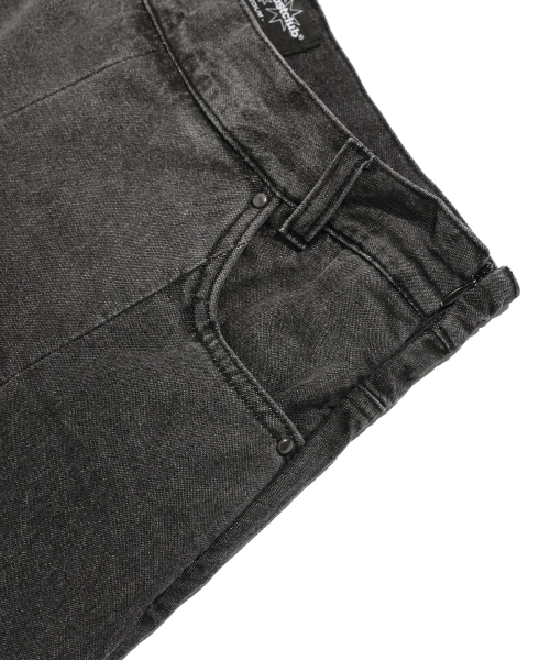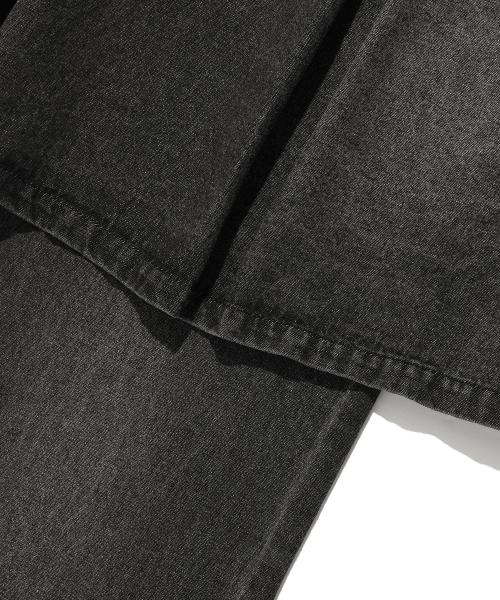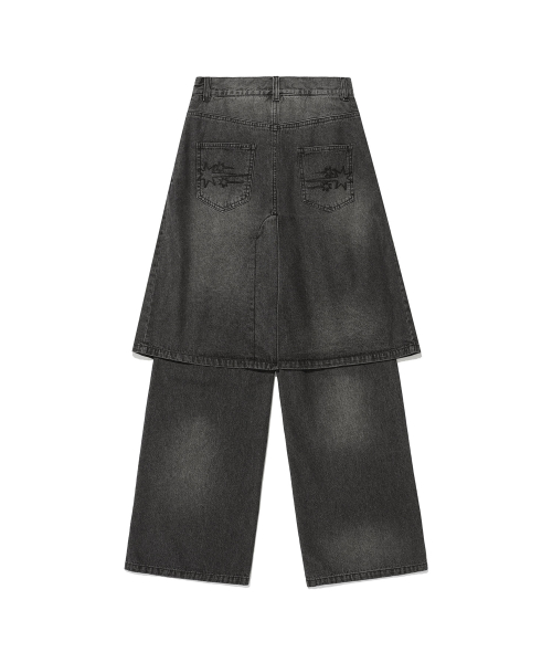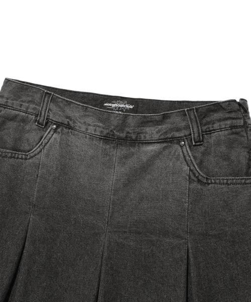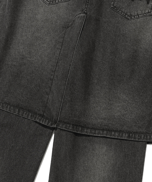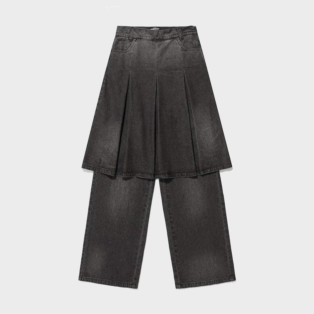 DENIM PLEATS LAYERED SKIRT PANTS[BLACK]