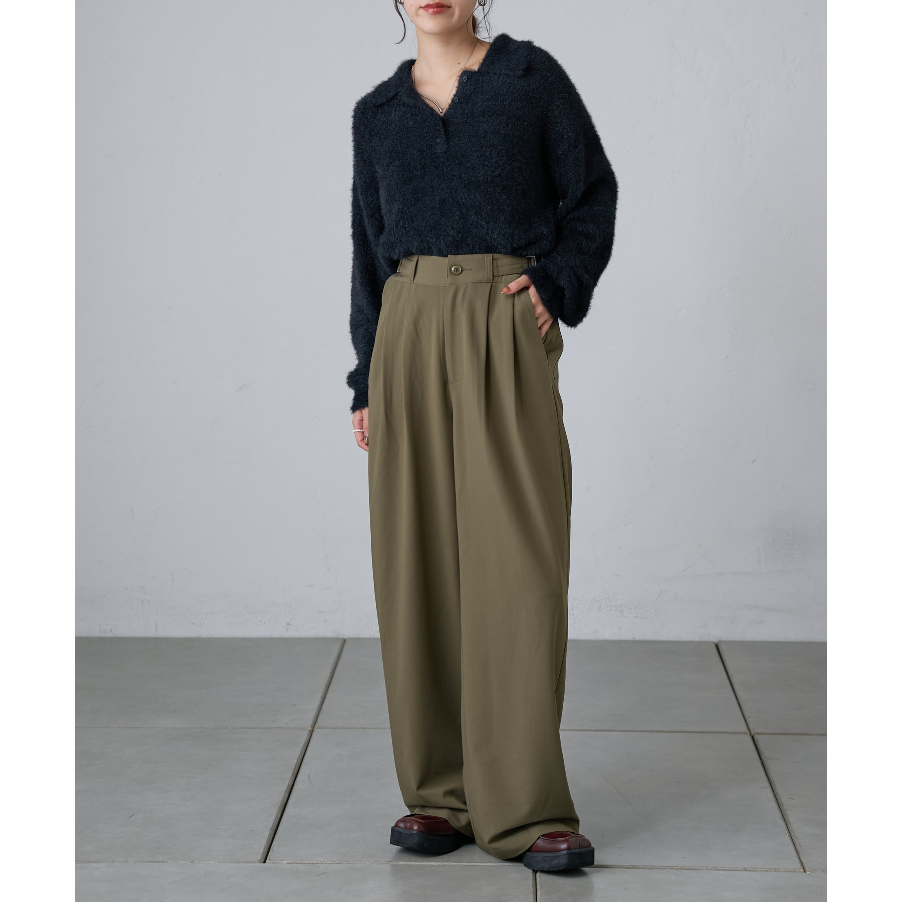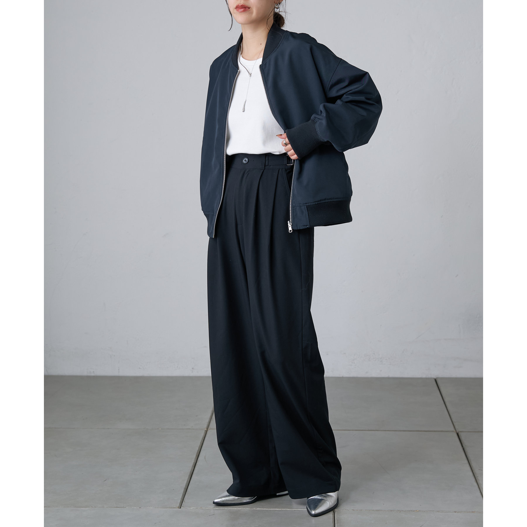 ・ややルーズな着丈ですらっと見えするストレートシルエット
