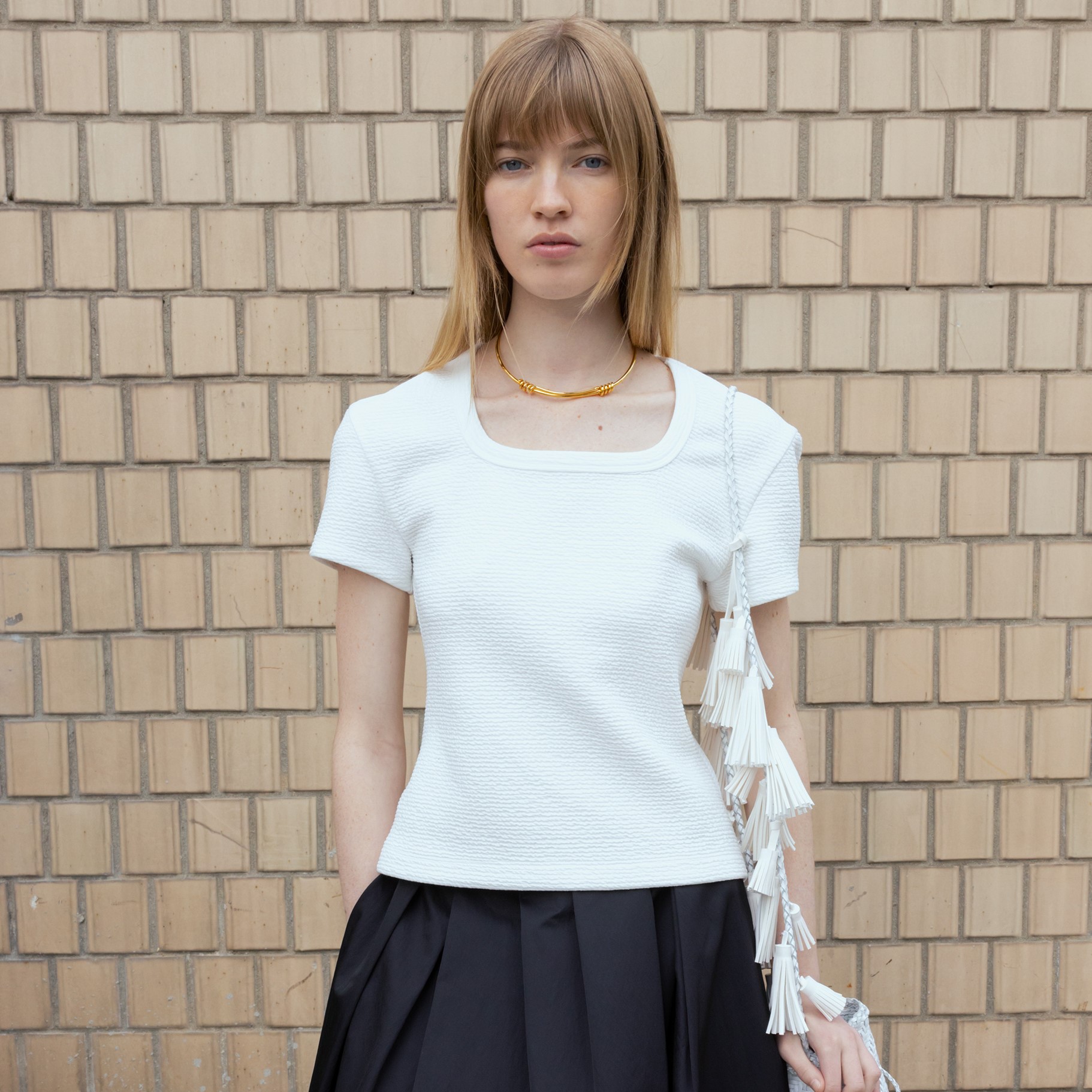 Embossed Square-neck Top