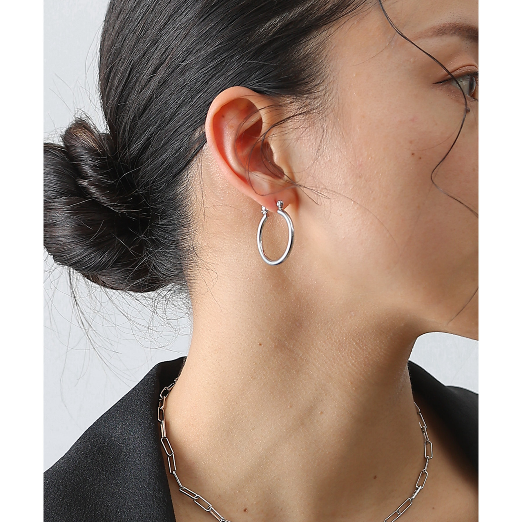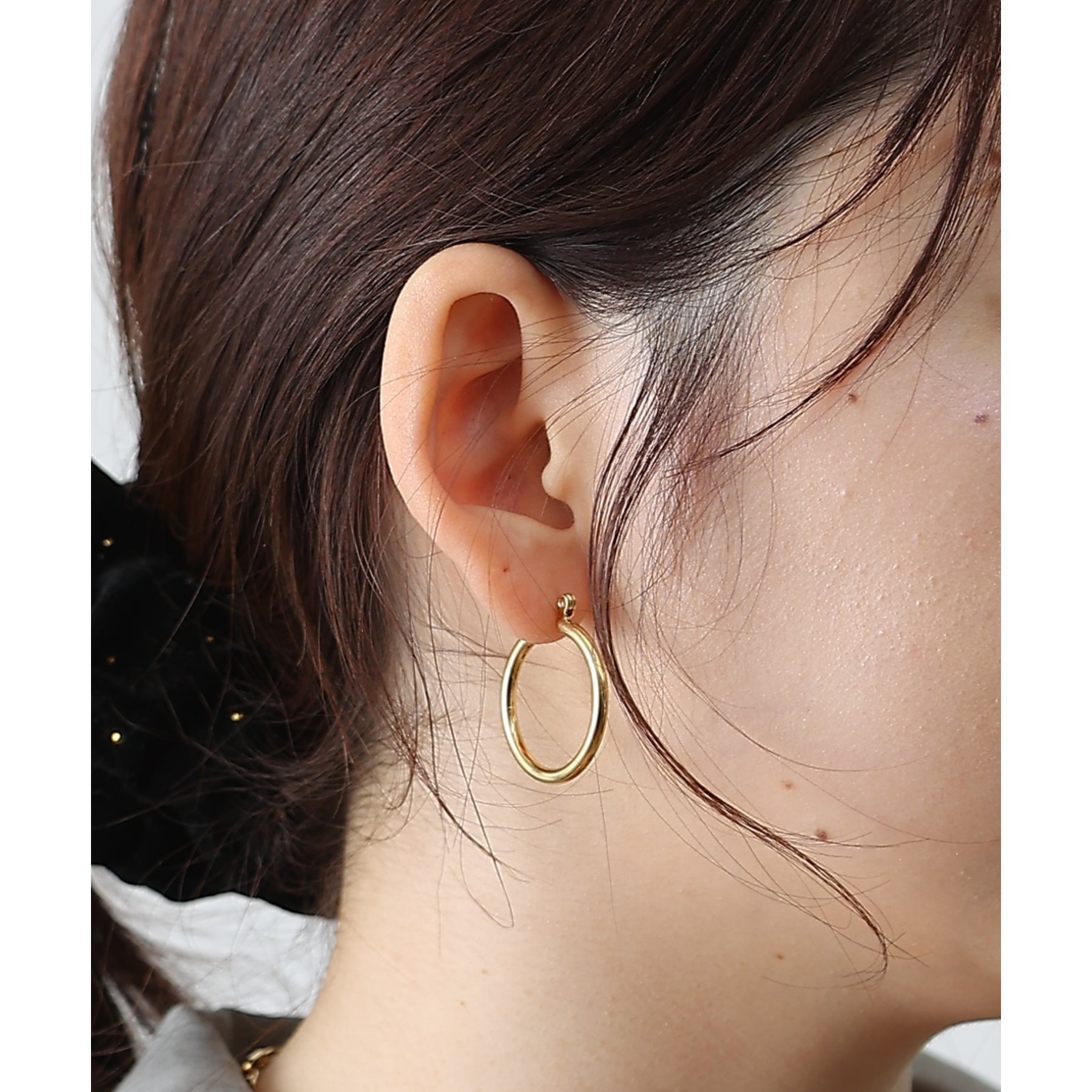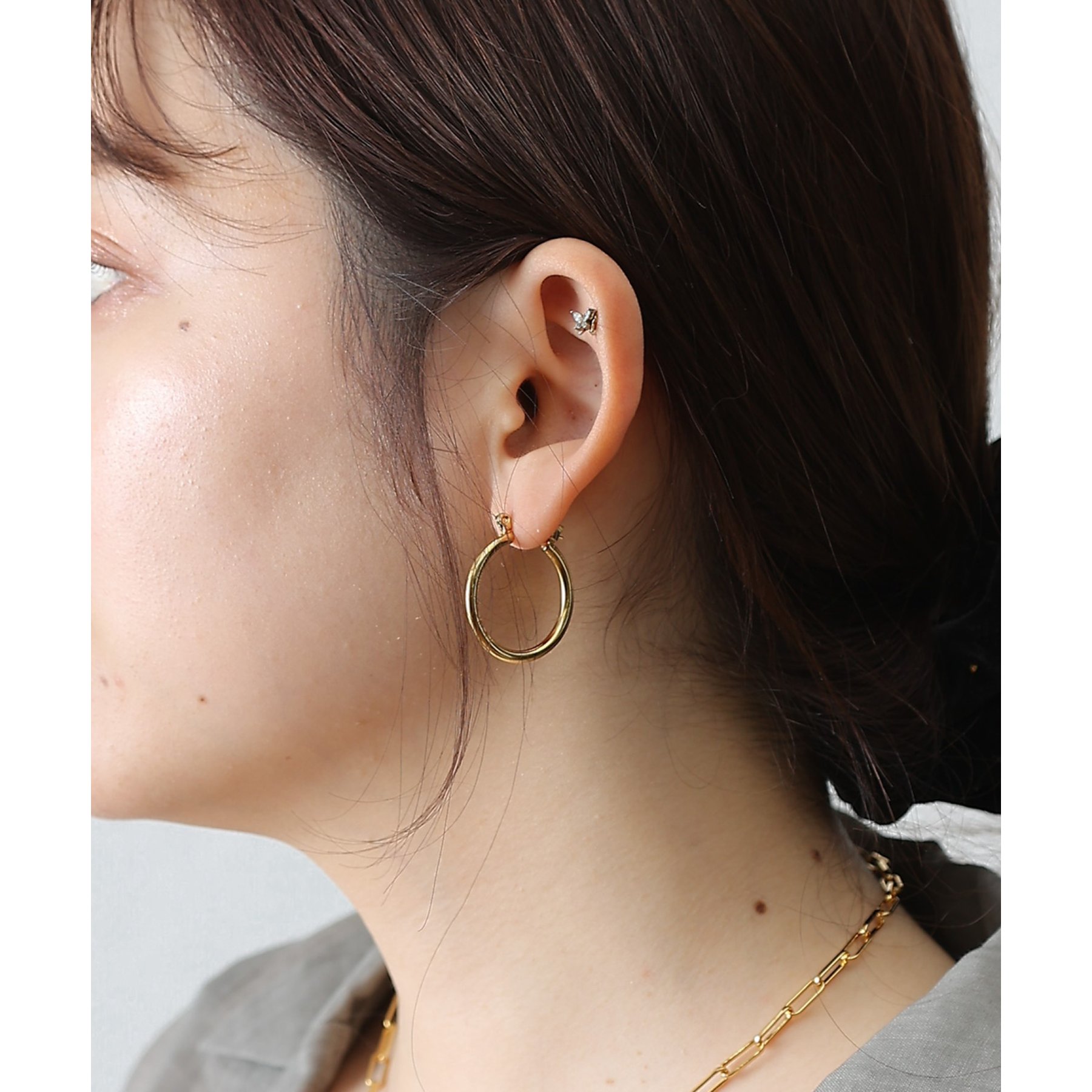 ちょうど良いサイズで使いやすく、飽きのこないシンプルさが魅力のフープピアス。