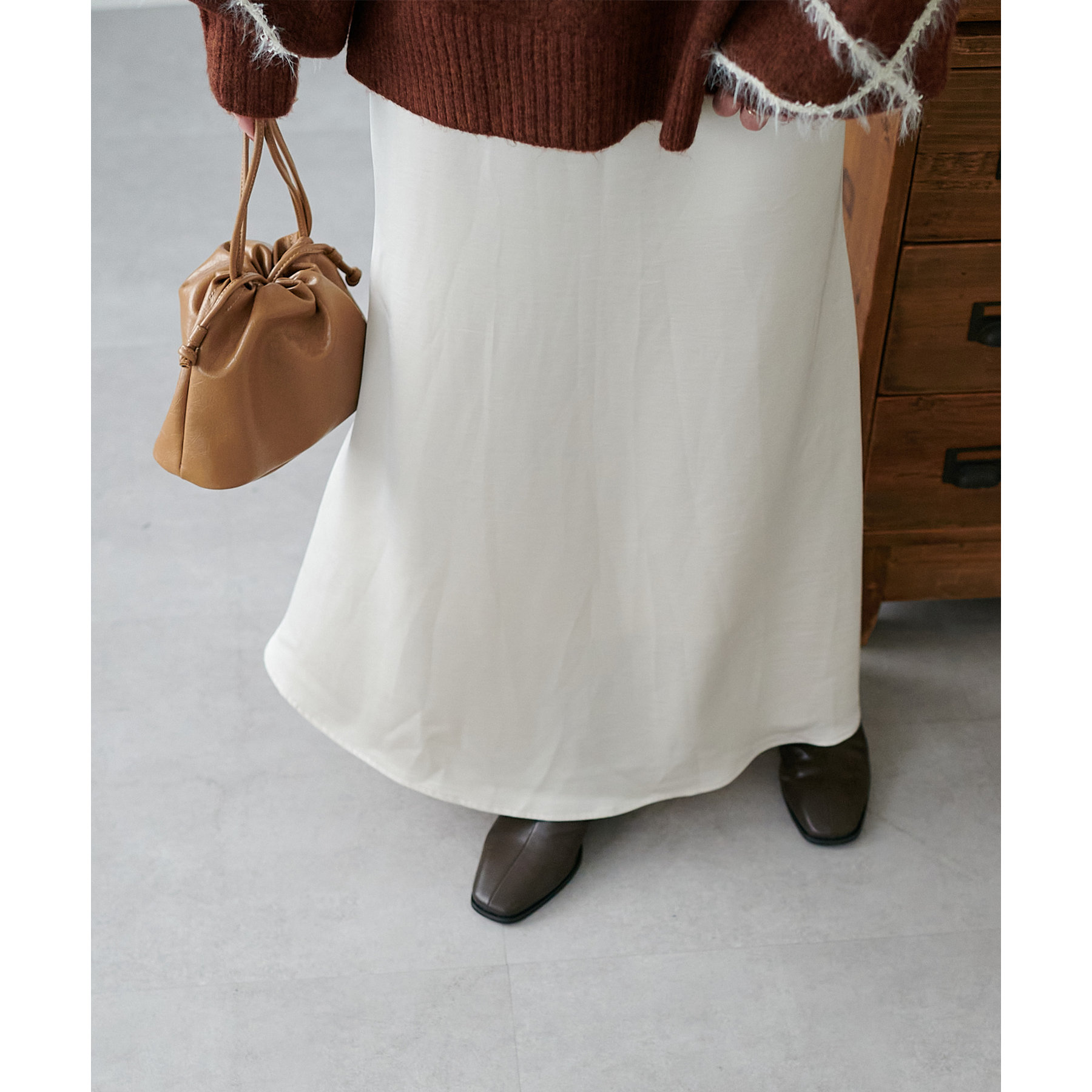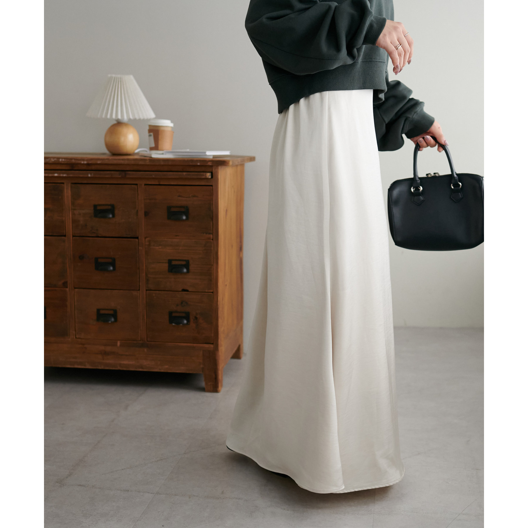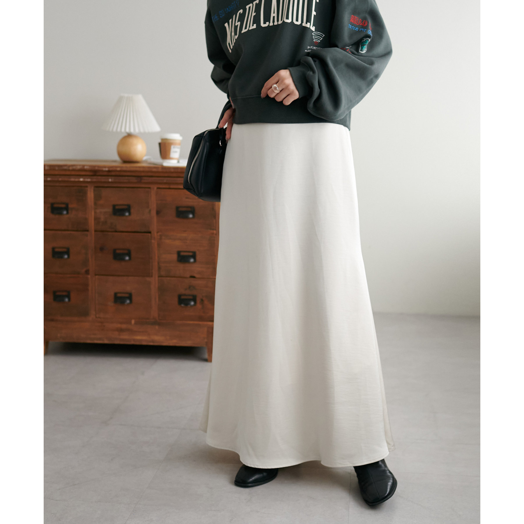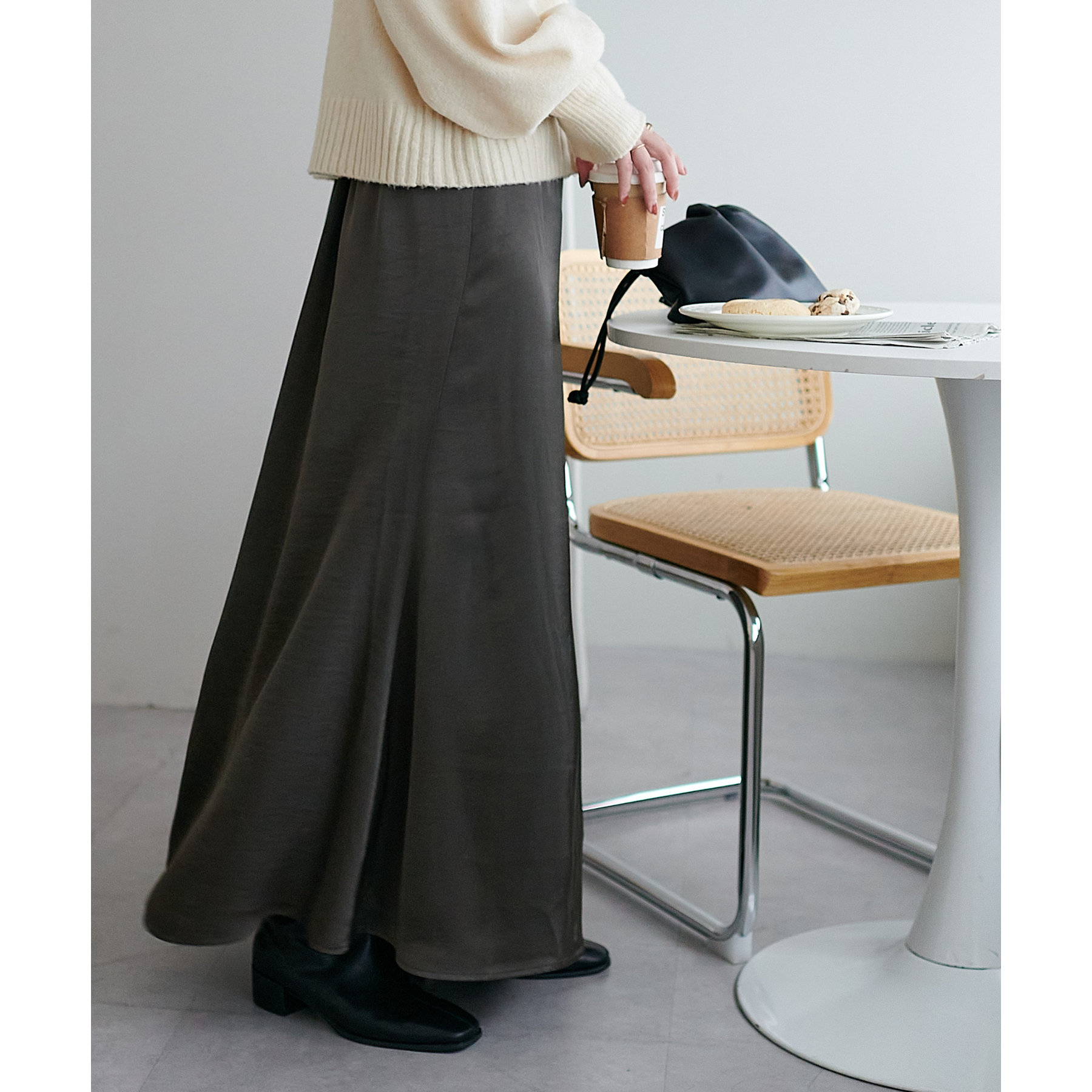 すとんと落ち感があり、動くたびに揺れるフレアなデザインは大人な印象をコーデにプラスします。