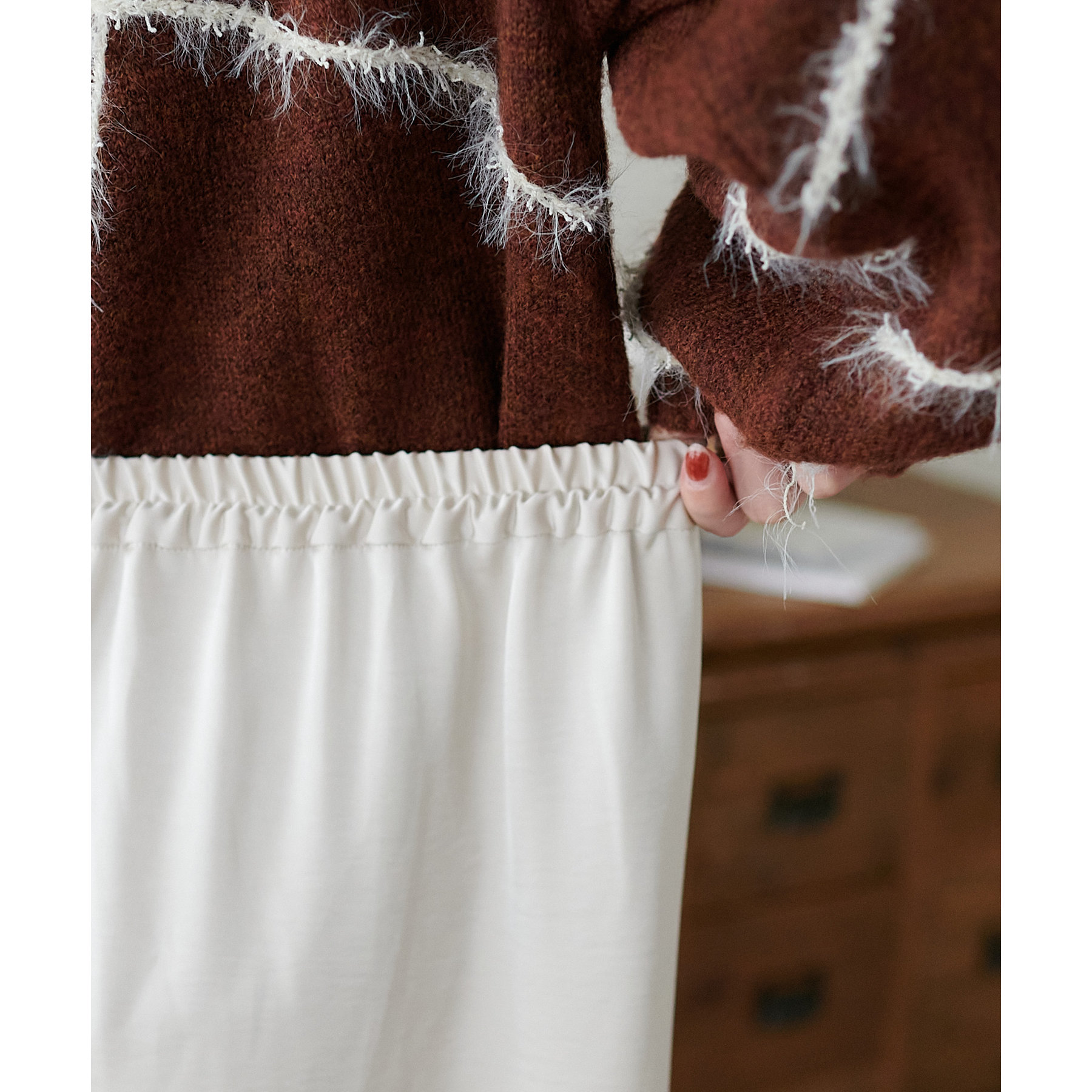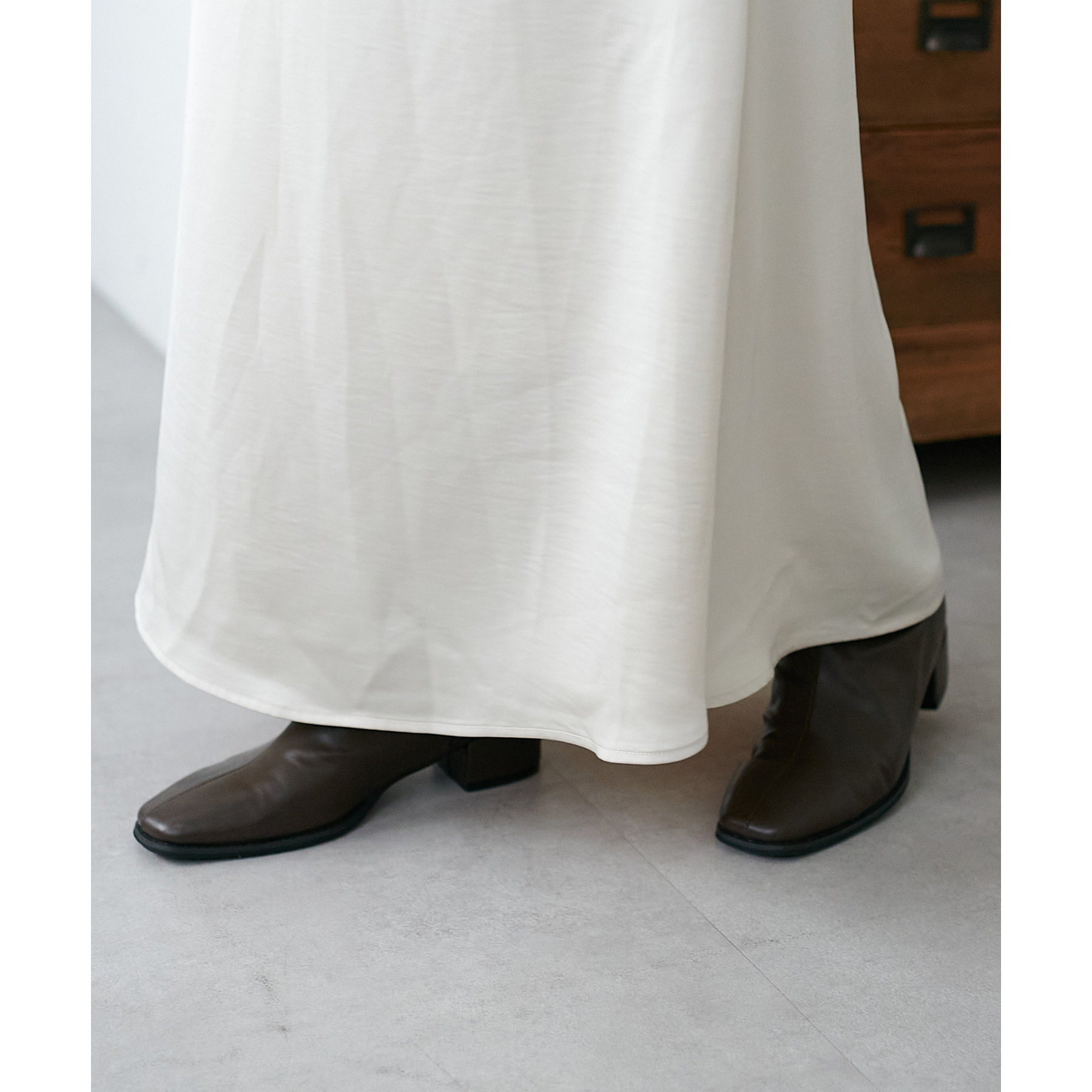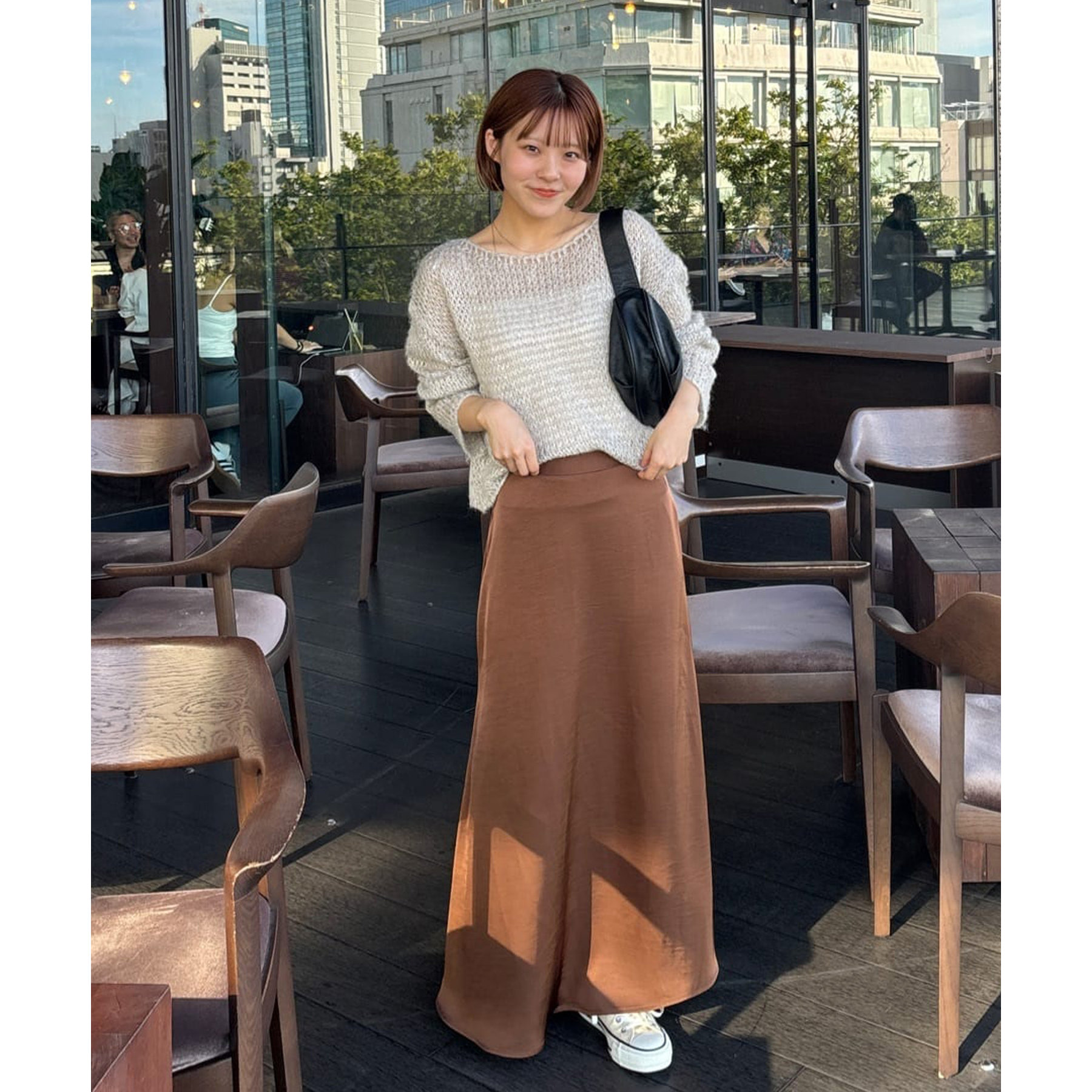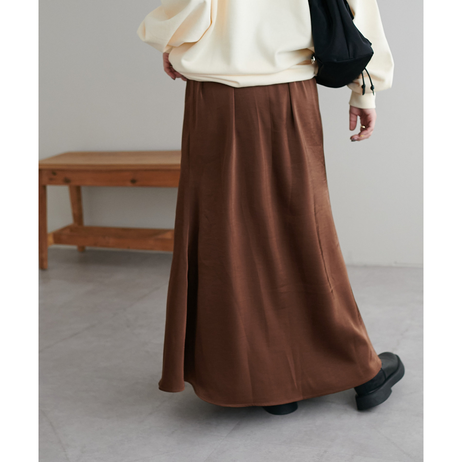 すとんと落ち感があり、動くたびに揺れるフレアなデザインは大人な印象をコーデにプラスします。