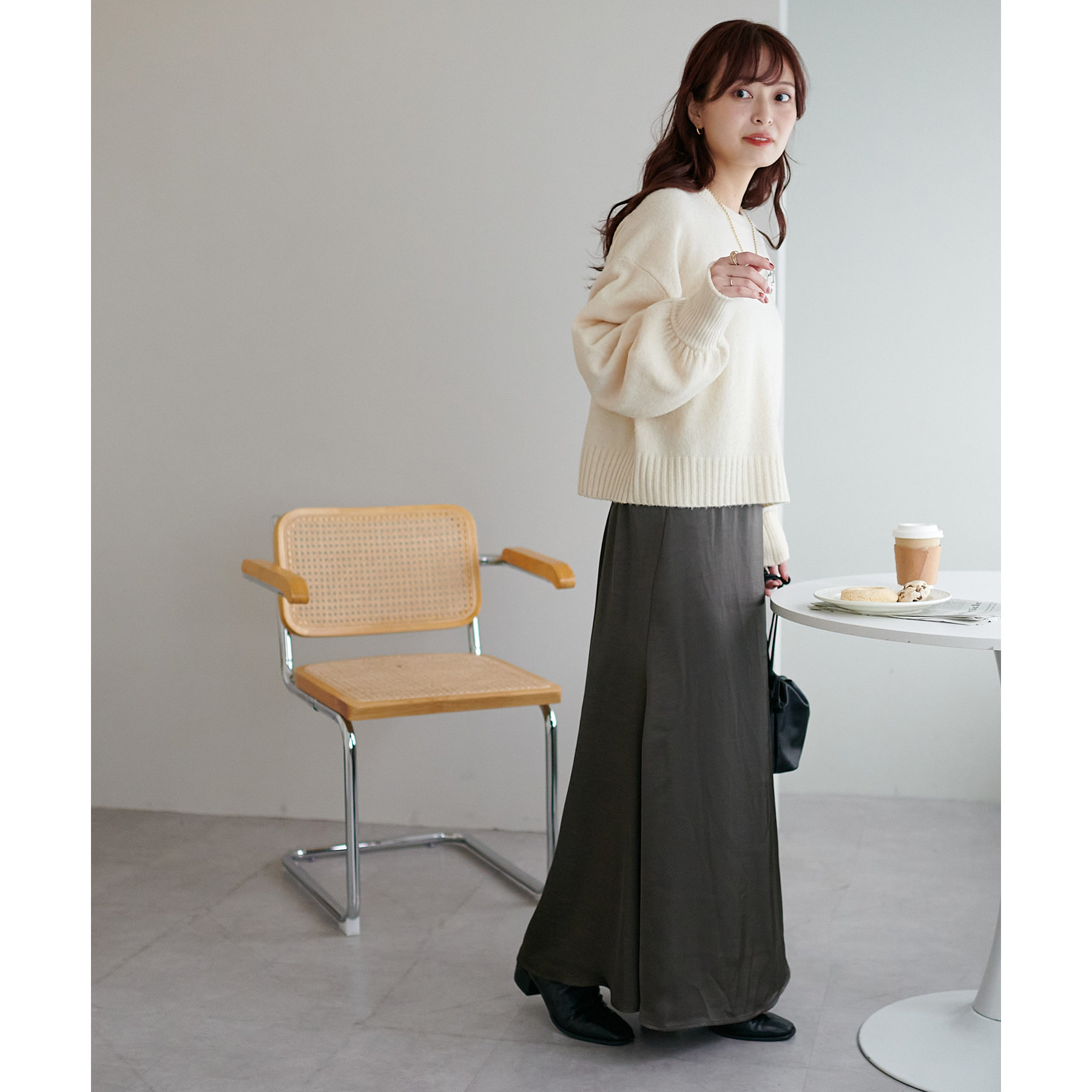 ボリューム感のあるニットやスウェットと合わせた大人カジュアルコーデ