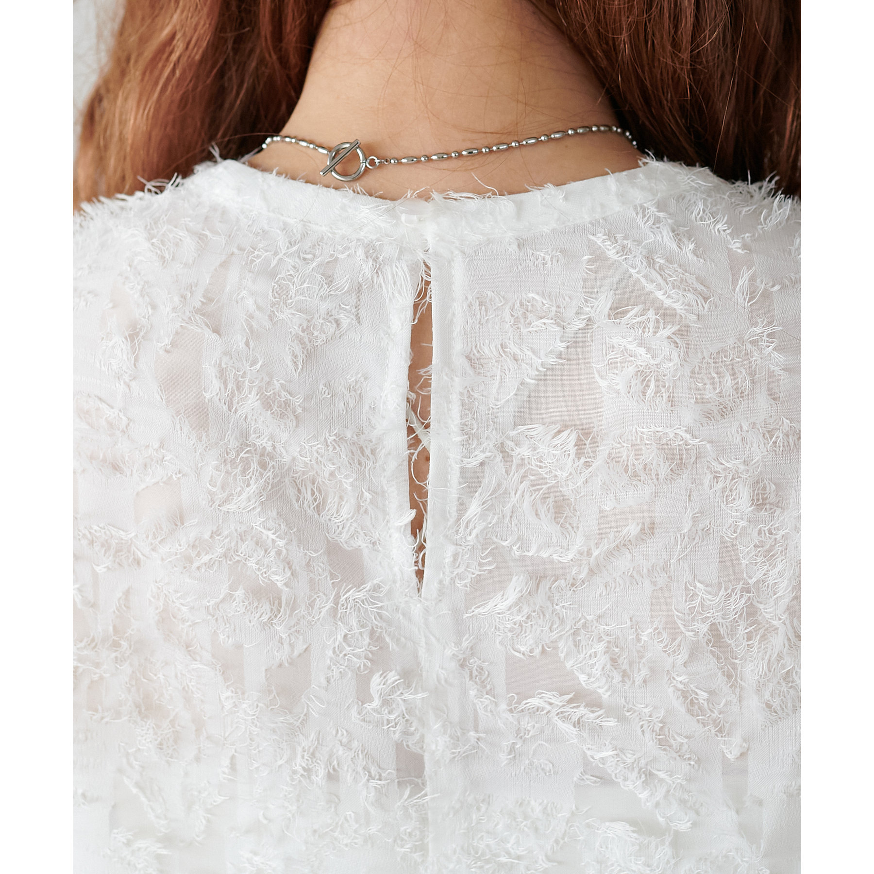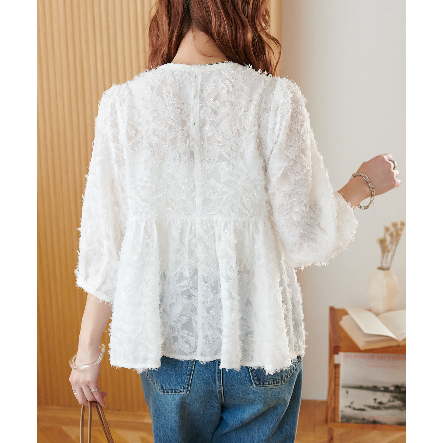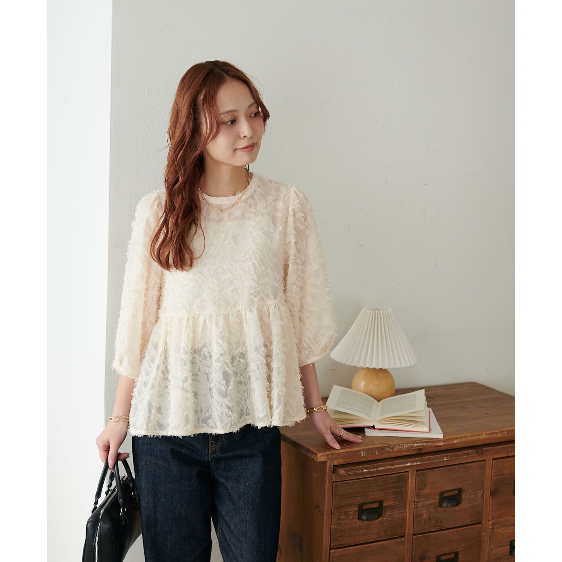 夏の装いに女性らしい抜け感をプラスしたフリンジブラウス