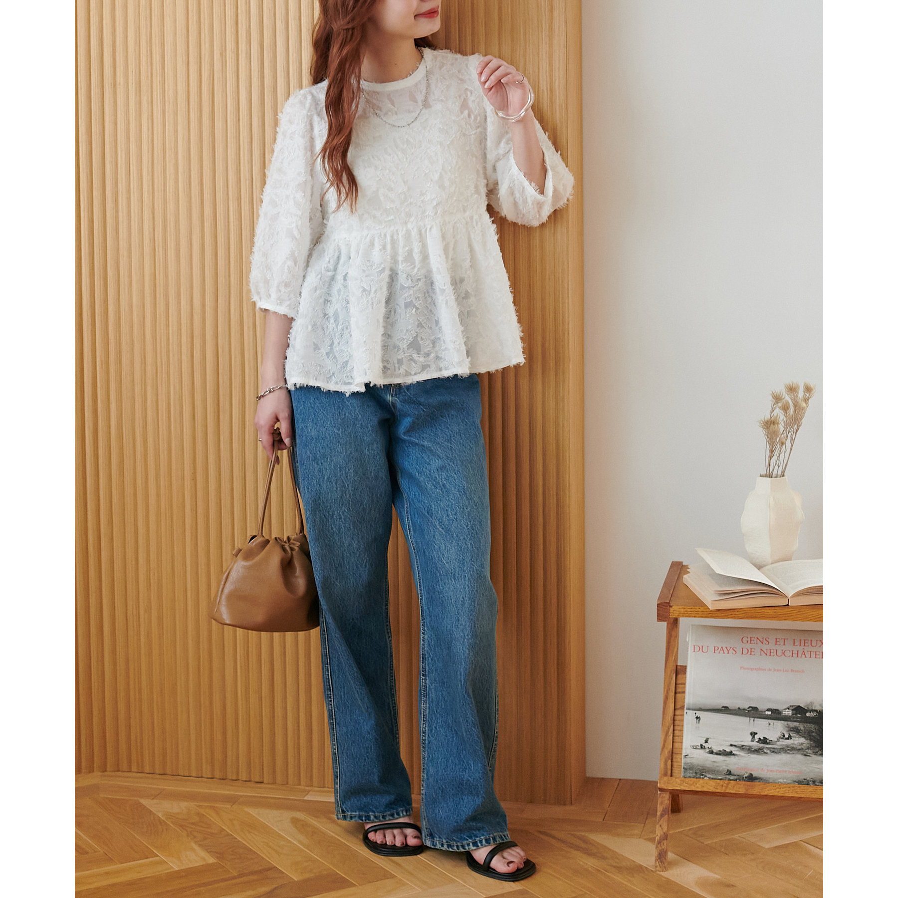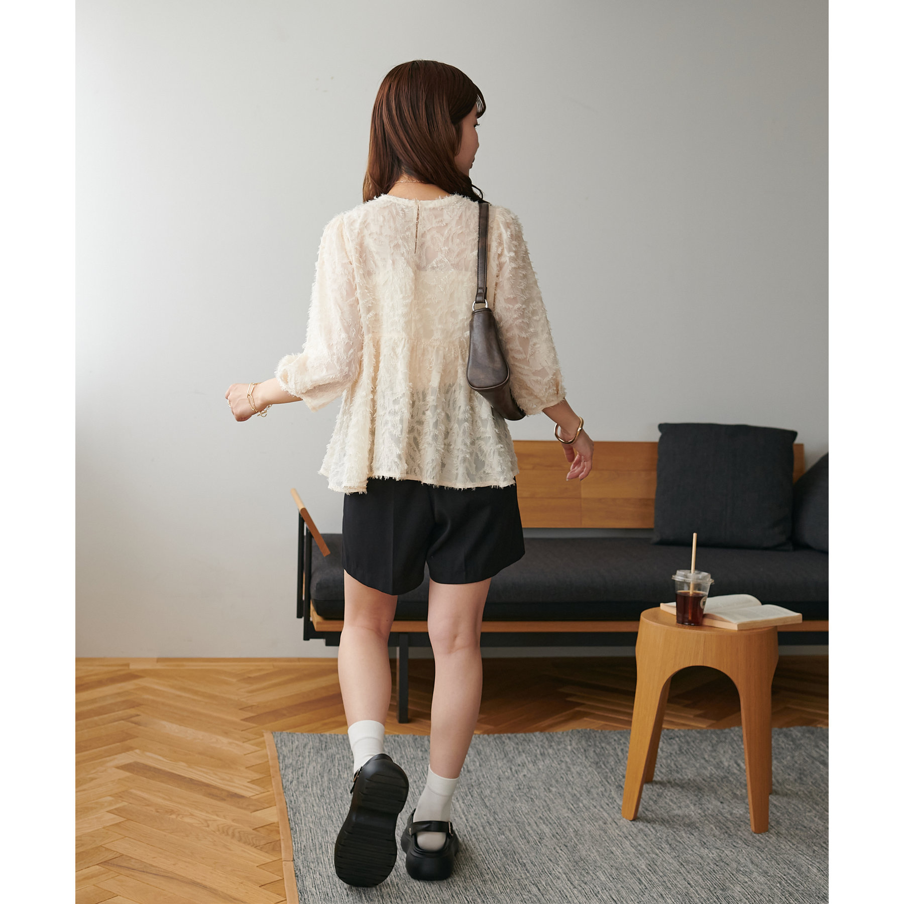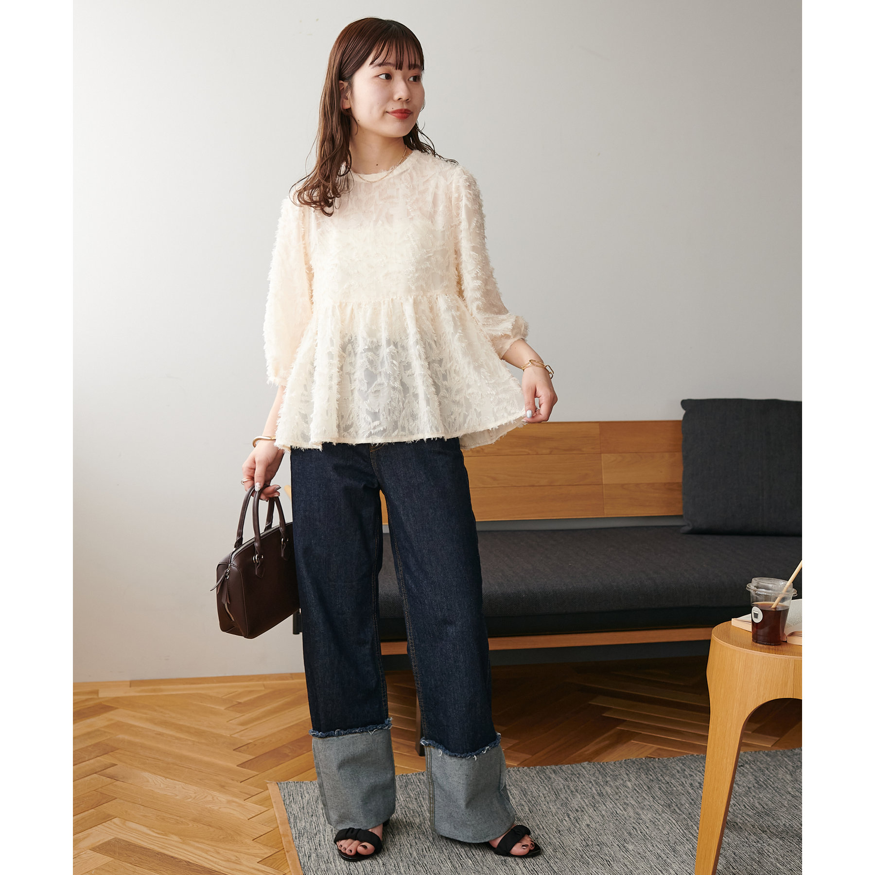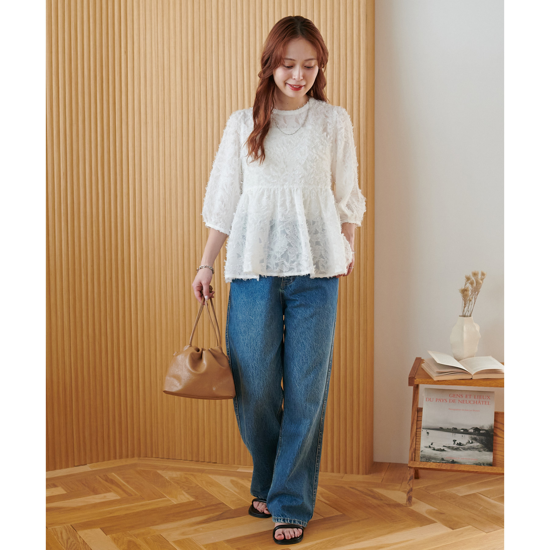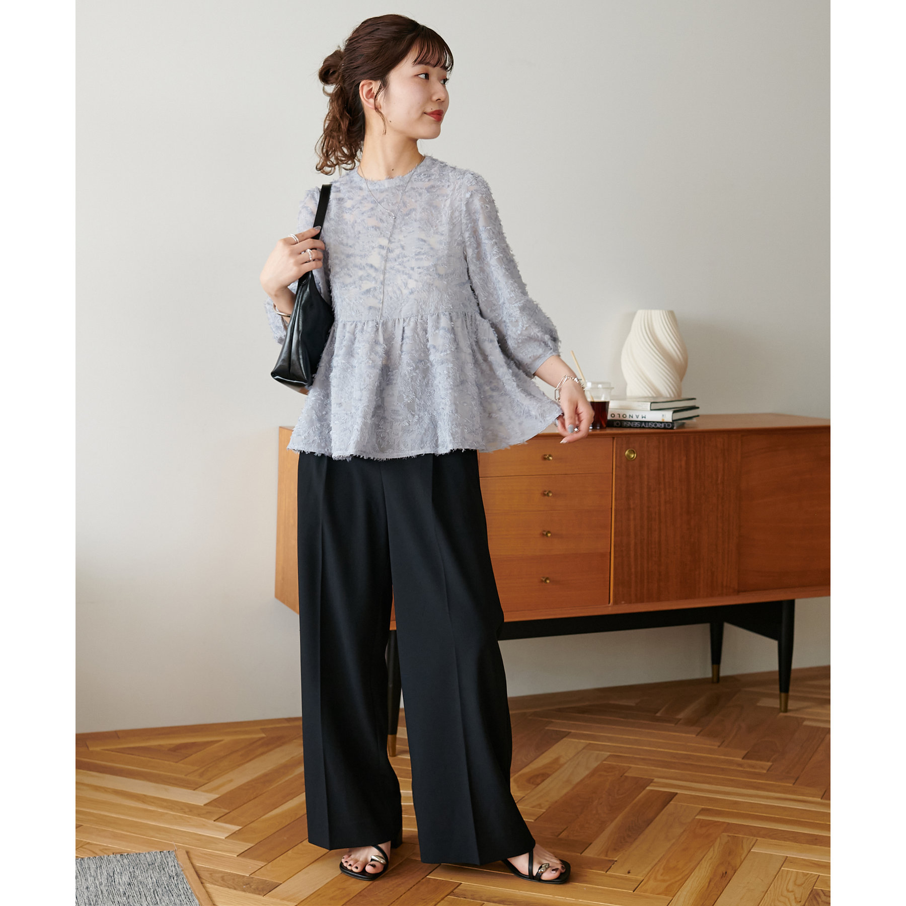 162mスタッフ(Mサイズ着用): ペプラムデザインなので、気になるお腹周りをさりげなくカバーしてくれます!カジュアルなデニムパンツはもちろん、きれいめなワイドパンツや、トレンドのハーフパンツとも合わせて着たいです♪