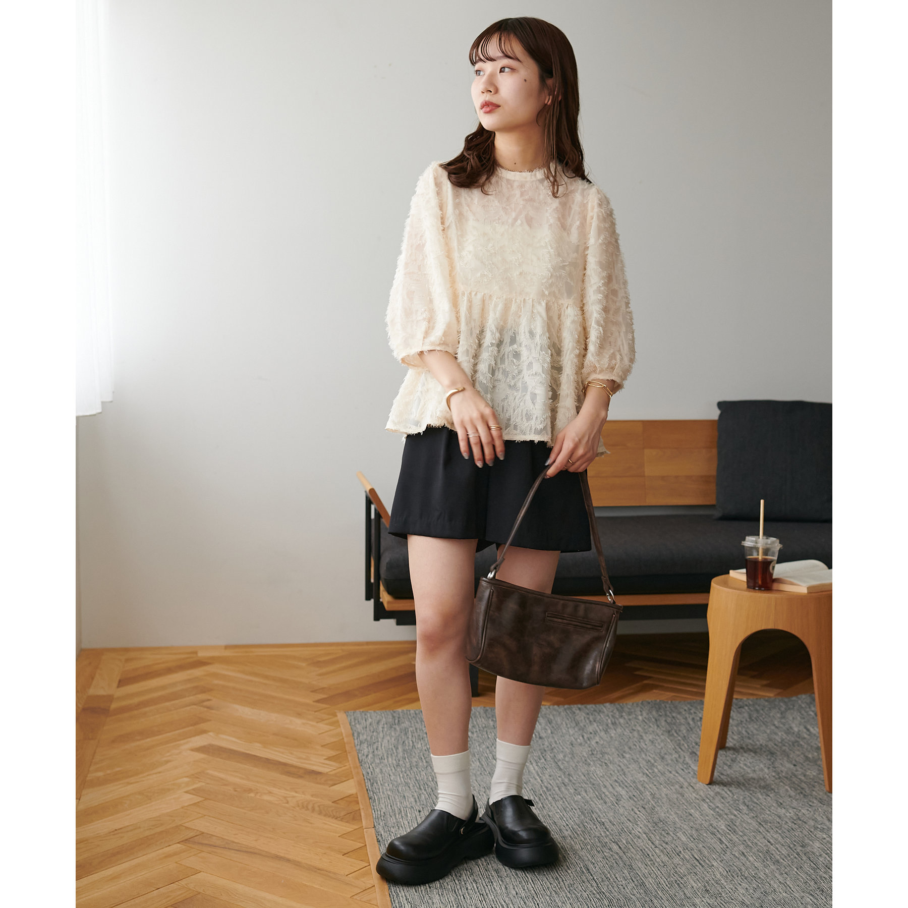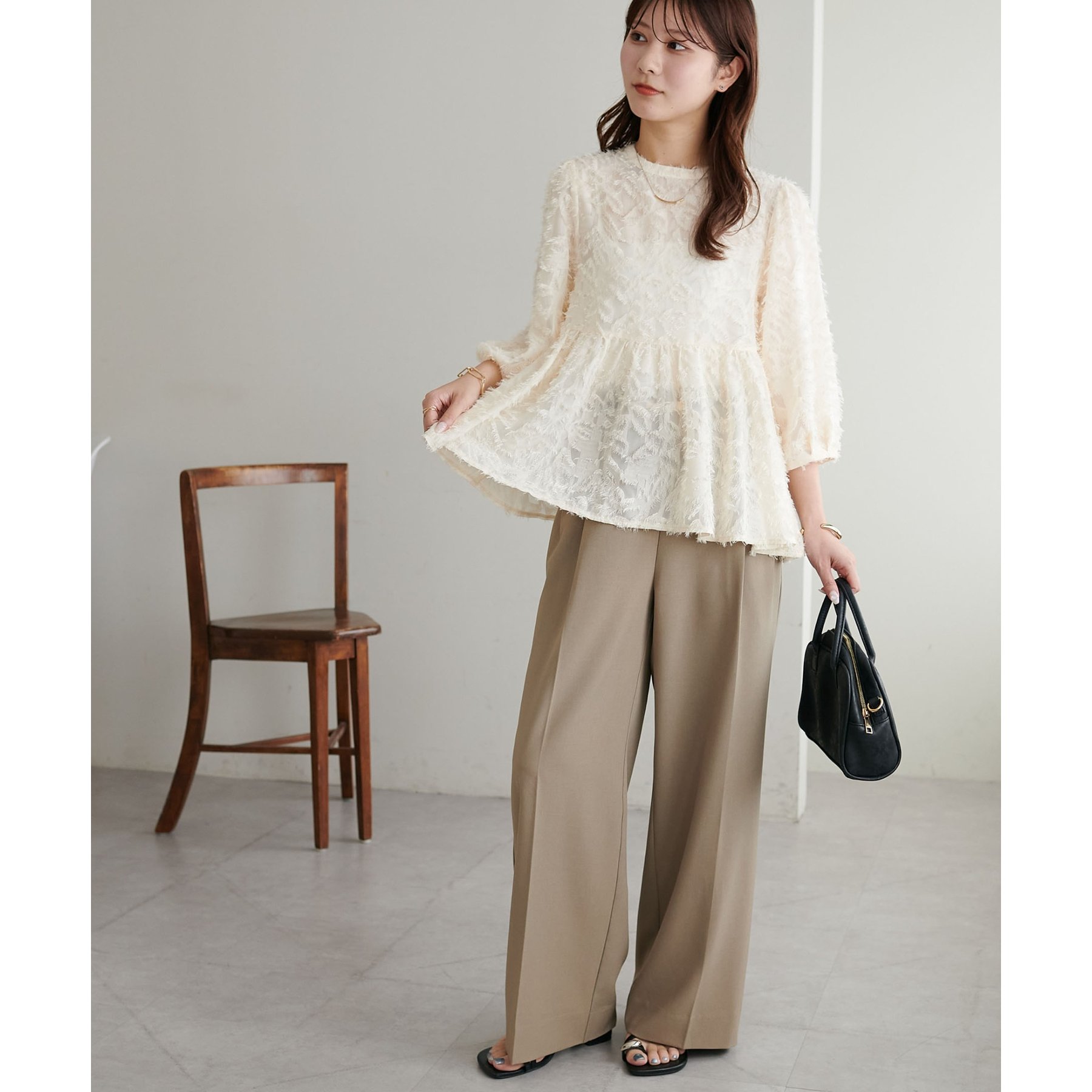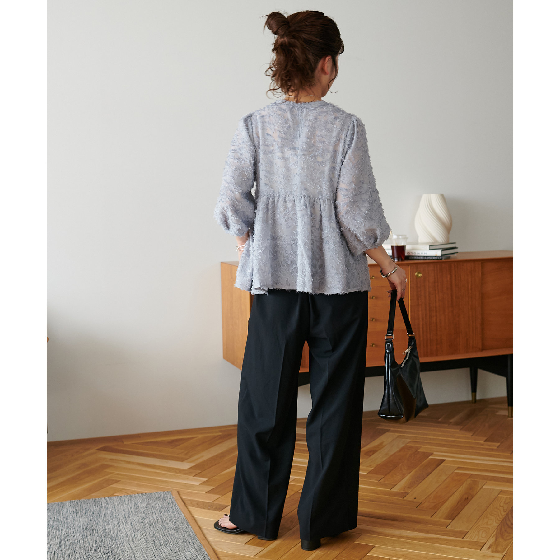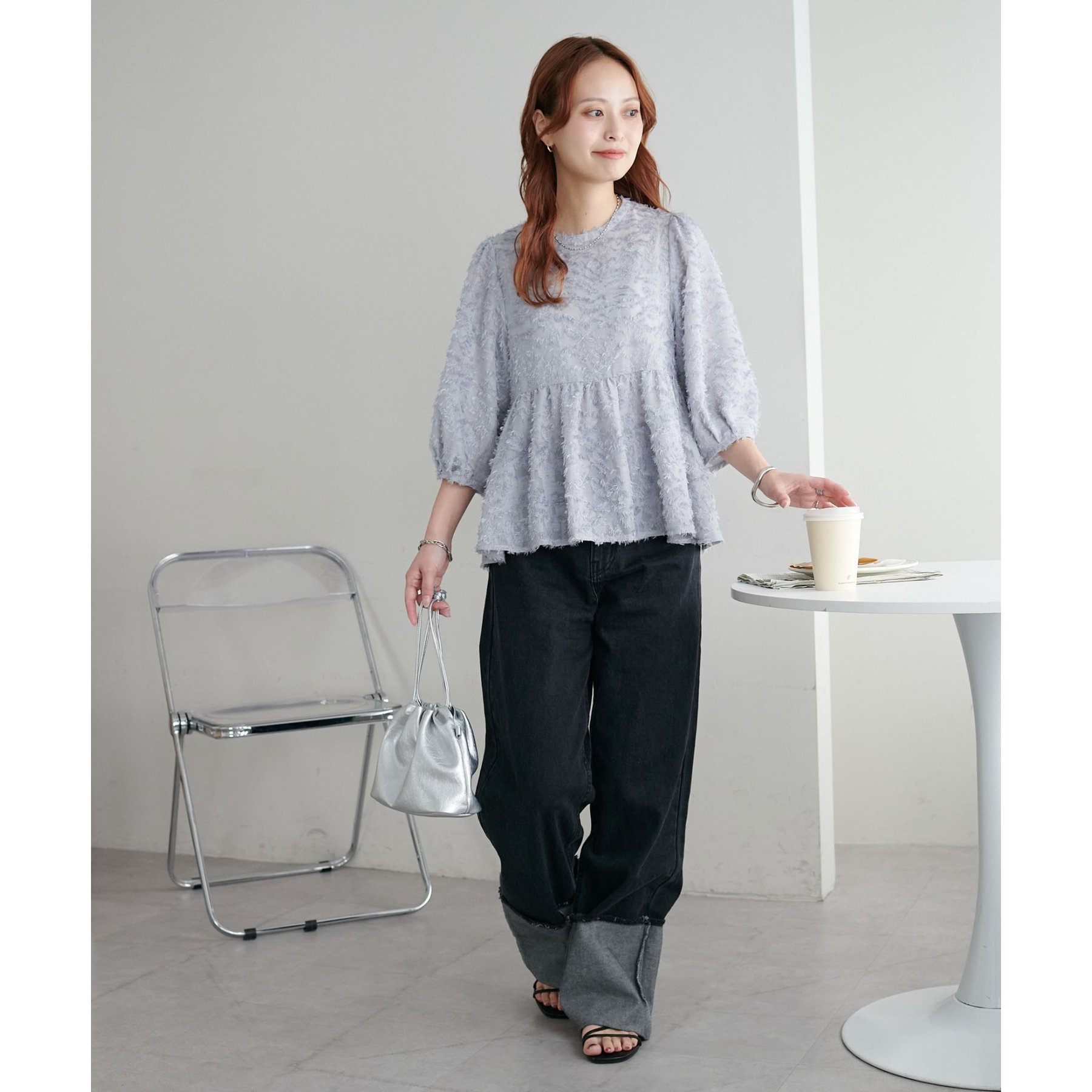 162mスタッフ(Mサイズ着用): ペプラムデザインなので、気になるお腹周りをさりげなくカバーしてくれます!カジュアルなデニムパンツはもちろん、きれいめなワイドパンツや、トレンドのハーフパンツとも合わせて着たいです♪
