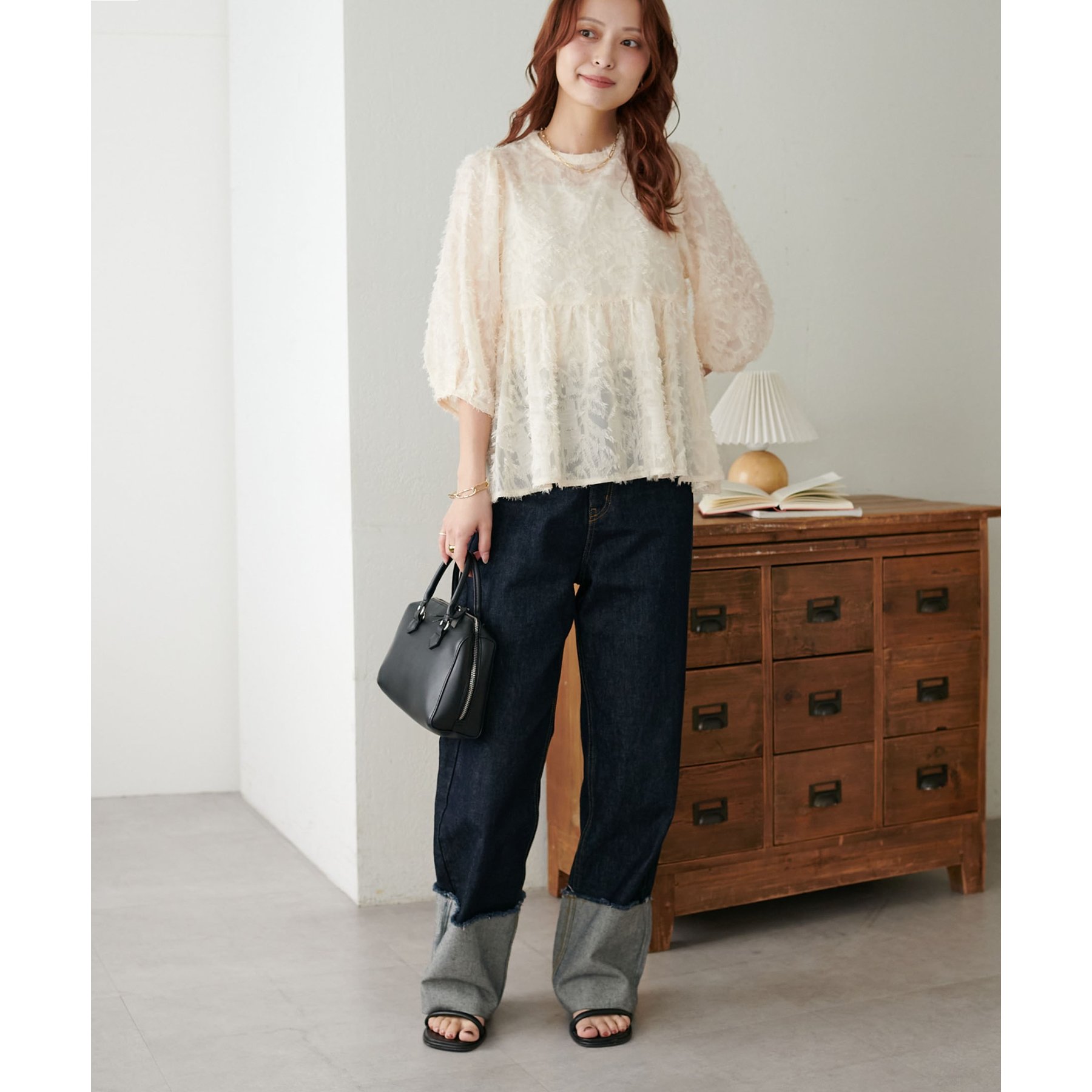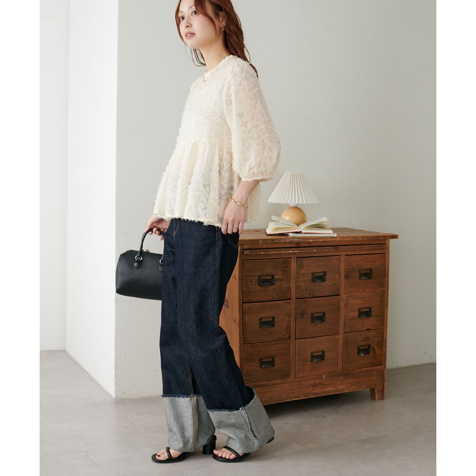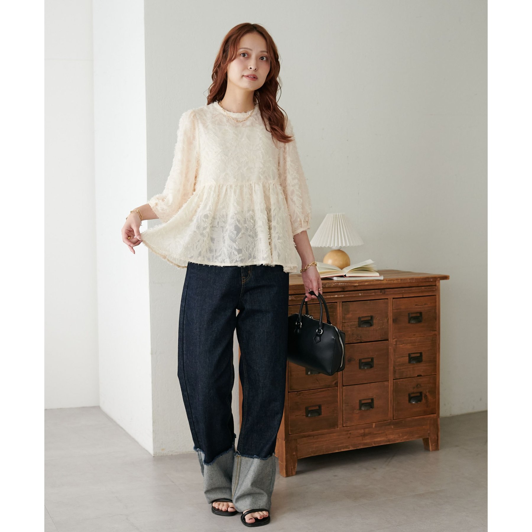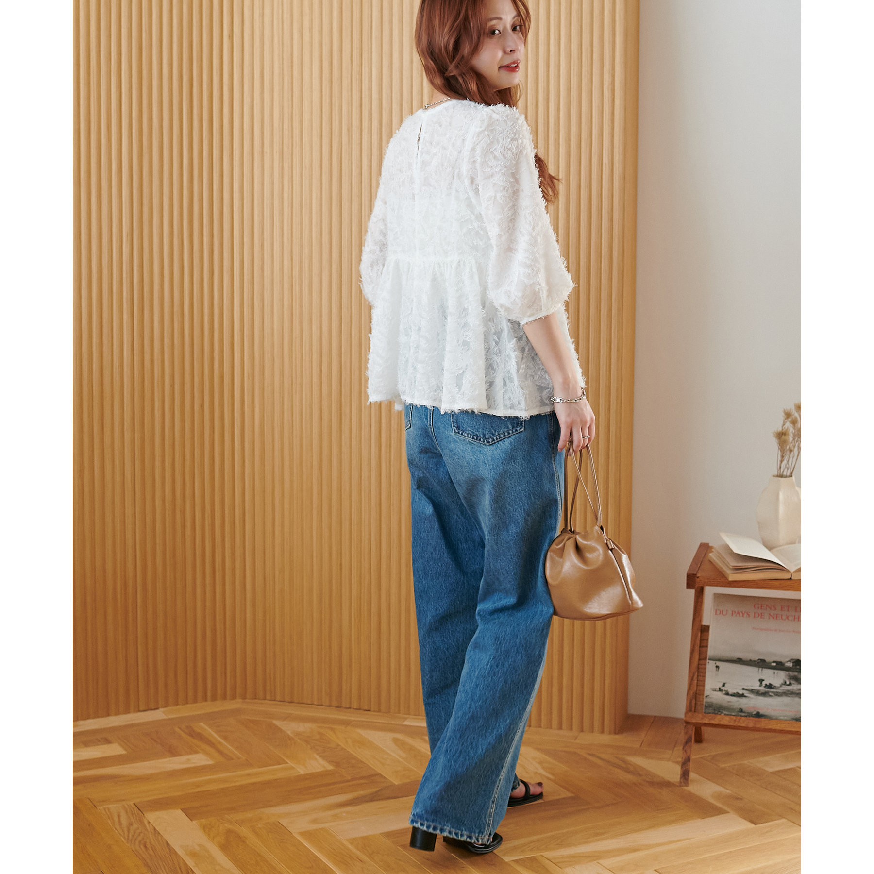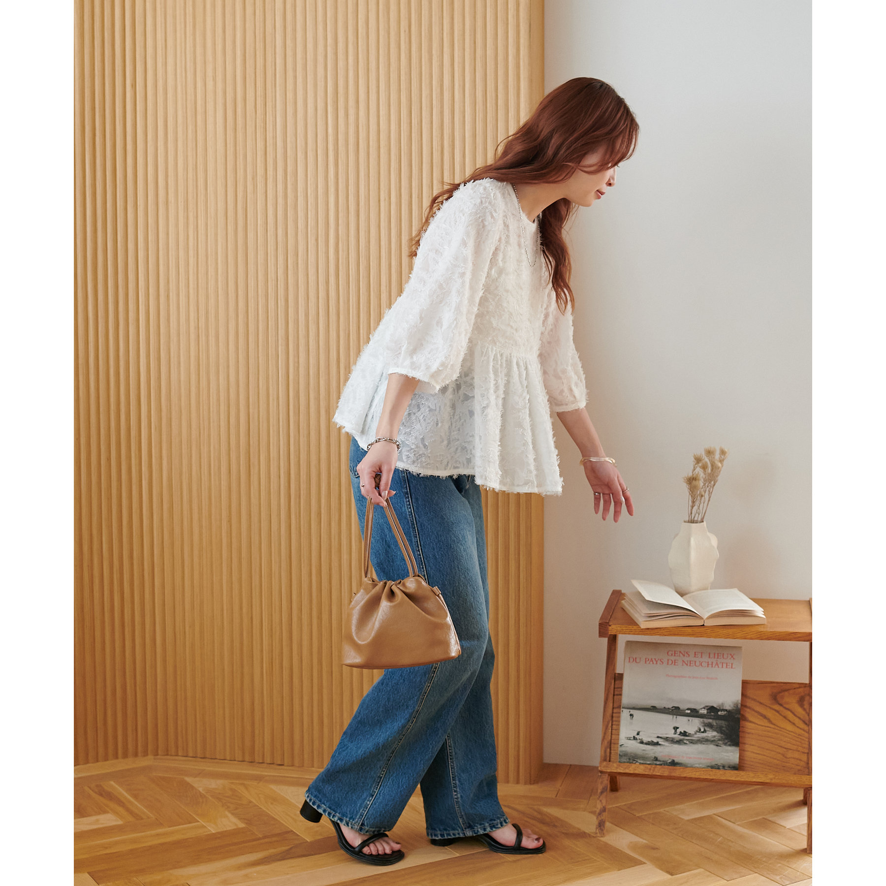 162mスタッフ(Mサイズ着用): ペプラムデザインなので、気になるお腹周りをさりげなくカバーしてくれます!カジュアルなデニムパンツはもちろん、きれいめなワイドパンツや、トレンドのハーフパンツとも合わせて着たいです♪