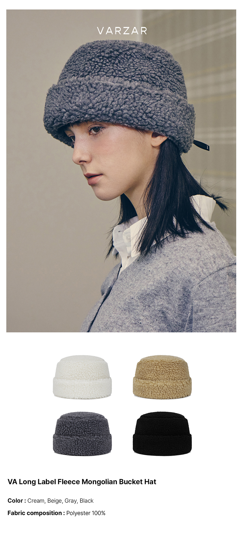 VA Long Label Fleece Mongolian Bucket Hat Gray