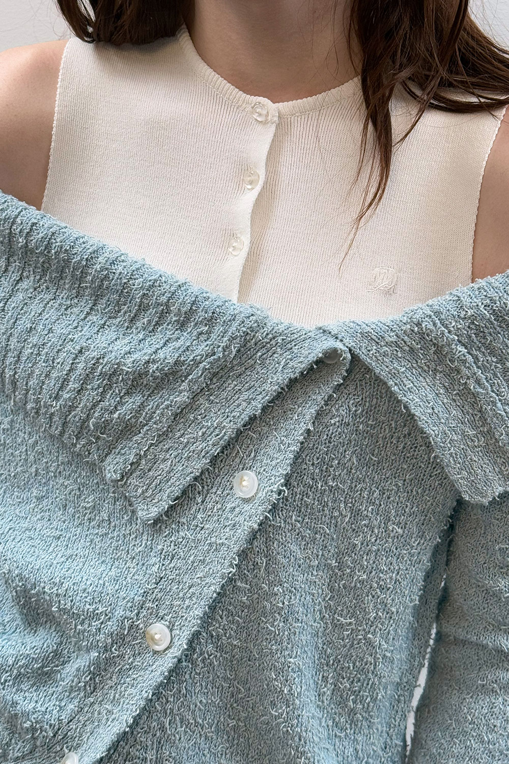 [Influencer pick] OFF SHOULDER BUTTON CARDIGAN - blue