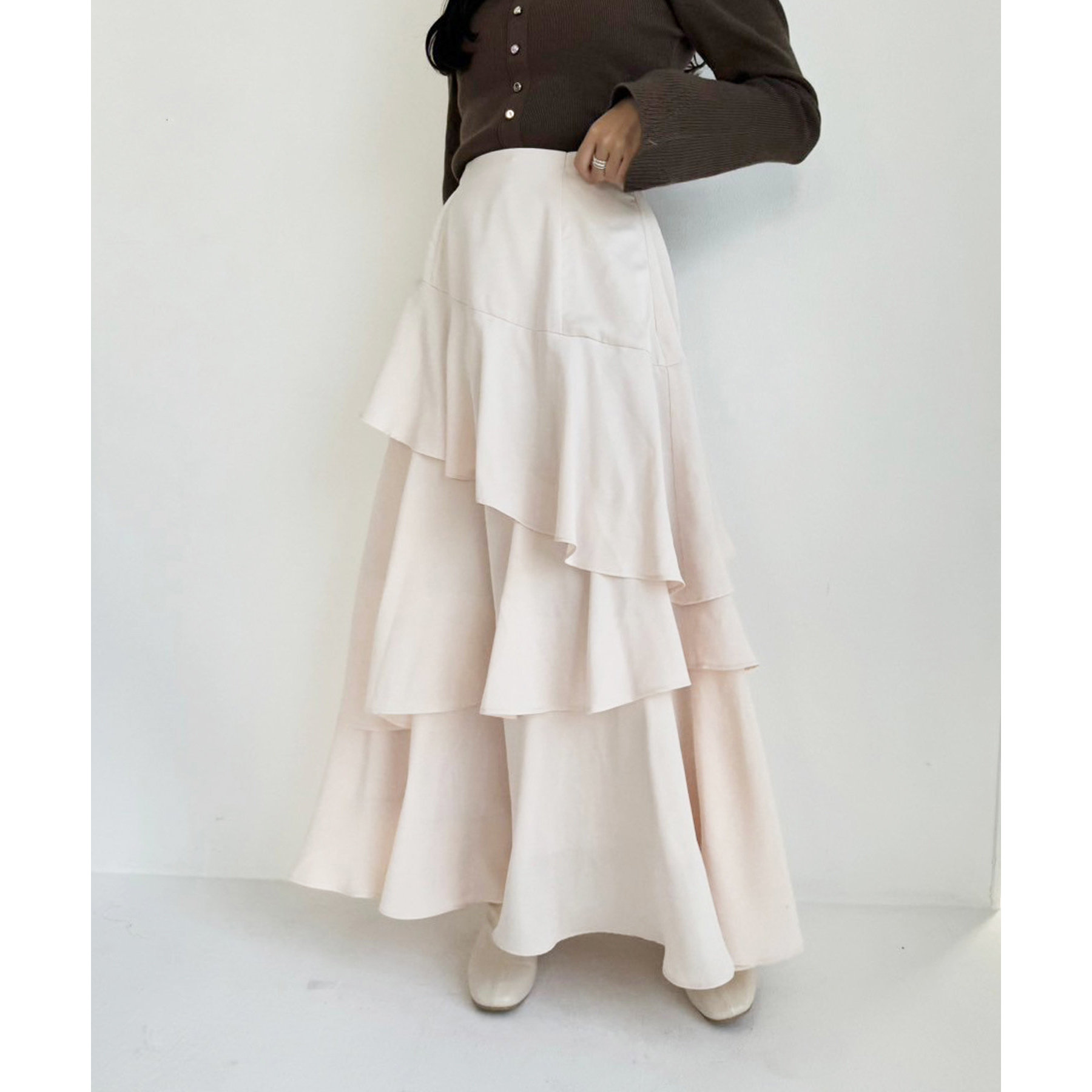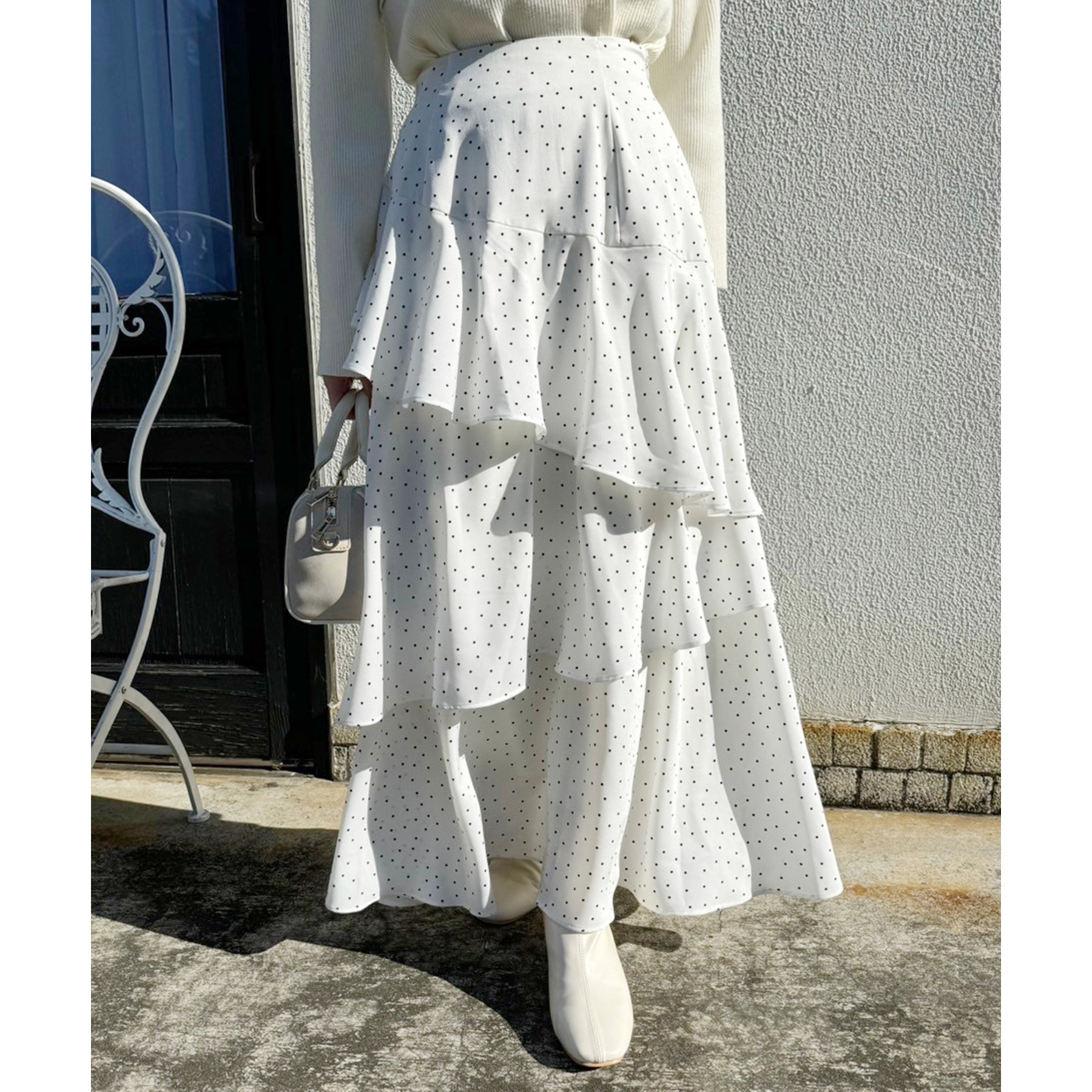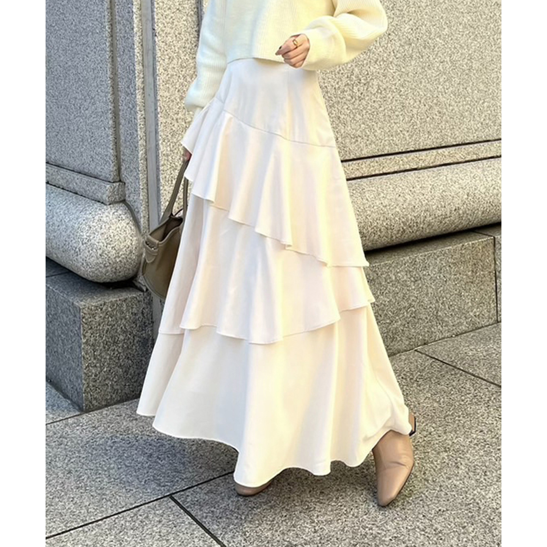 動きに合わせて揺れる、たっぷりと重ねたフリルが女性らしいティアードスカート