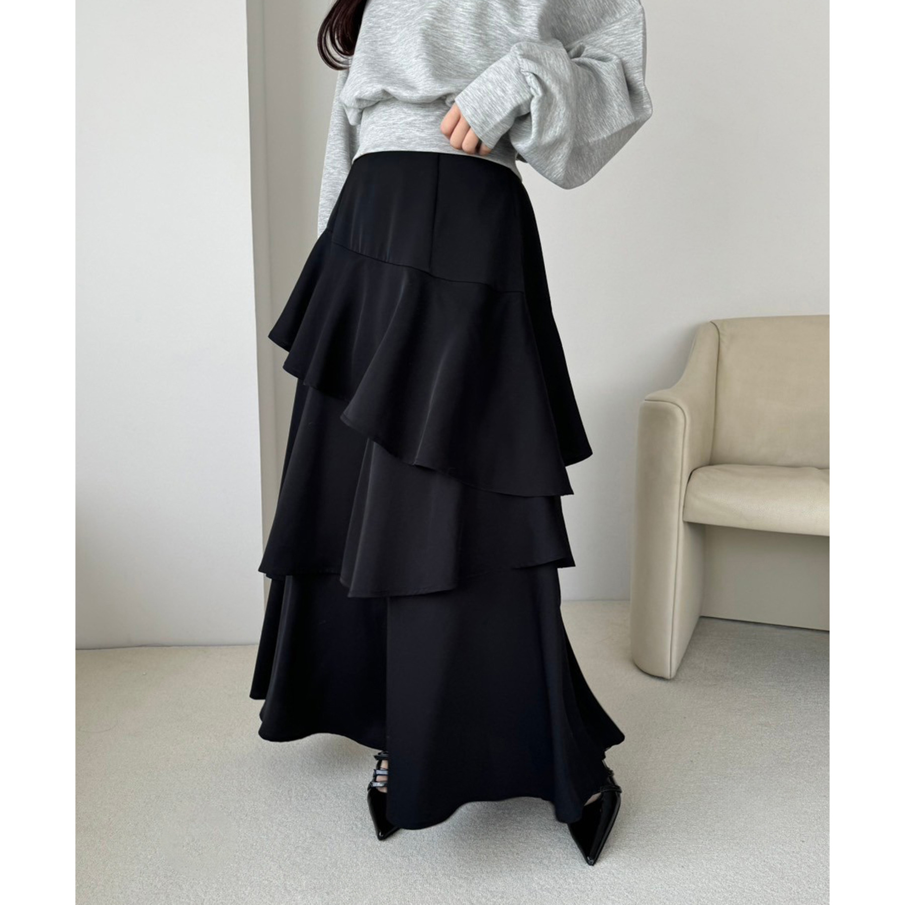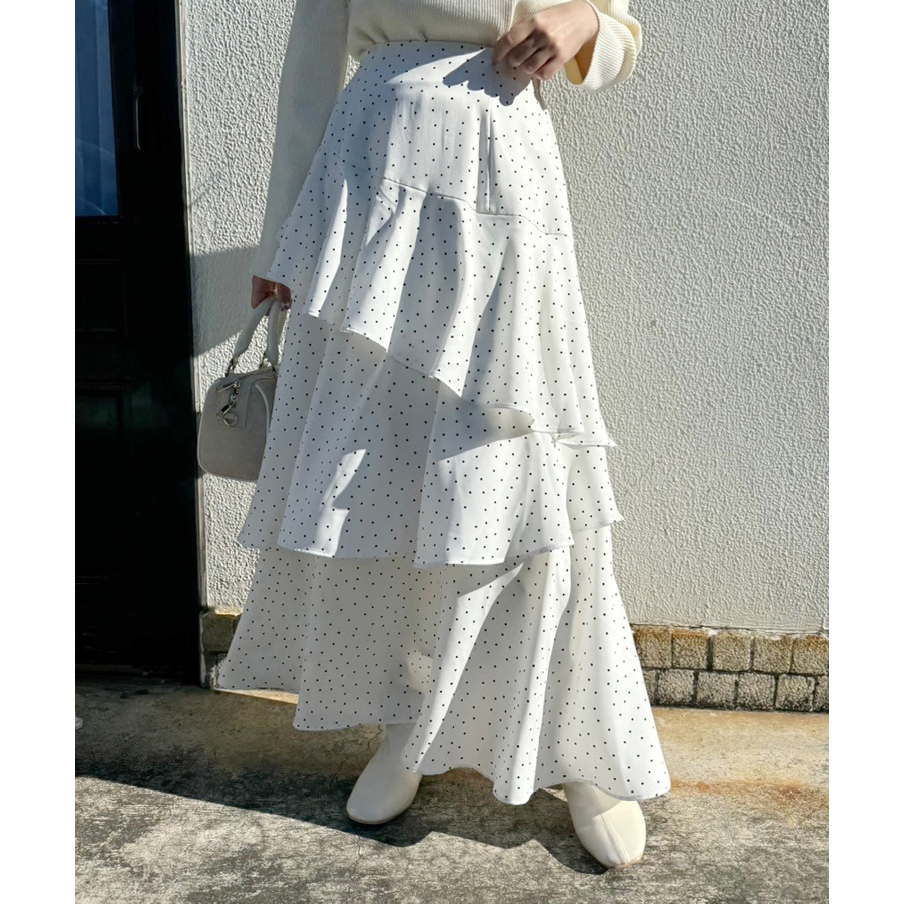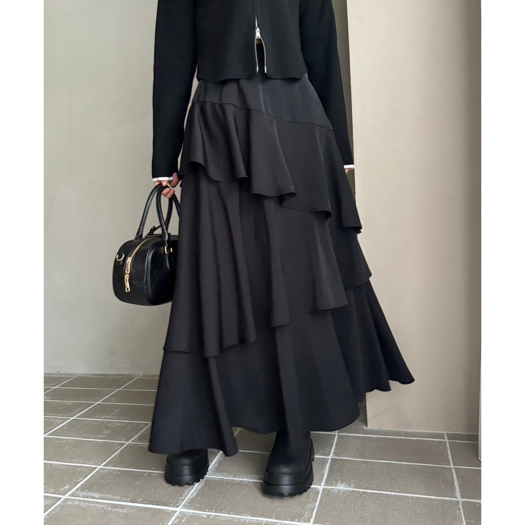 動きに合わせて揺れる、たっぷりと重ねたフリルが女性らしいティアードスカート