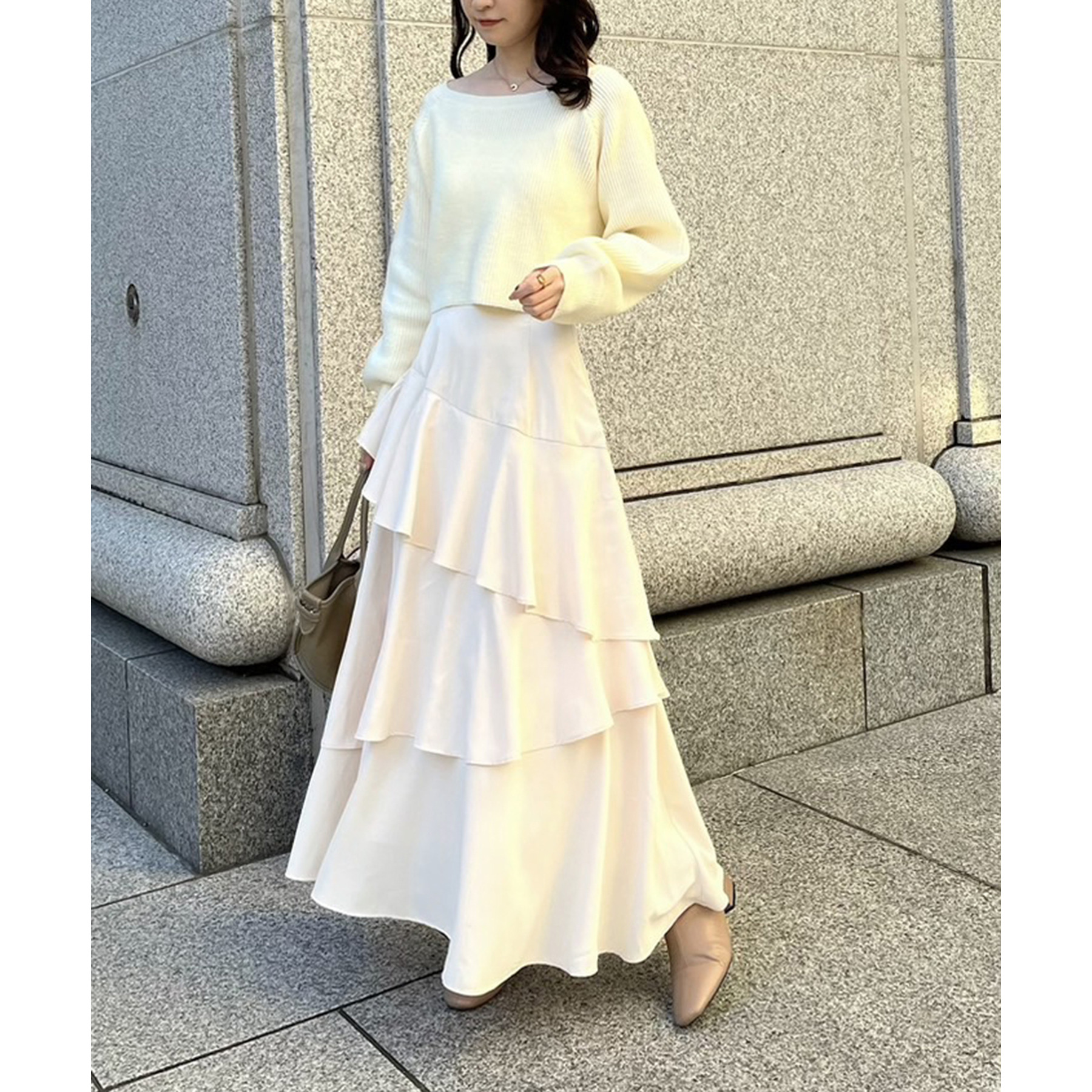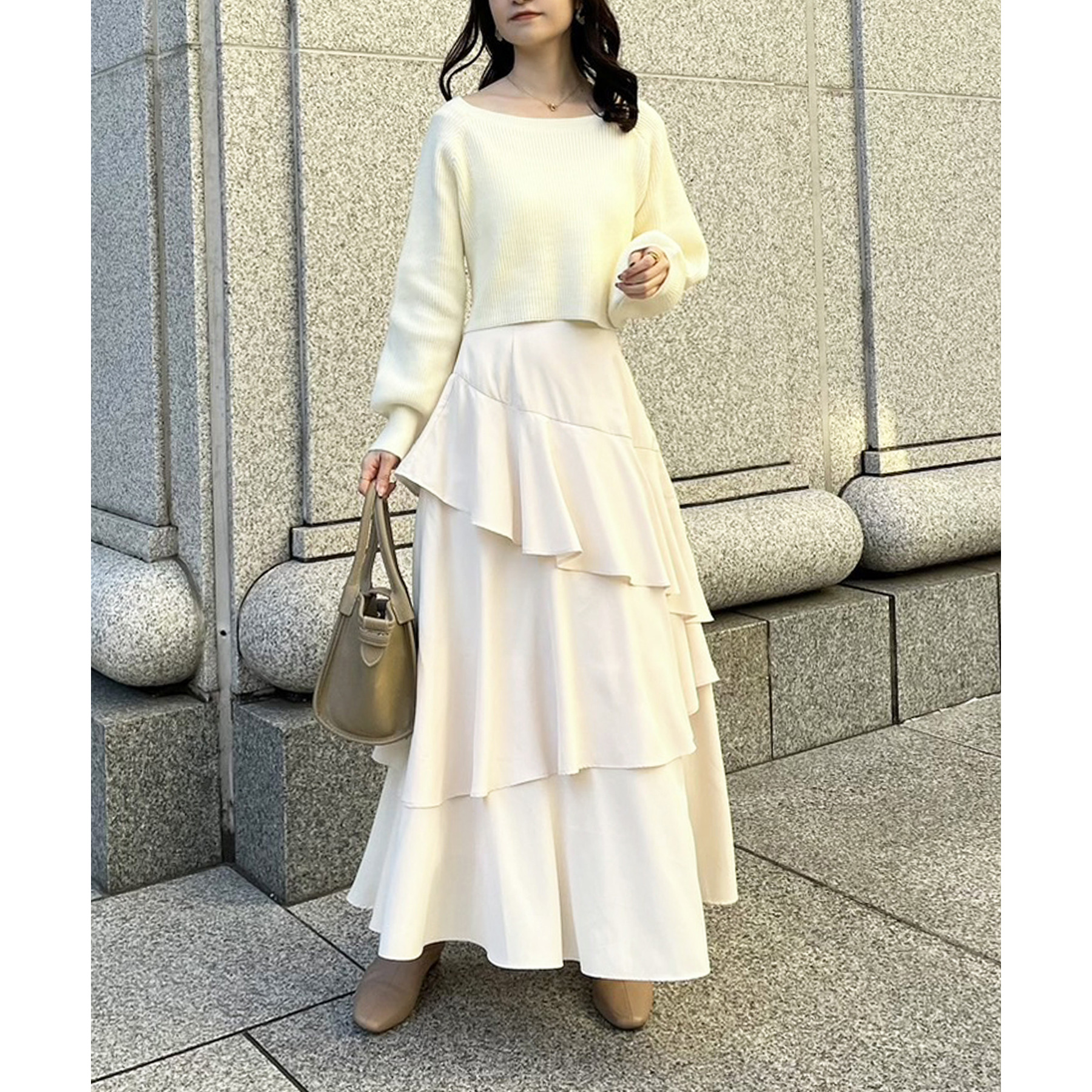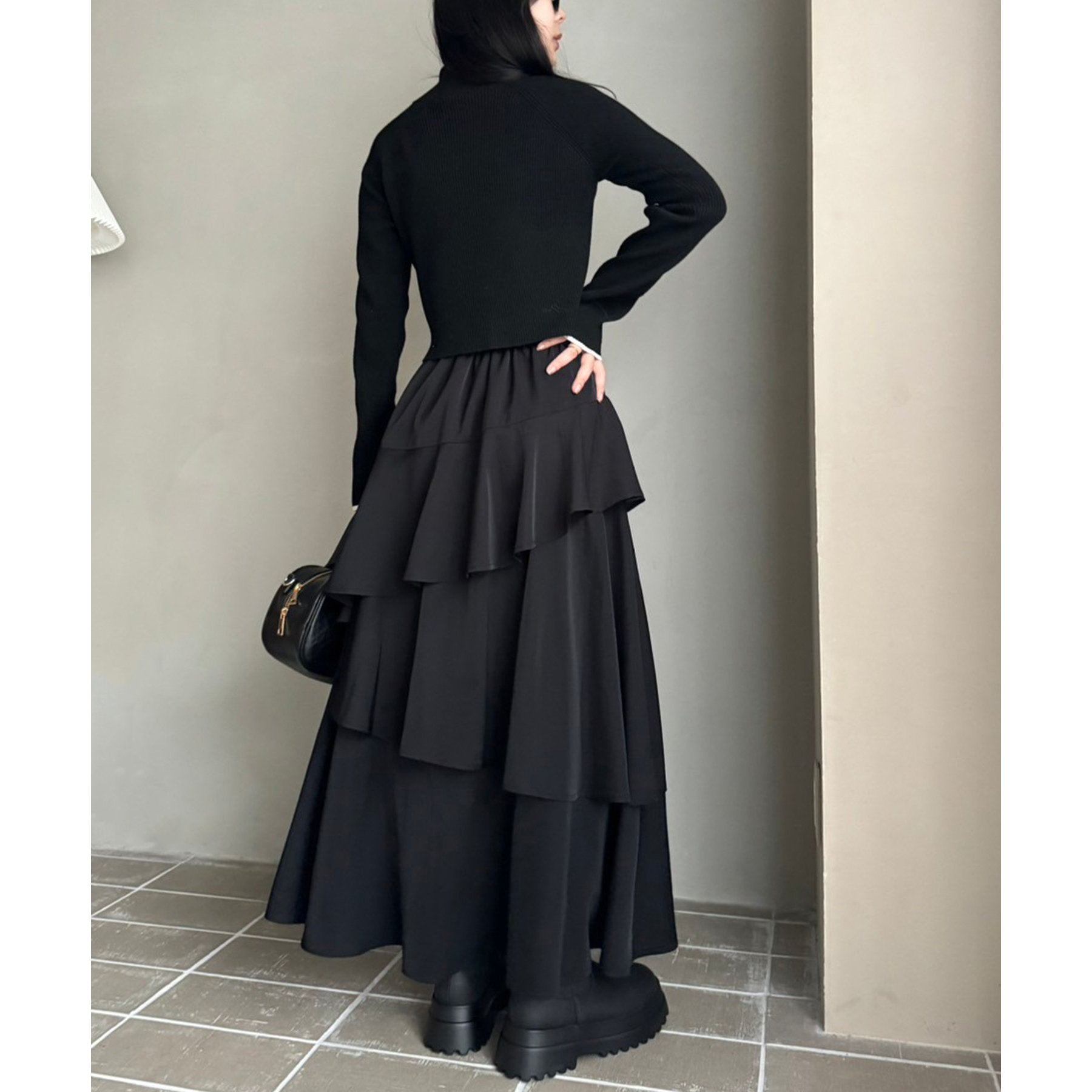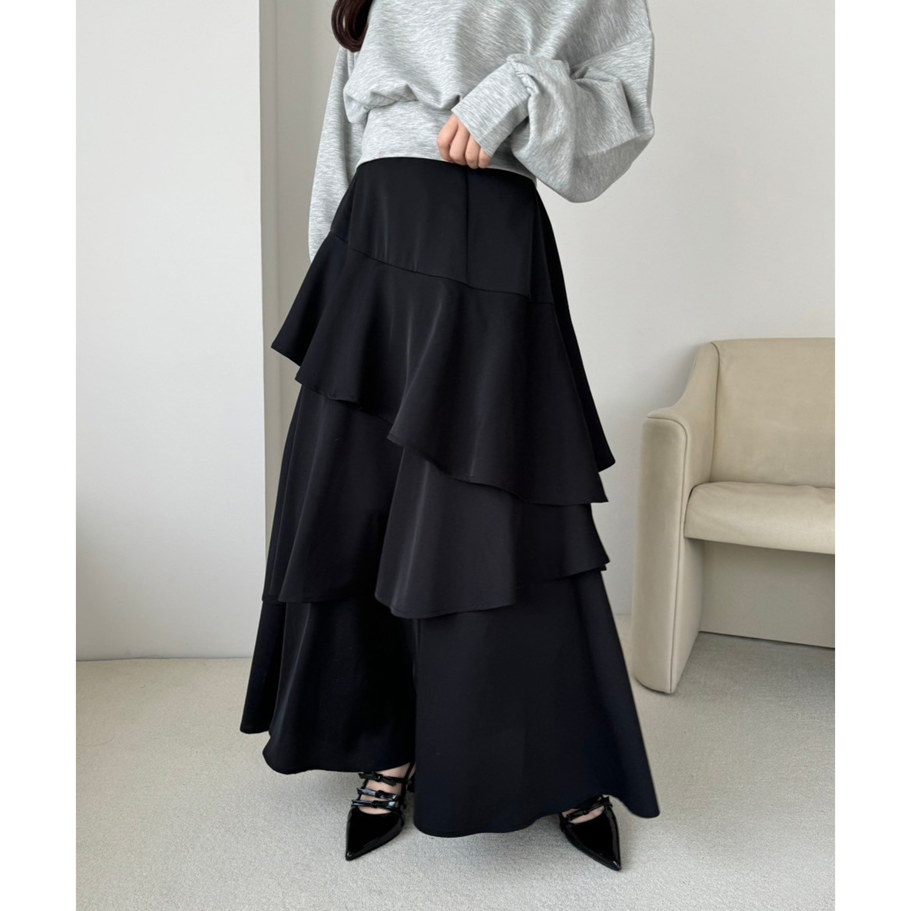 ティアードが目を惹くデザインなので、シンプルめのトップスでも