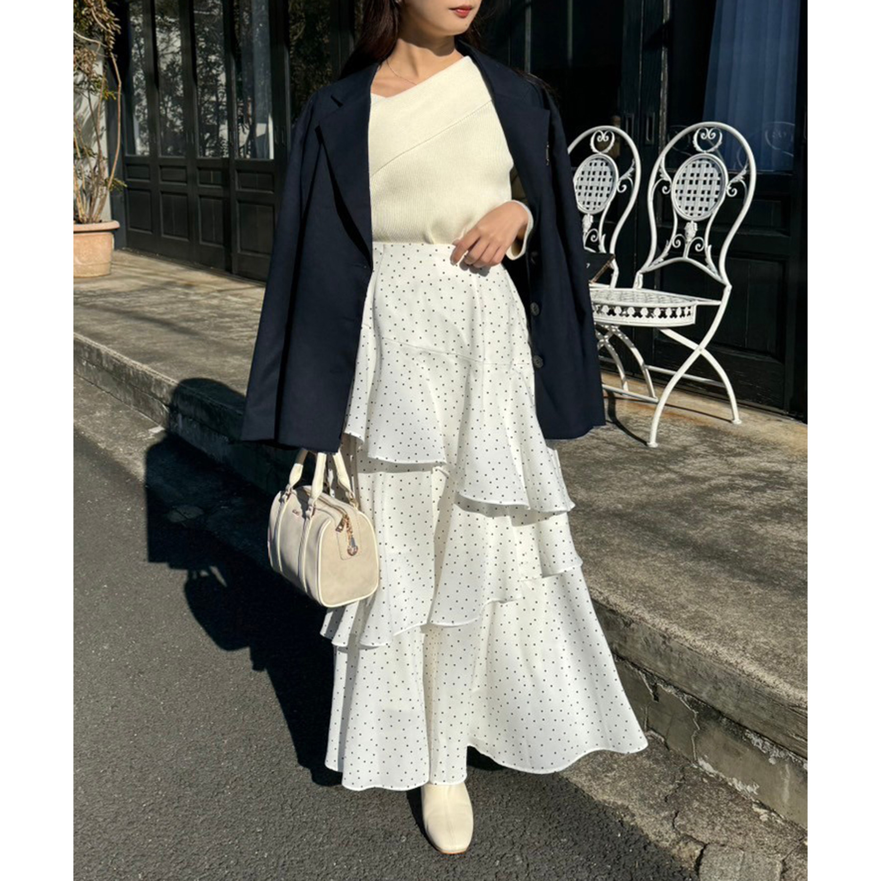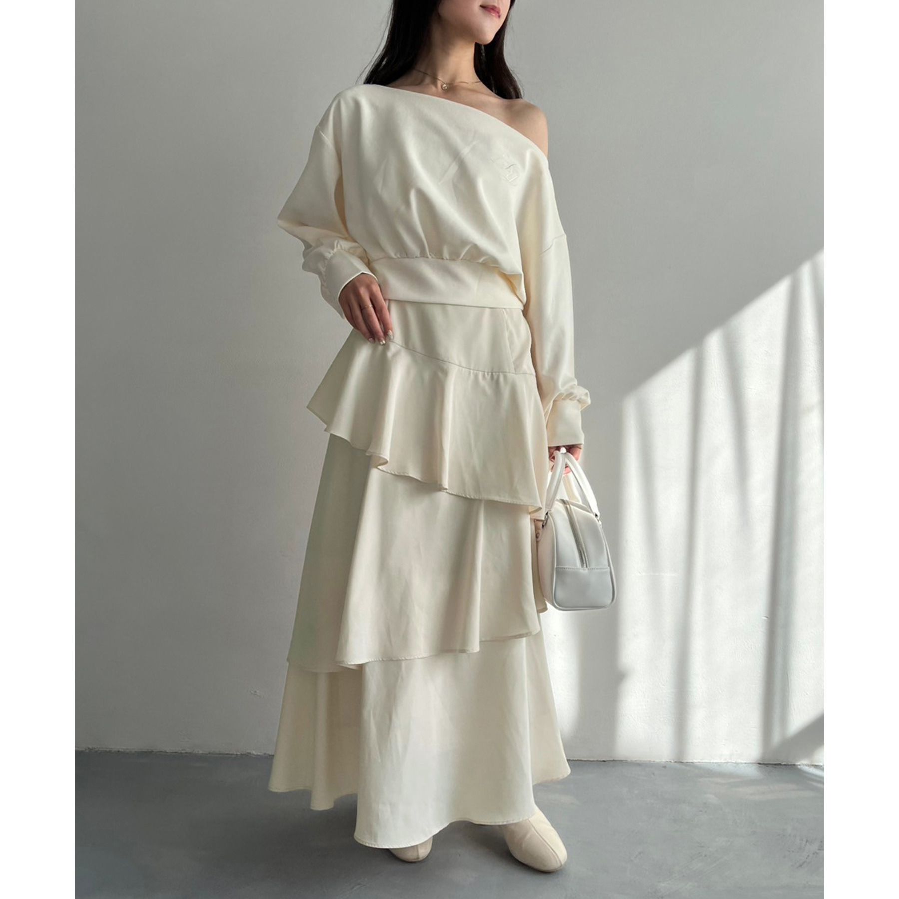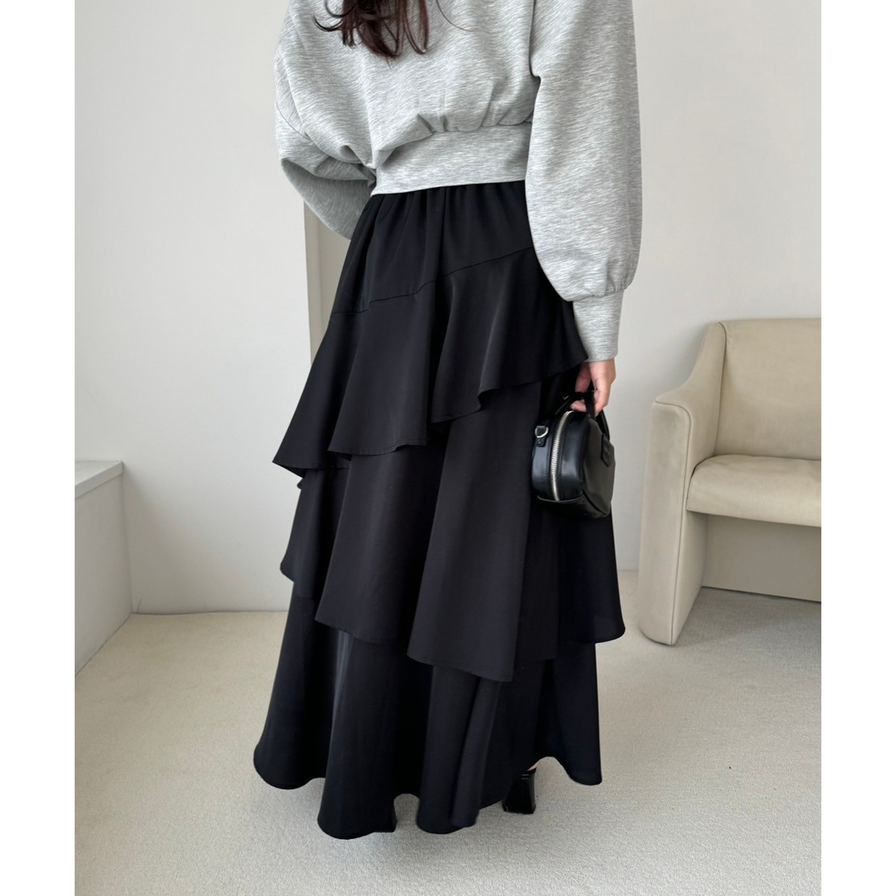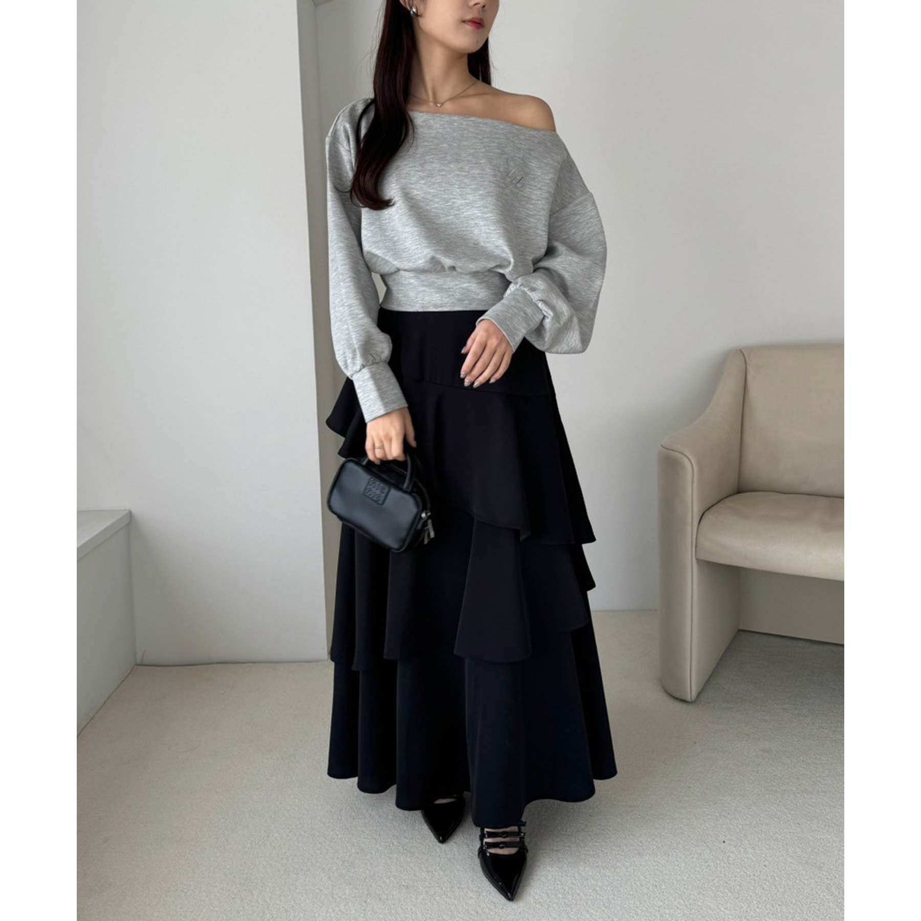 ティアードが目を惹くデザインなので、シンプルめのトップスでも