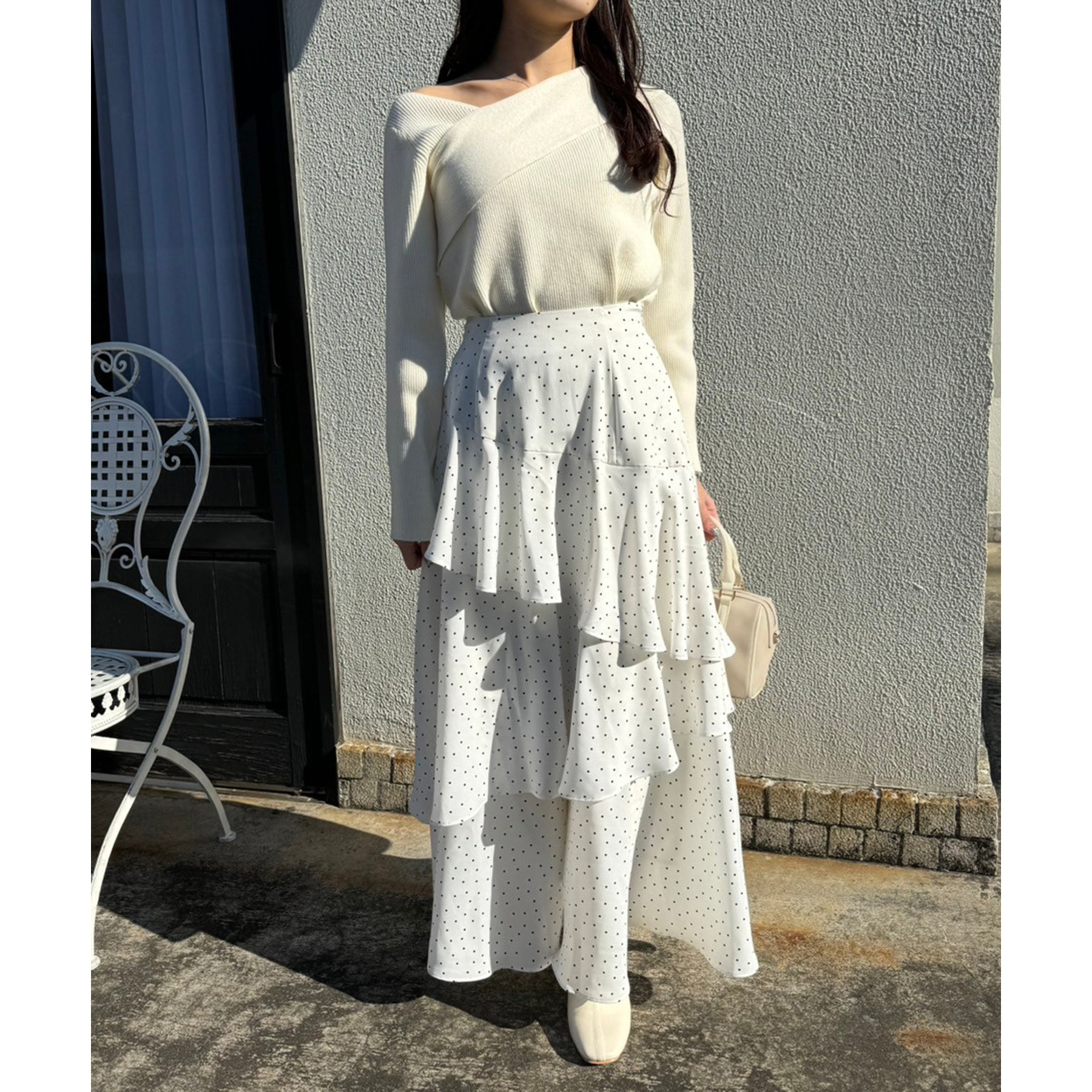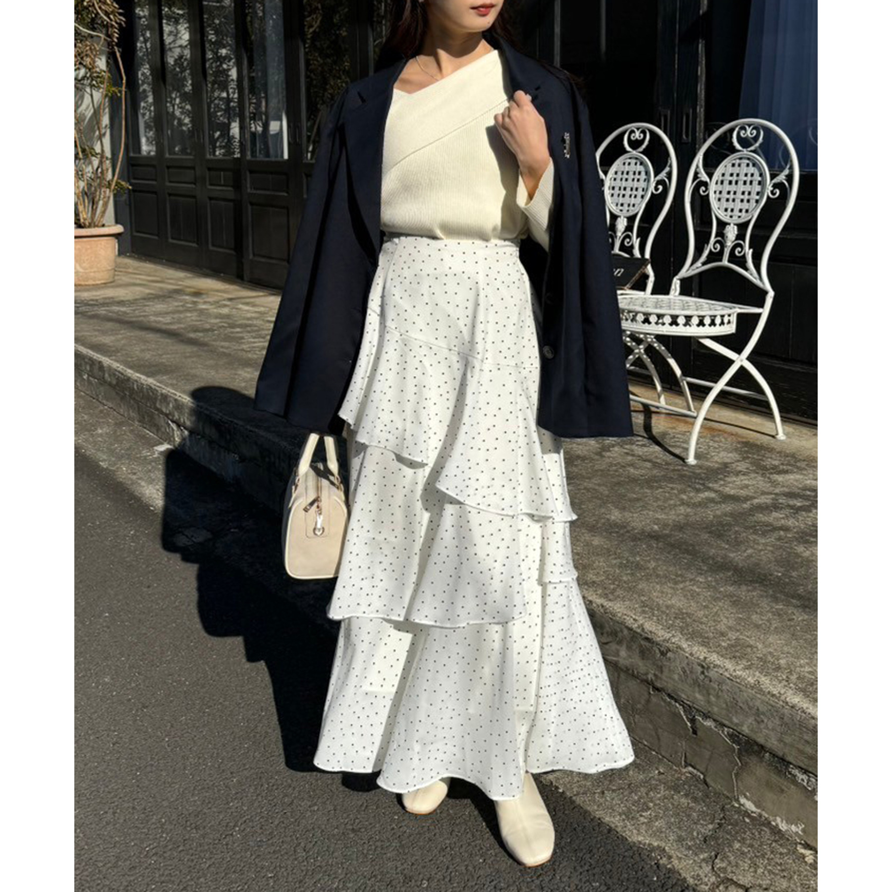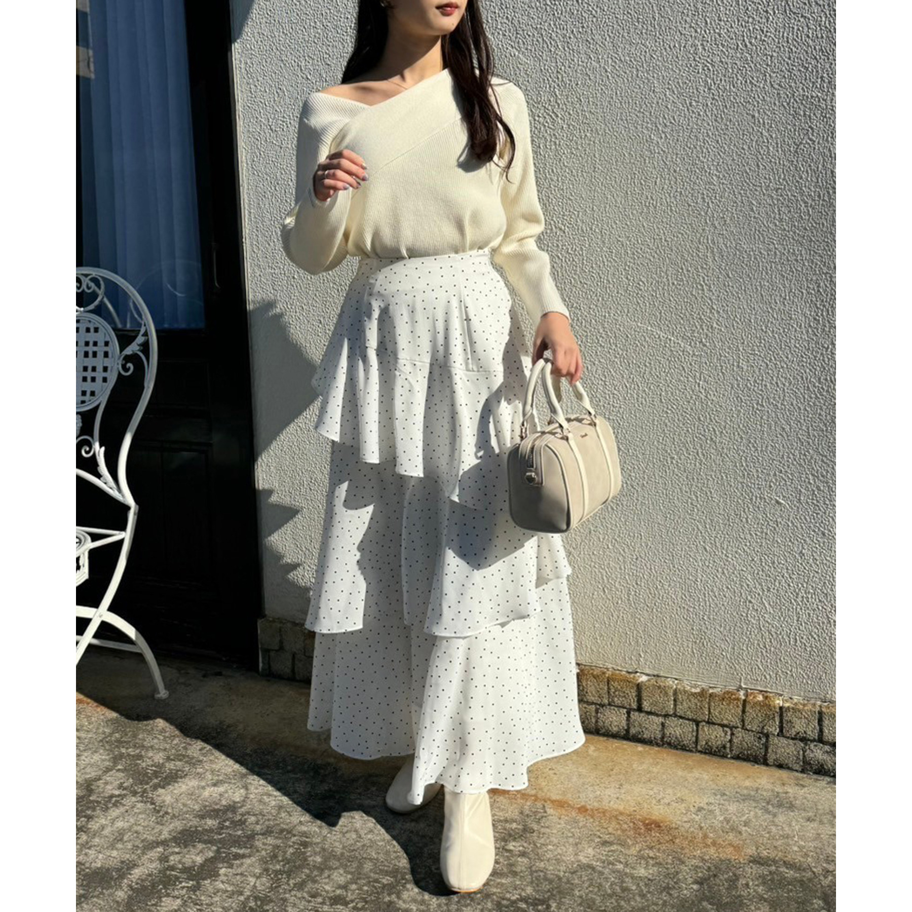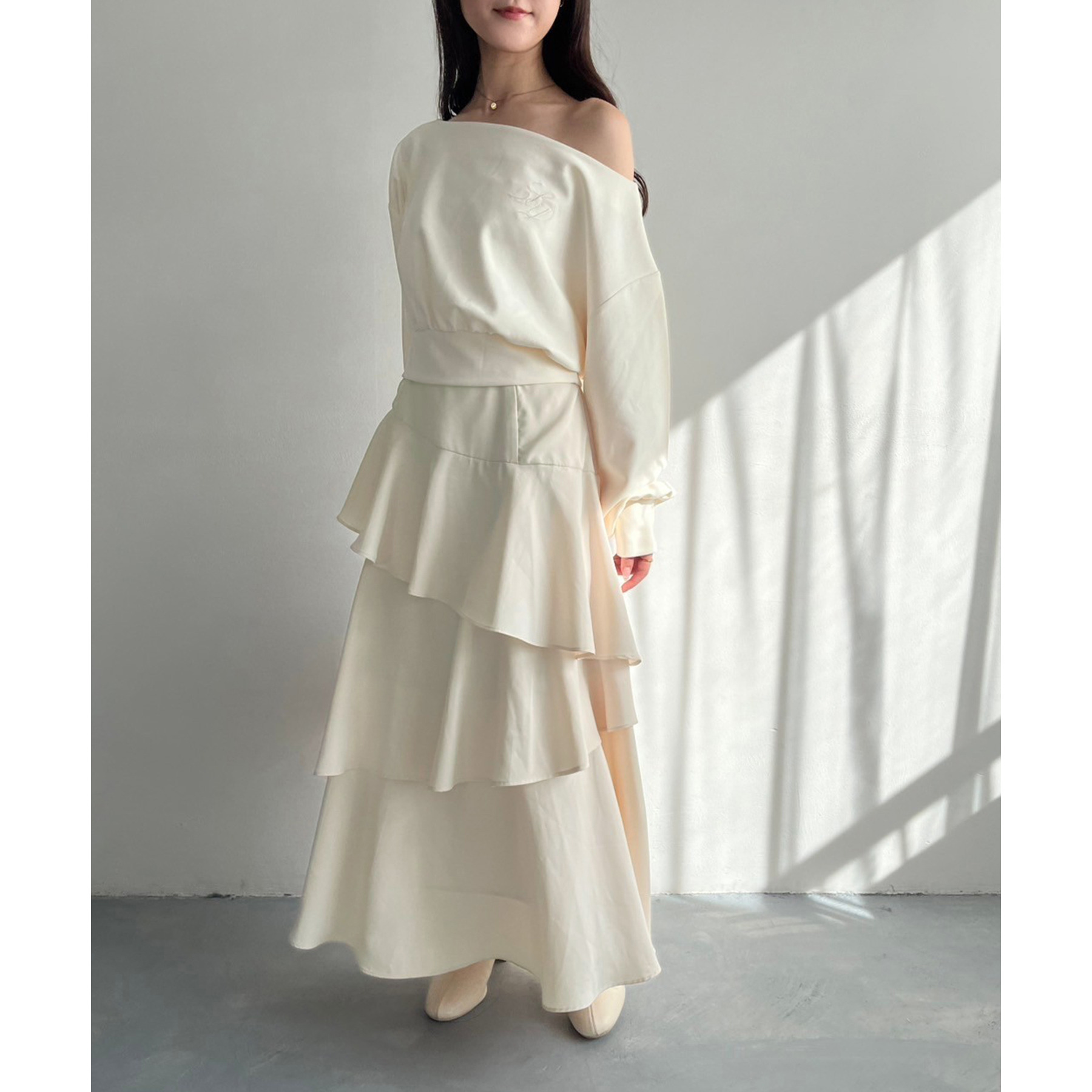 ティアードが目を惹くデザインなので、シンプルめのトップスでも