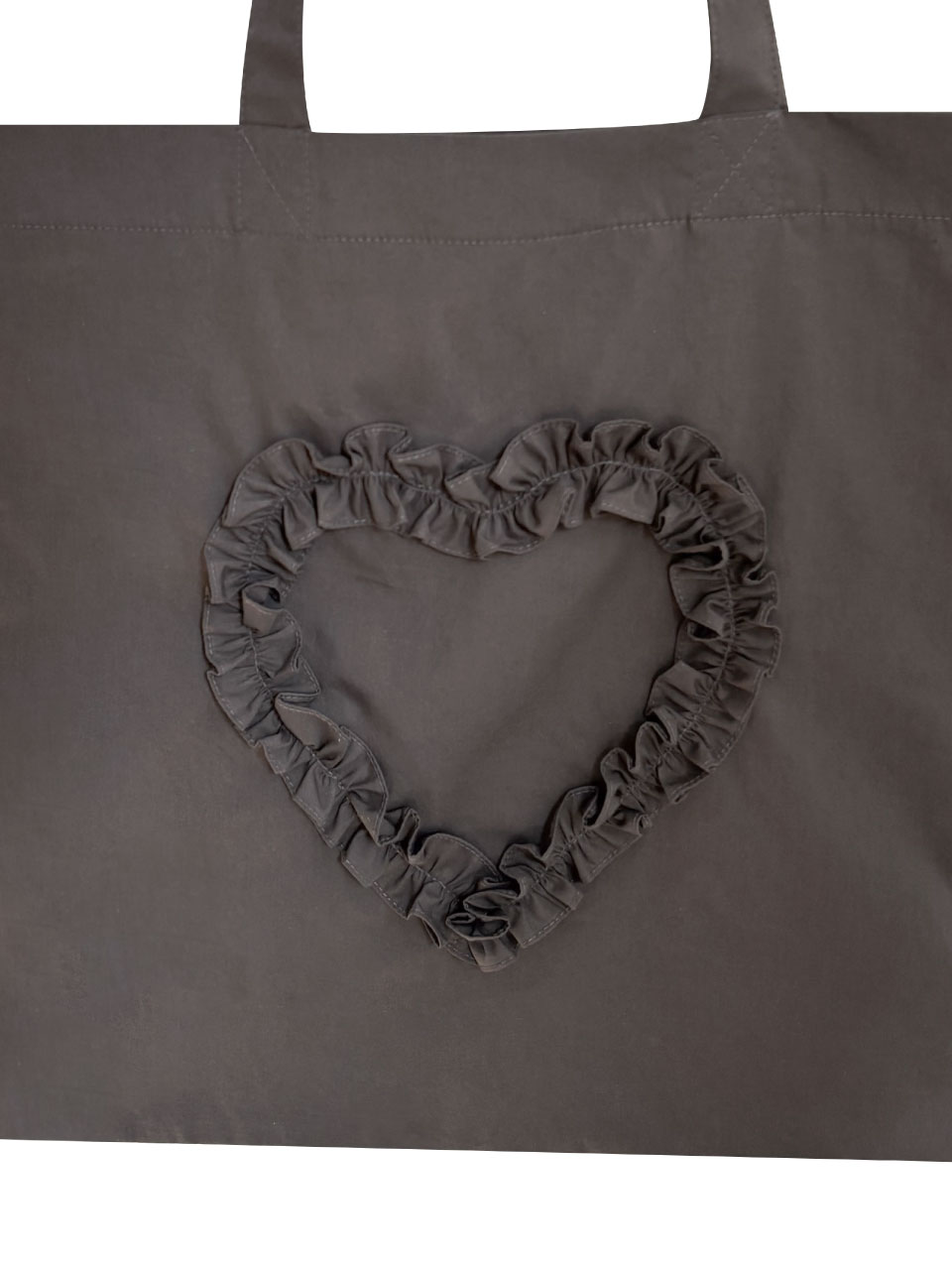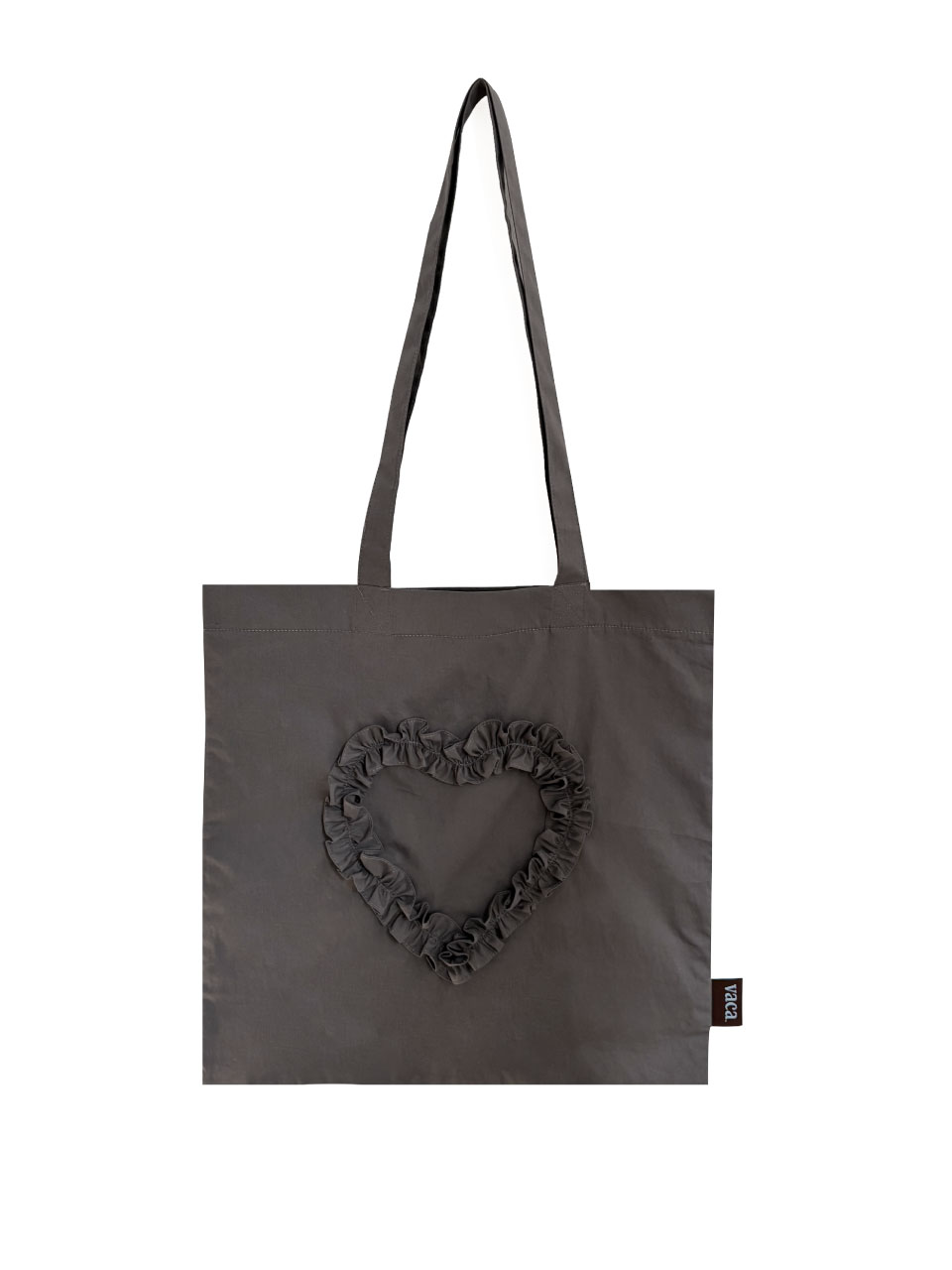 RUFFLE HEART COTTON BAG (CHARCOAL)
