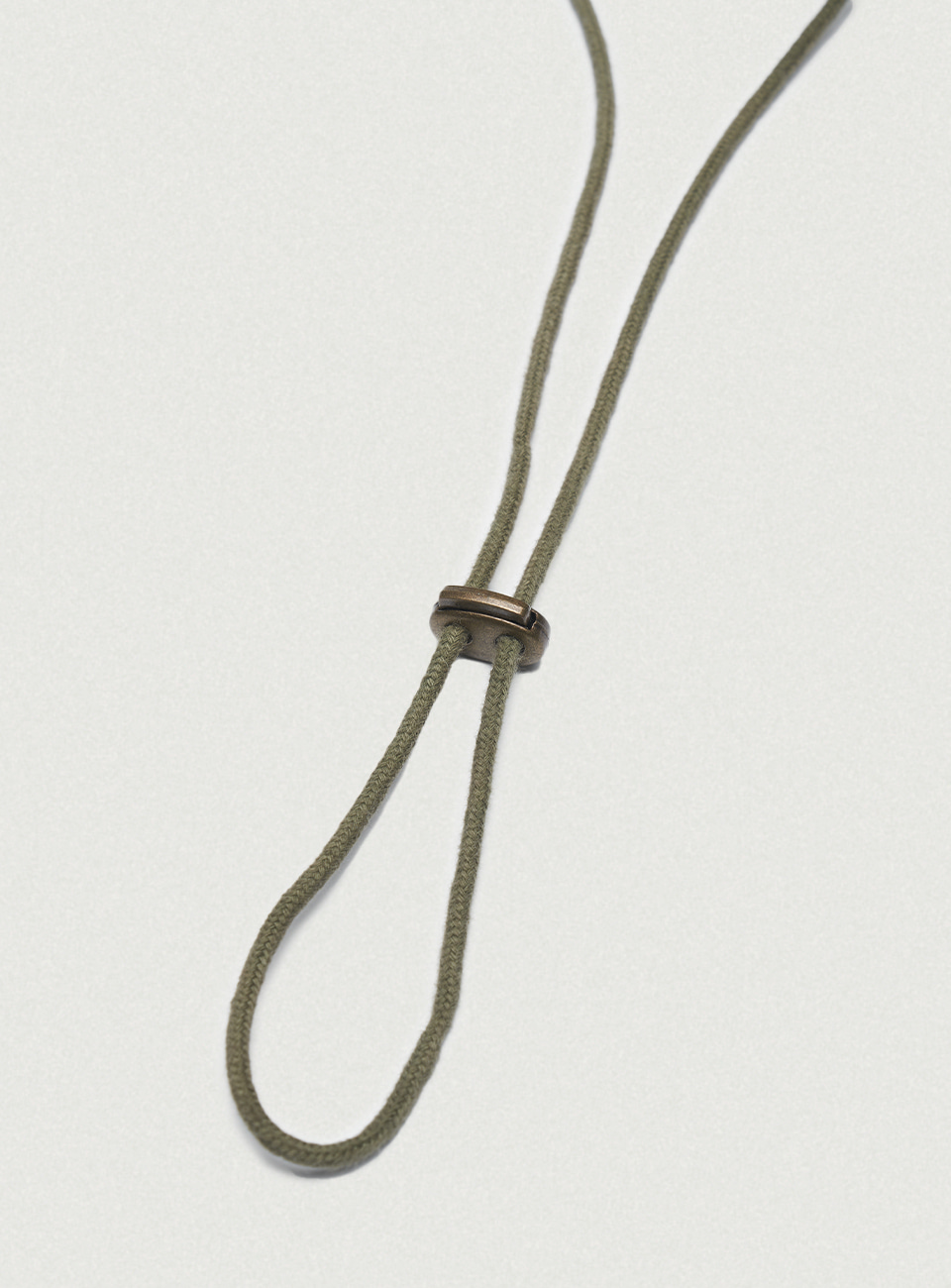 ファブリックカラーと対比をなすグリーンカラーのロゴ刺繍。